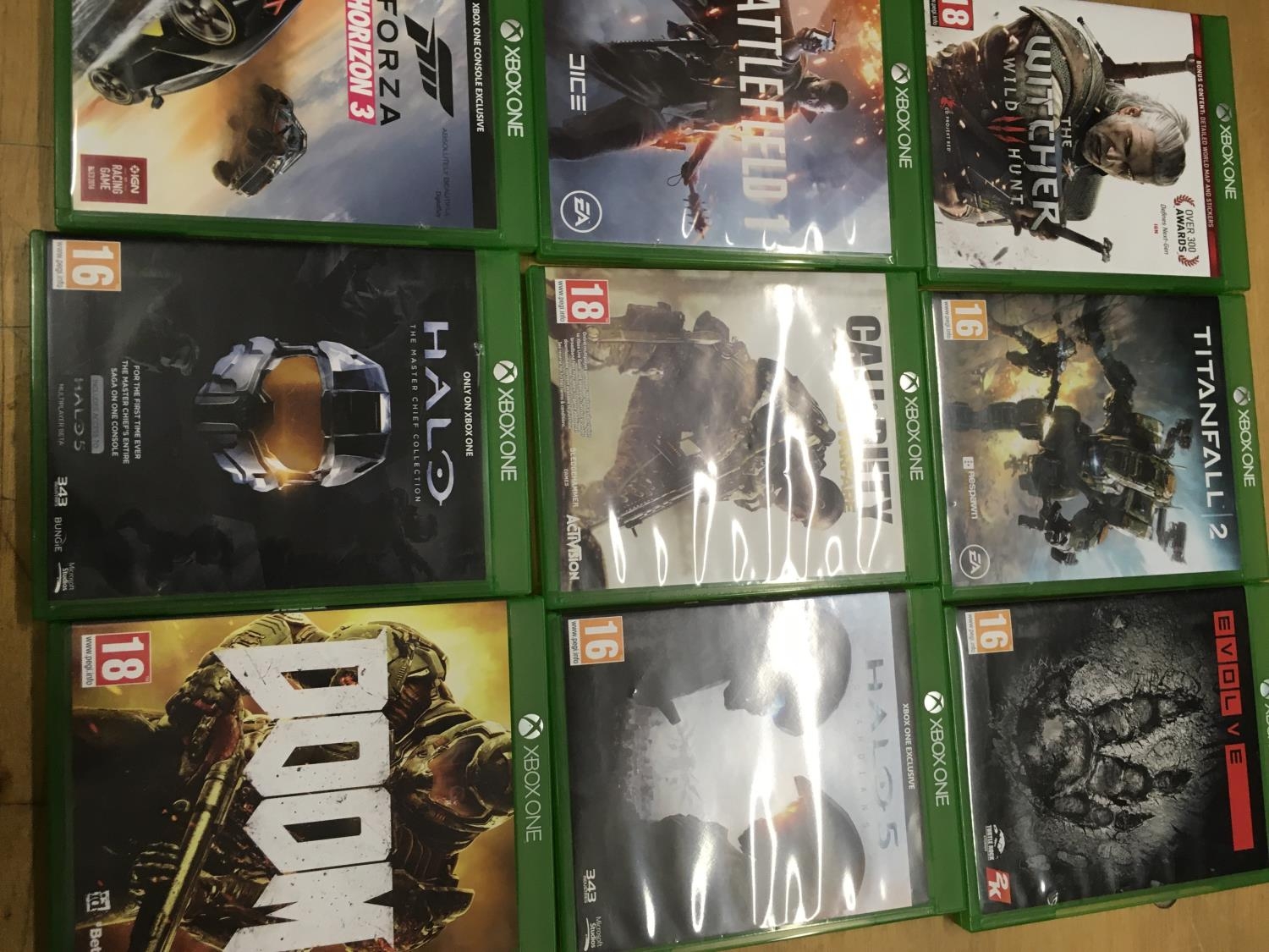 A collection of Xbox one games, x9