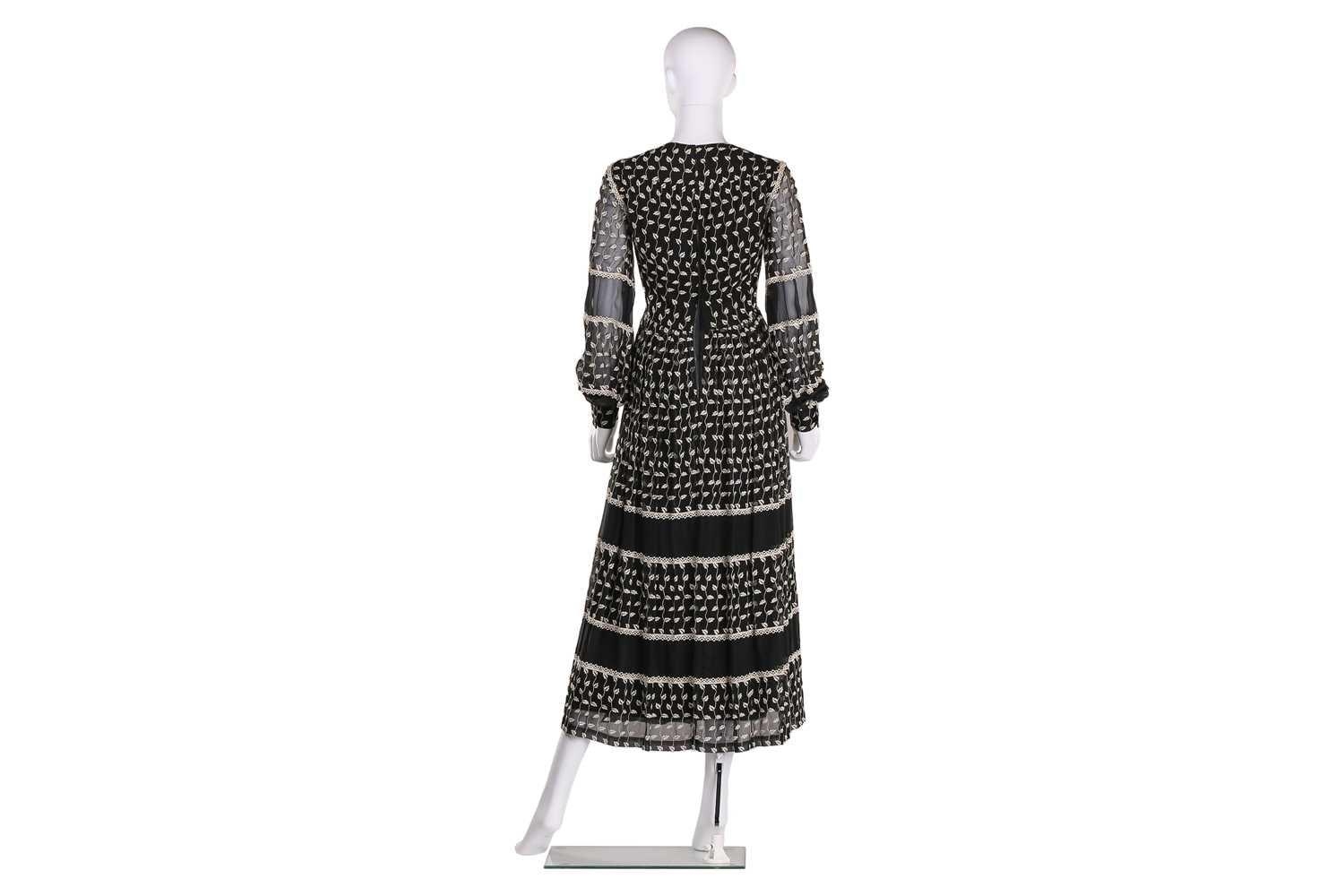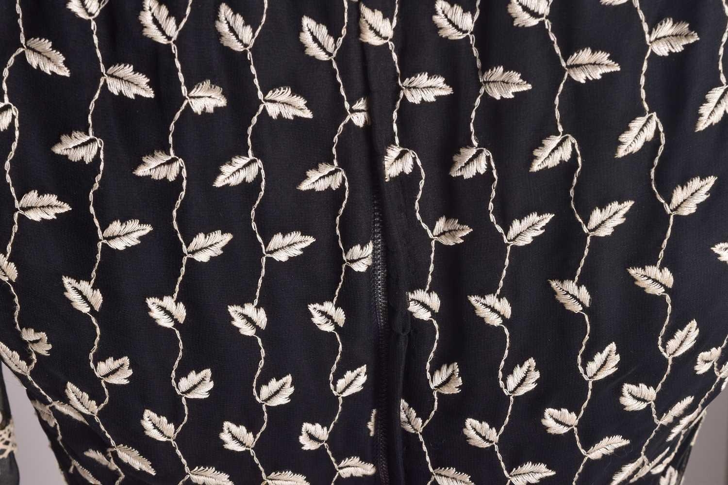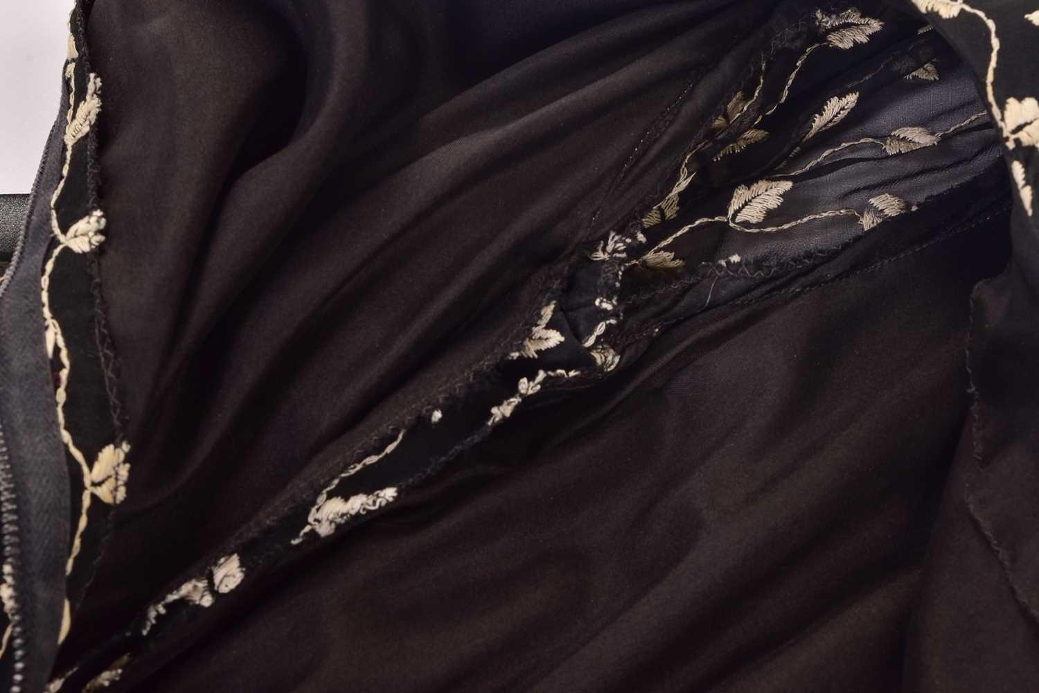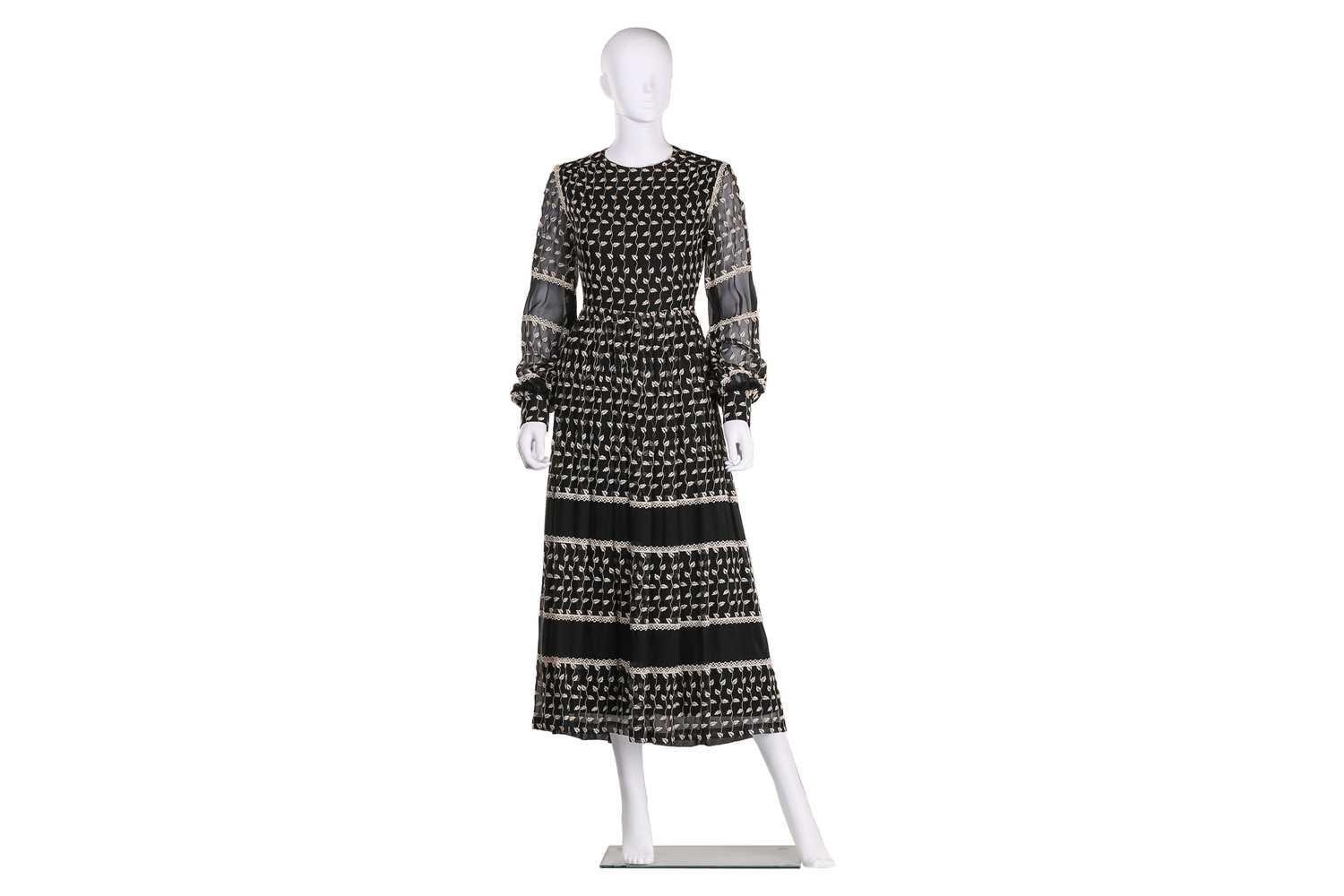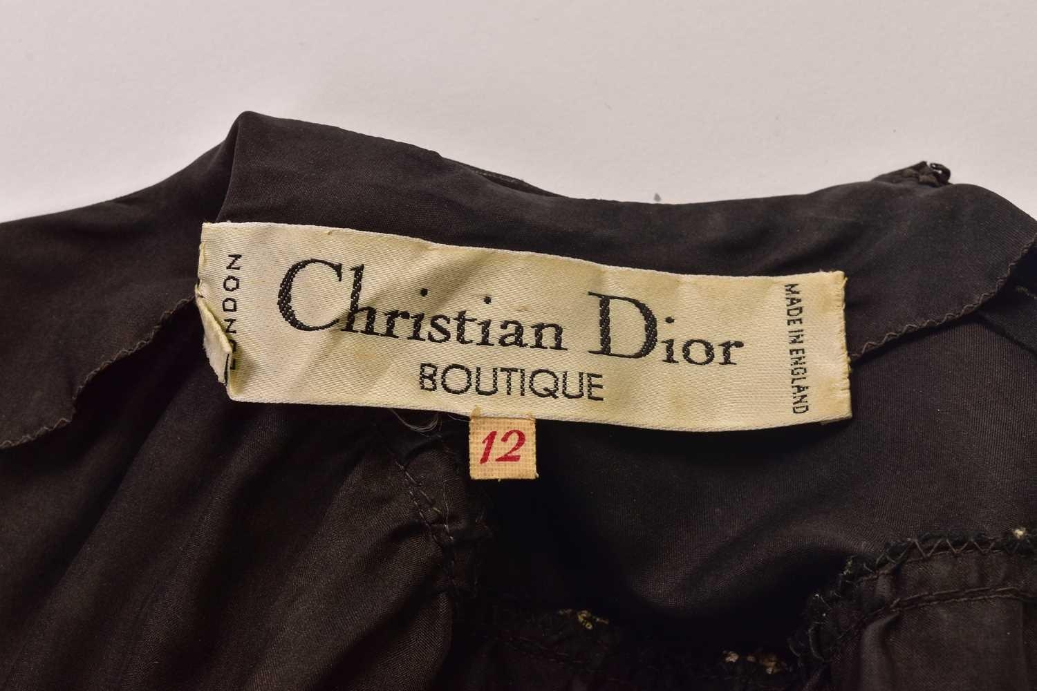 Christian Dior; a black and embroidered long dress, with long sleeves and high neckline, 'Boutique' and 'made in England' labelled, size 12. From the wardrobe of The Duchess of Abercorn. Good condition.