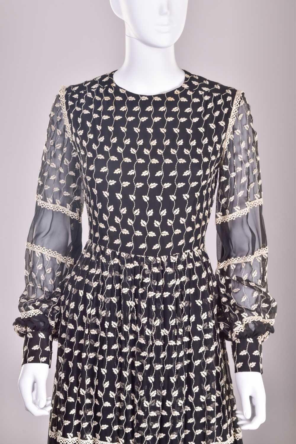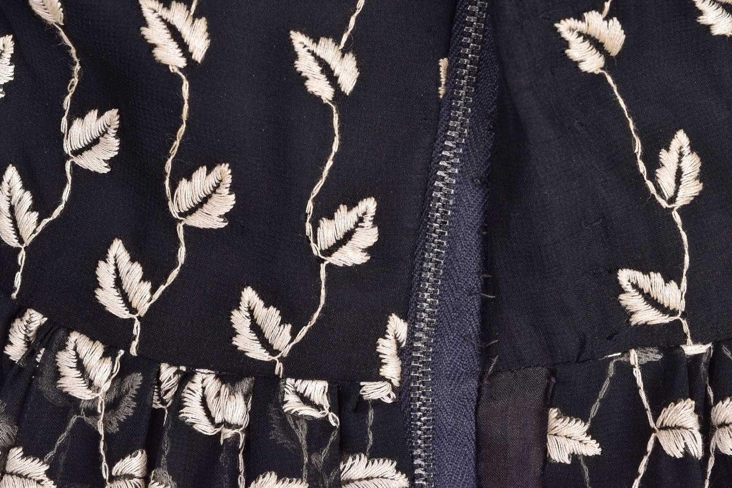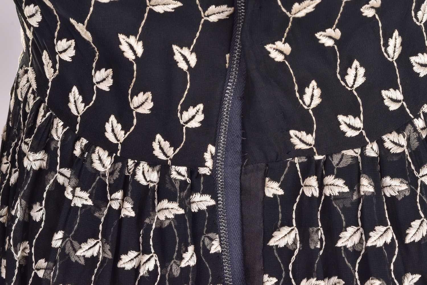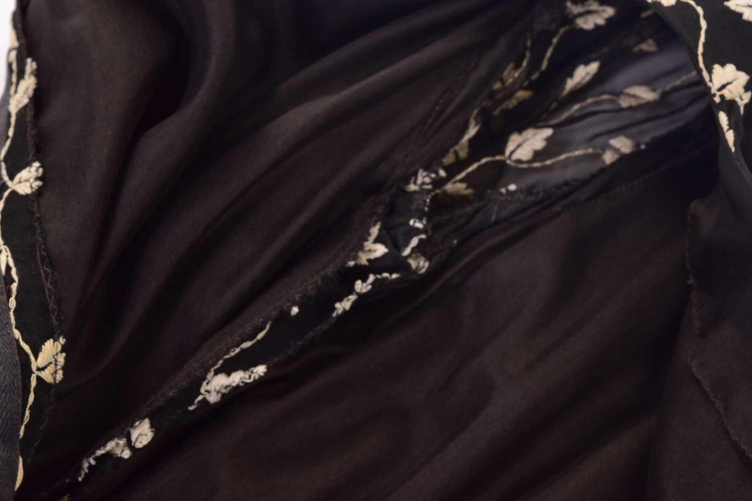 Christian Dior; a black and embroidered long dress, with long sleeves and high neckline, 'Boutique' and 'made in England' labelled, size 12. From the wardrobe of The Duchess of Abercorn. Good condition.