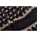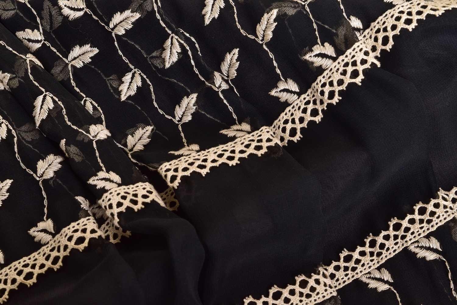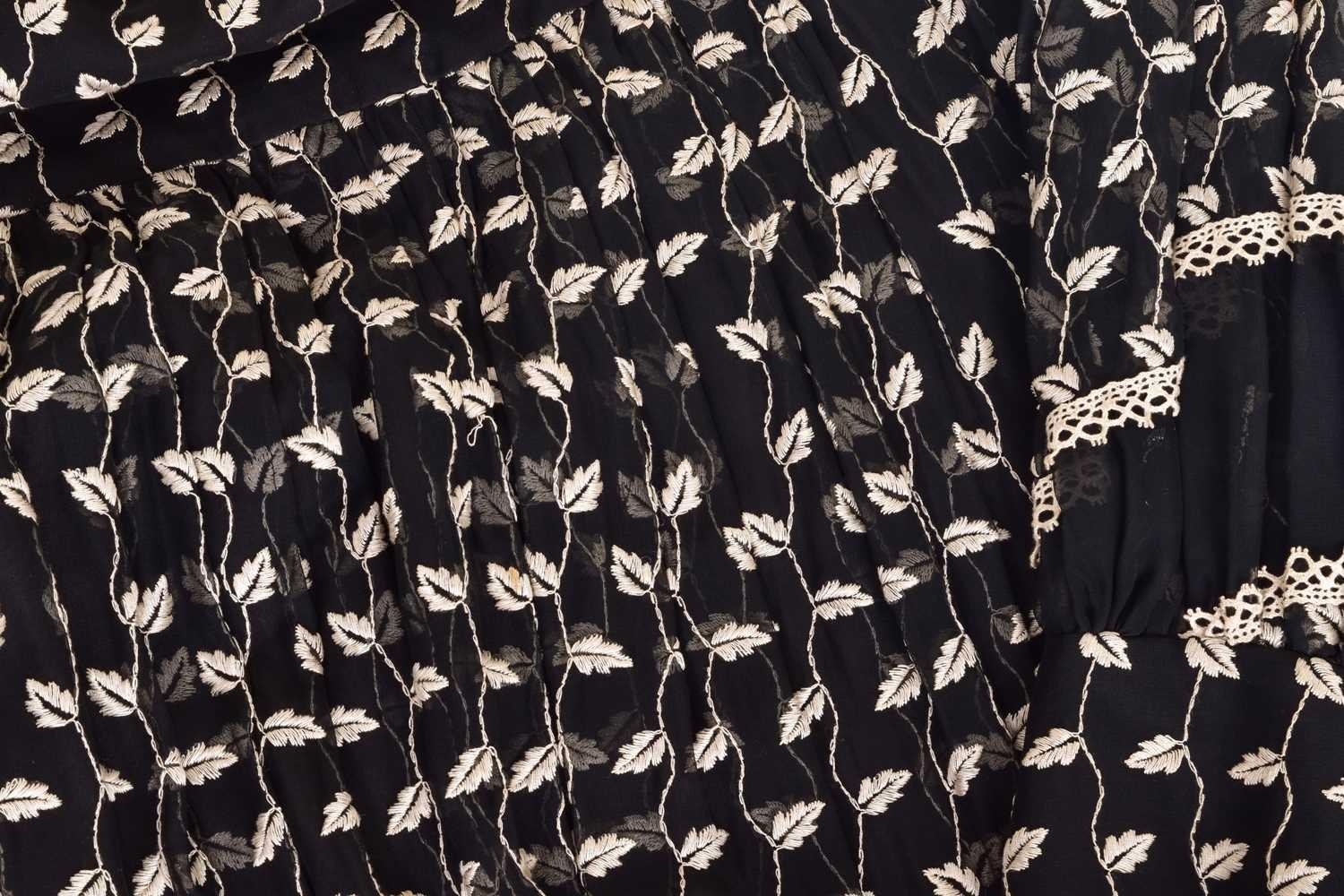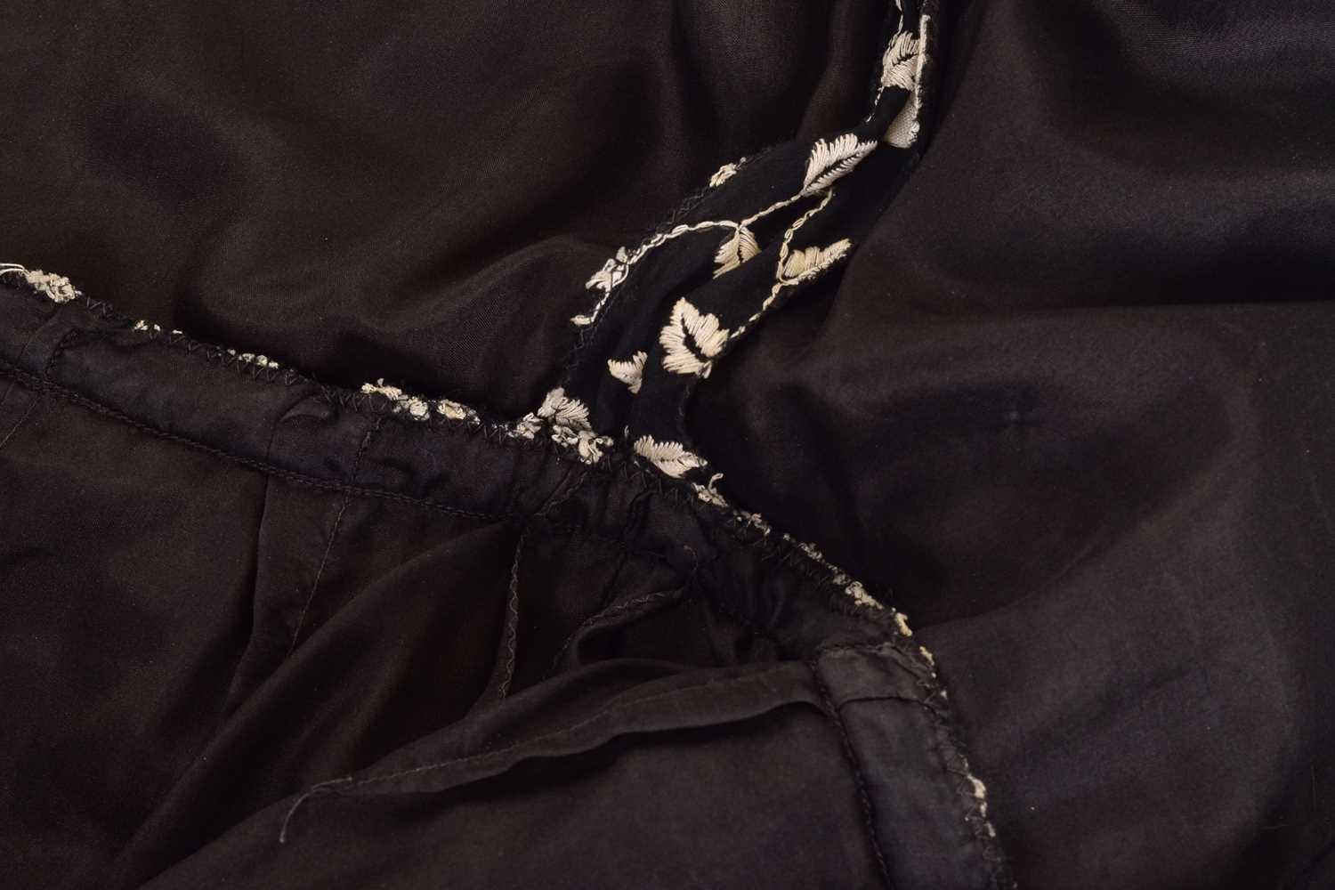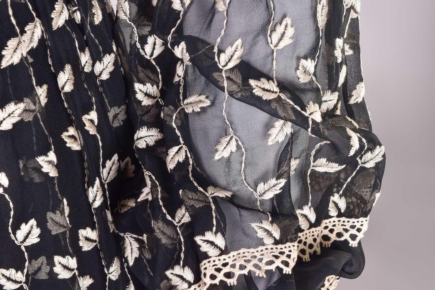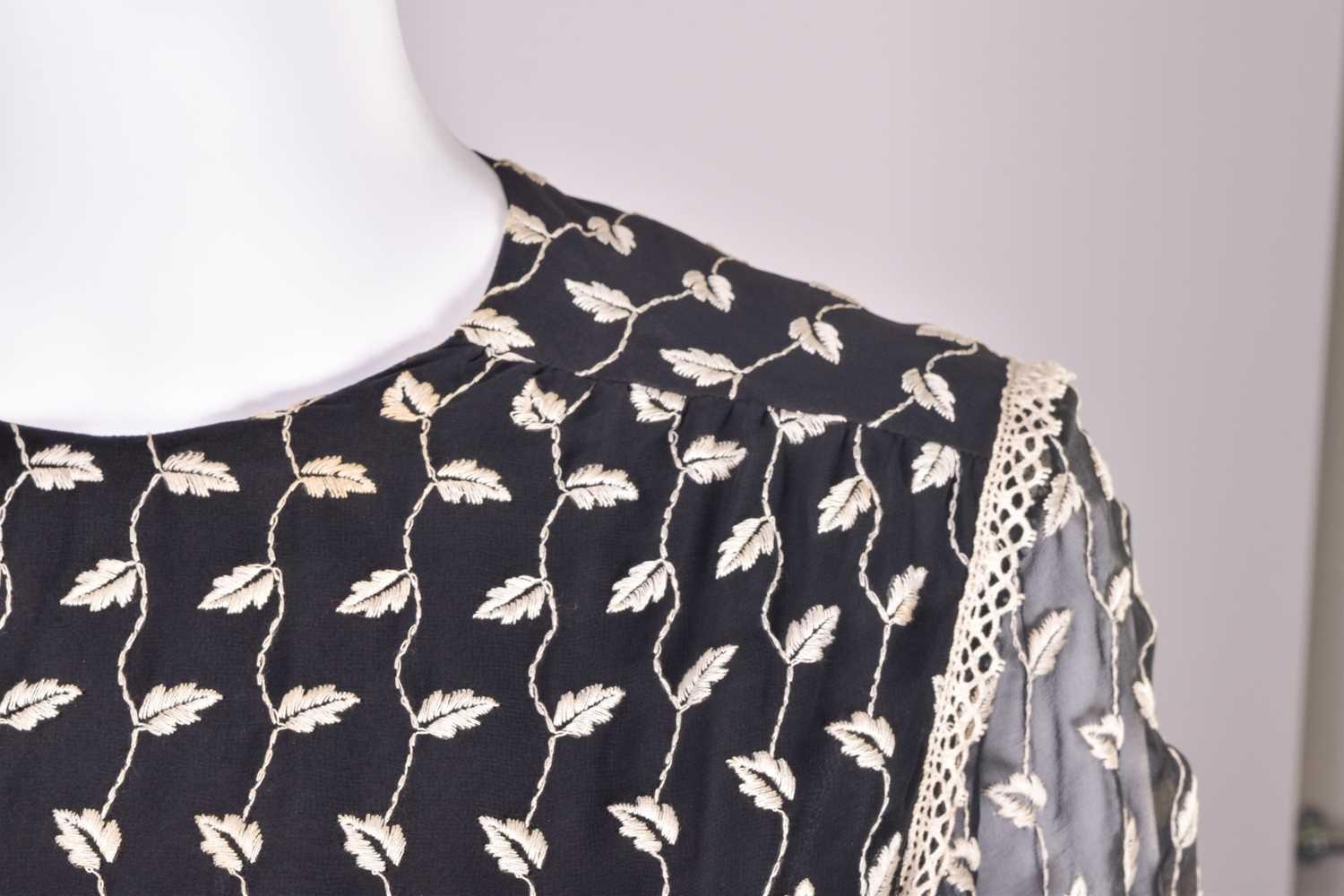 Christian Dior; a black and embroidered long dress, with long sleeves and high neckline, 'Boutique' and 'made in England' labelled, size 12. From the wardrobe of The Duchess of Abercorn. Good condition.