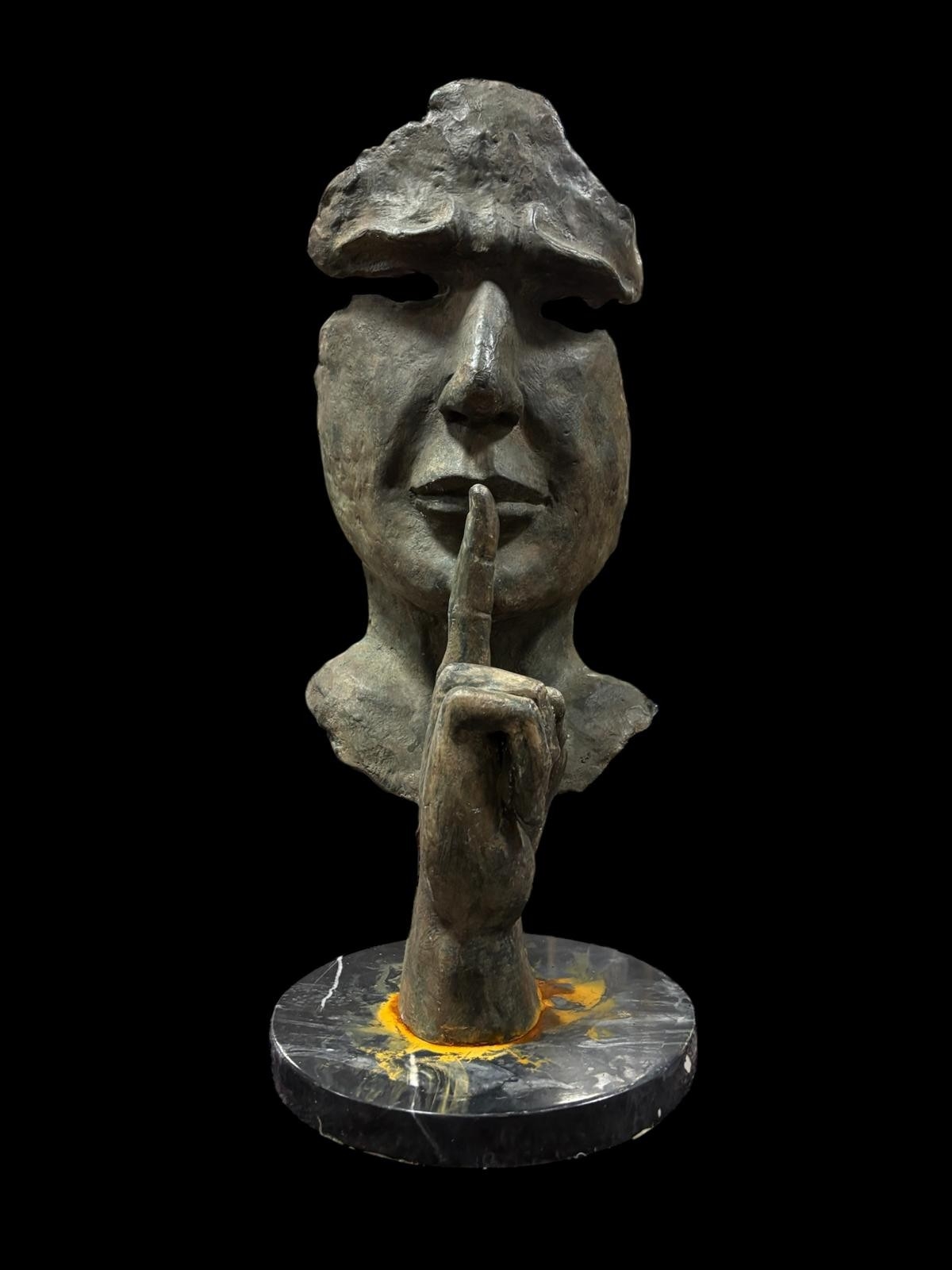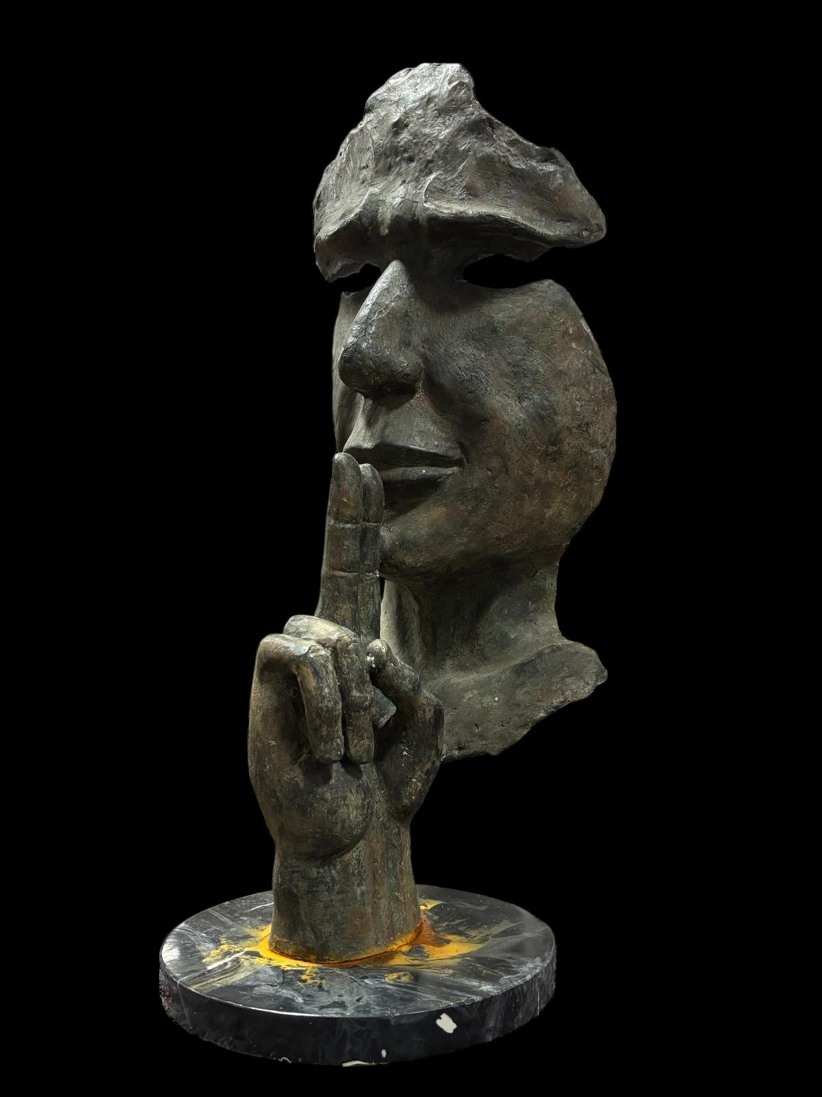after SALVADOR DALI A cast bronze sculpture 'The Silence' raised on a circular black veined marble base 63cm (h) x 26cm (w) x 30cm (d)