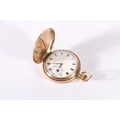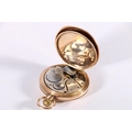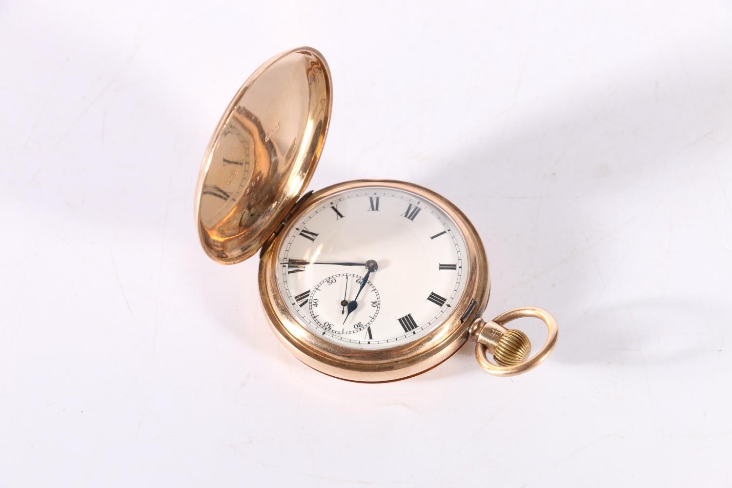 9ct gold cased full hunter keyless pocket watch, the white enamel dial with Roman Numerals and subsidiary seconds dial, 98.4g gross