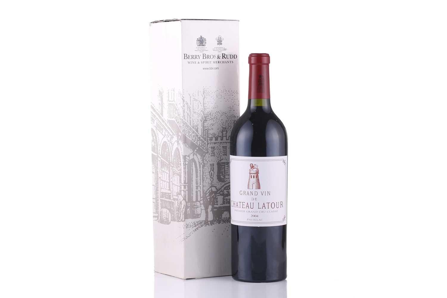 A bottle of 2004 Chateau Lautour Premier Grand Cru Classé, 750ml, 13& Vol, in a Berry Bros and Rudd card outer.