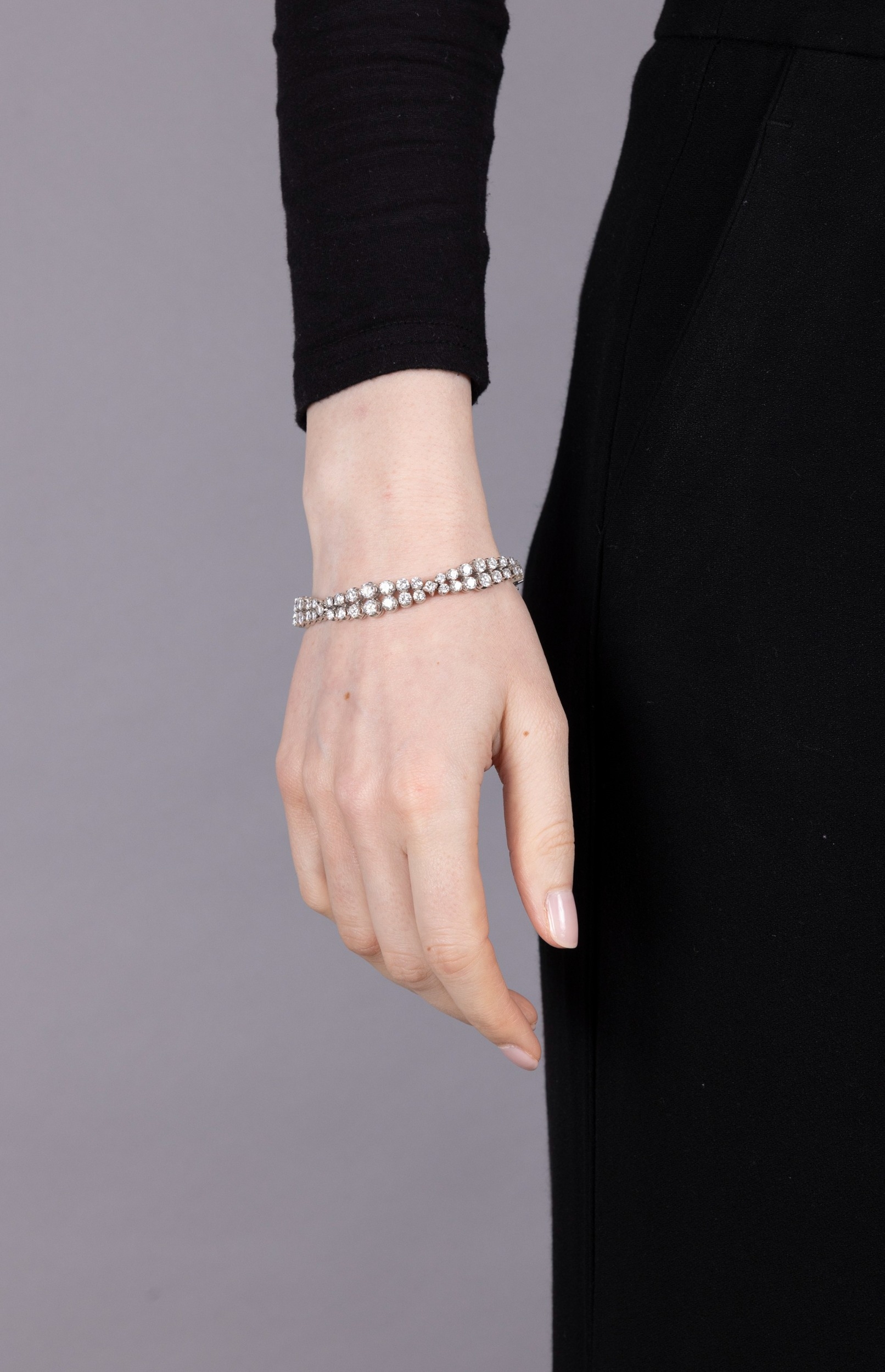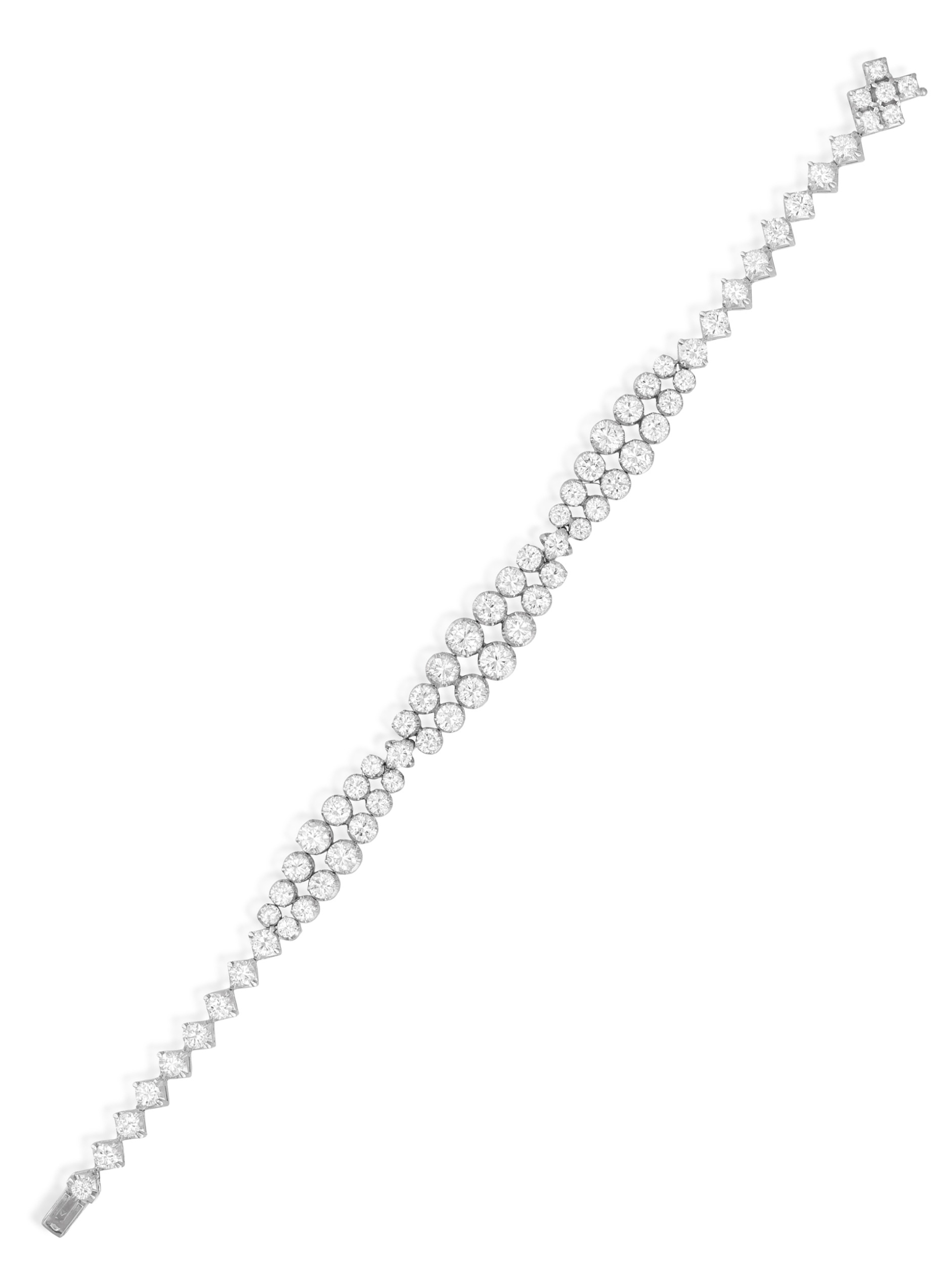 A DIAMOND BRACELET, CIRCA 1965 The flexible strap designed as three double row of graduated brilliant-cut diamonds at the centre, each end with a single row of similarly-cut diamonds, finished with a brilliant-cut diamond cluster clasp, mounted in 18K gold, diamonds approximately 8.00cts total, partial Italian registry mark between '1944-1968', length 17.5cm