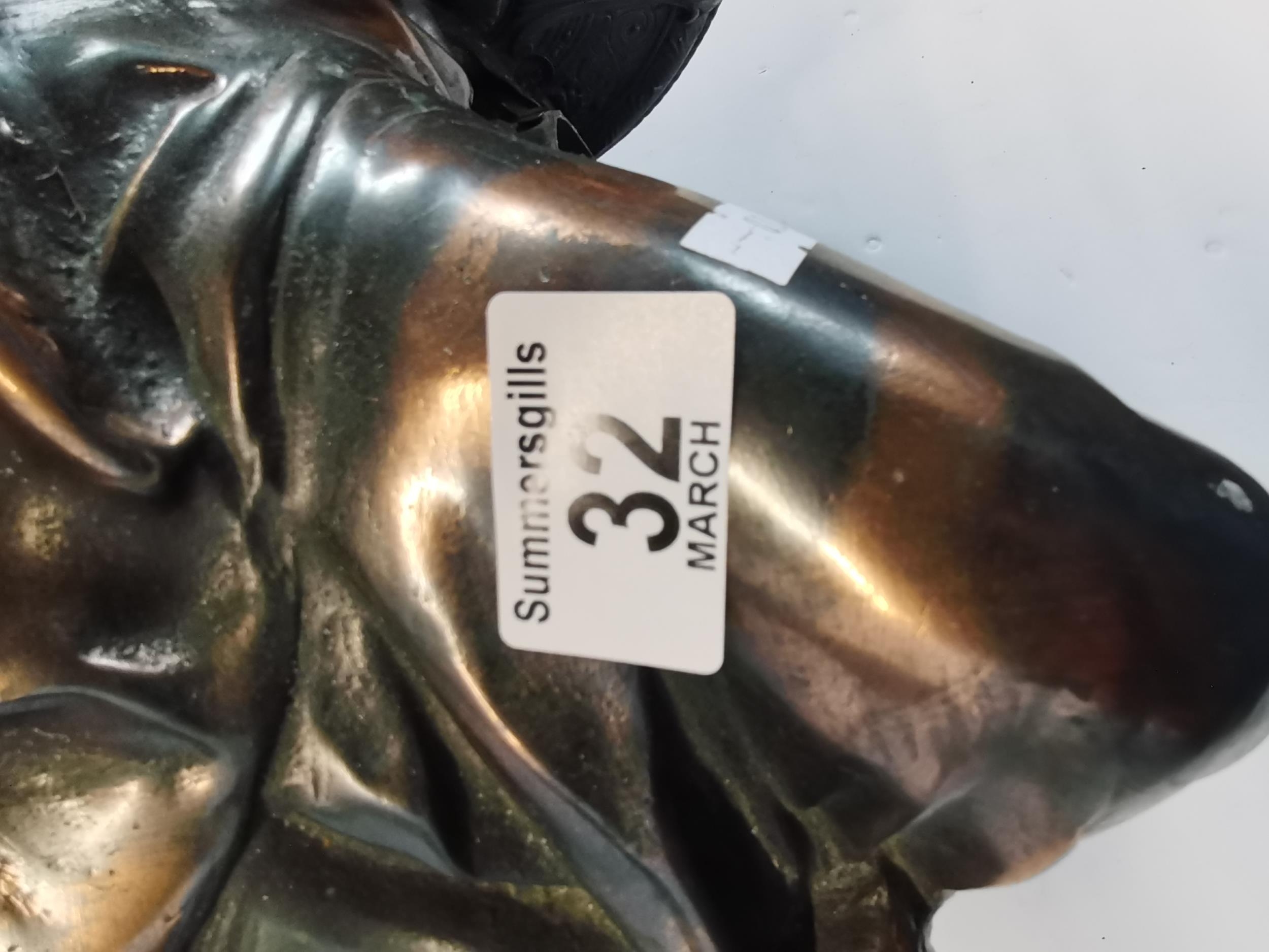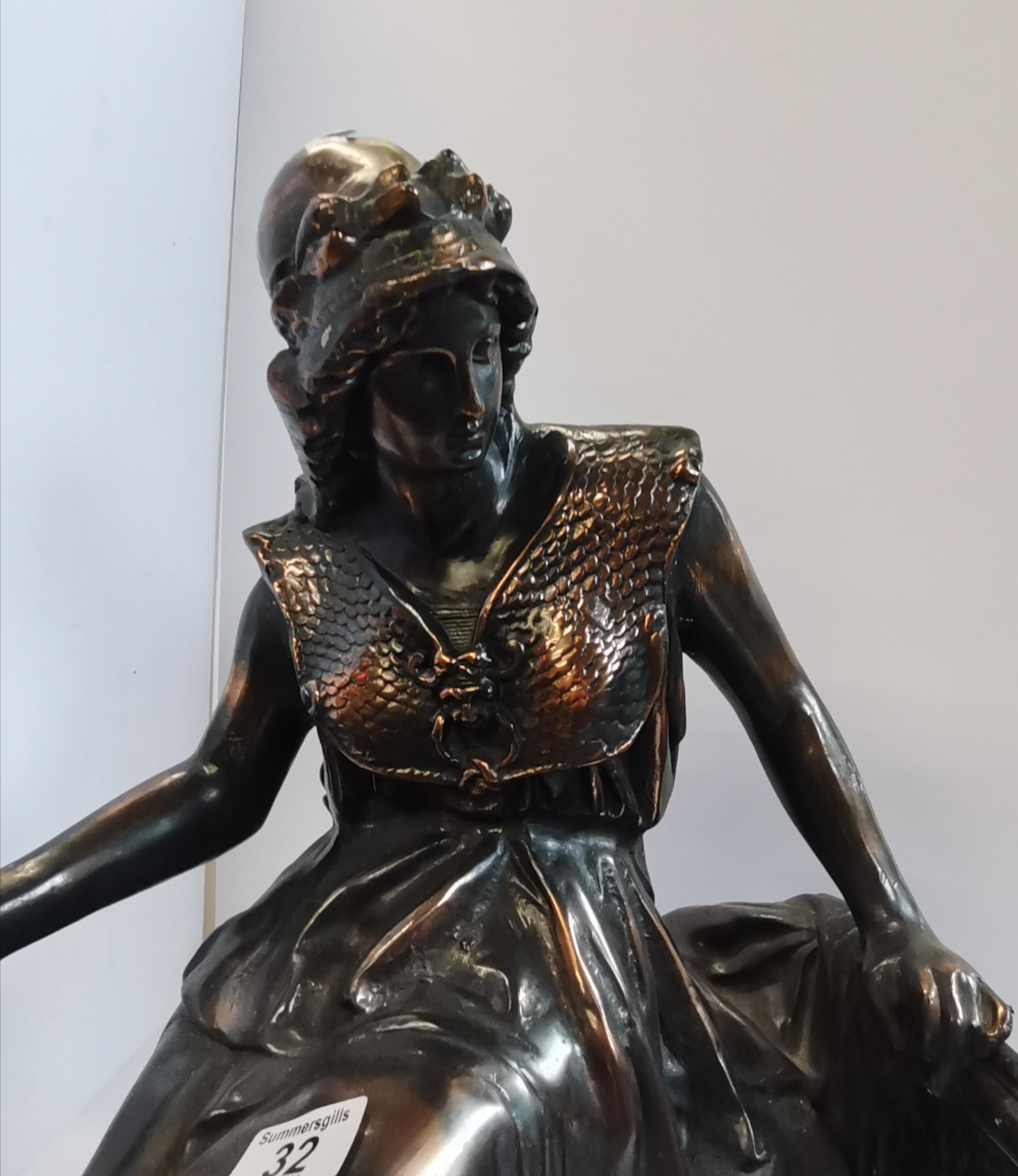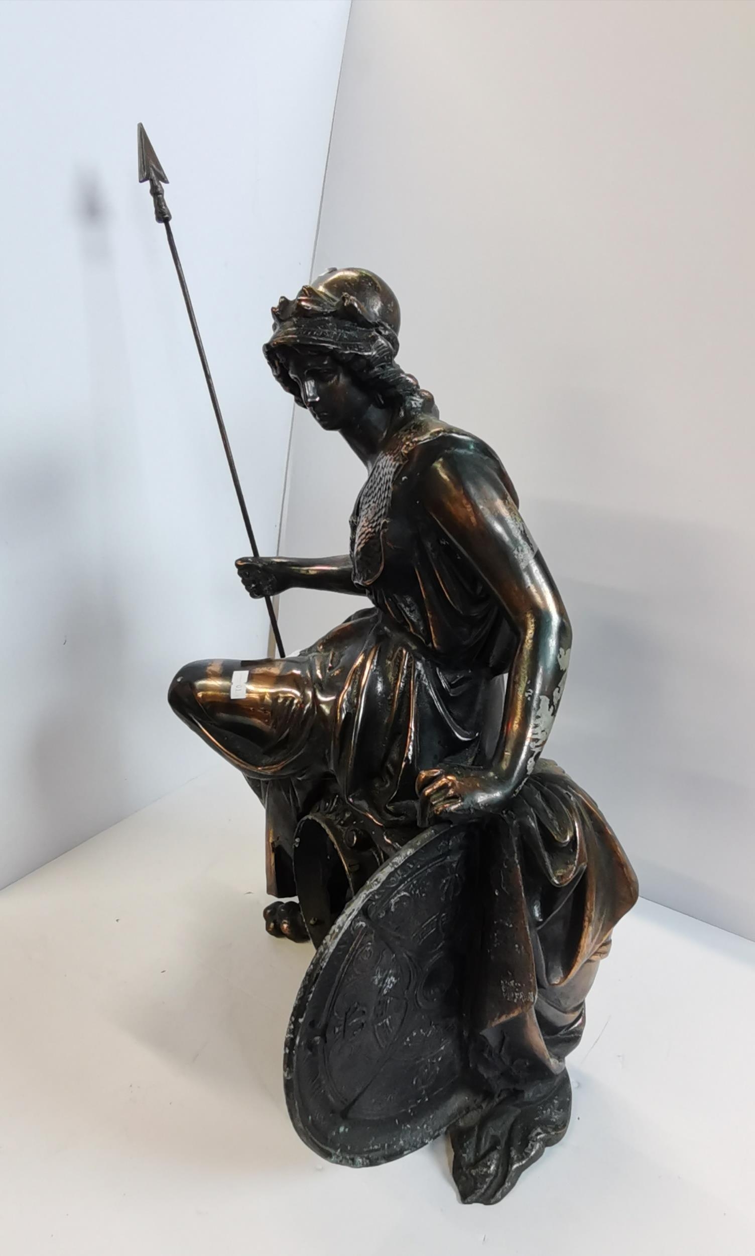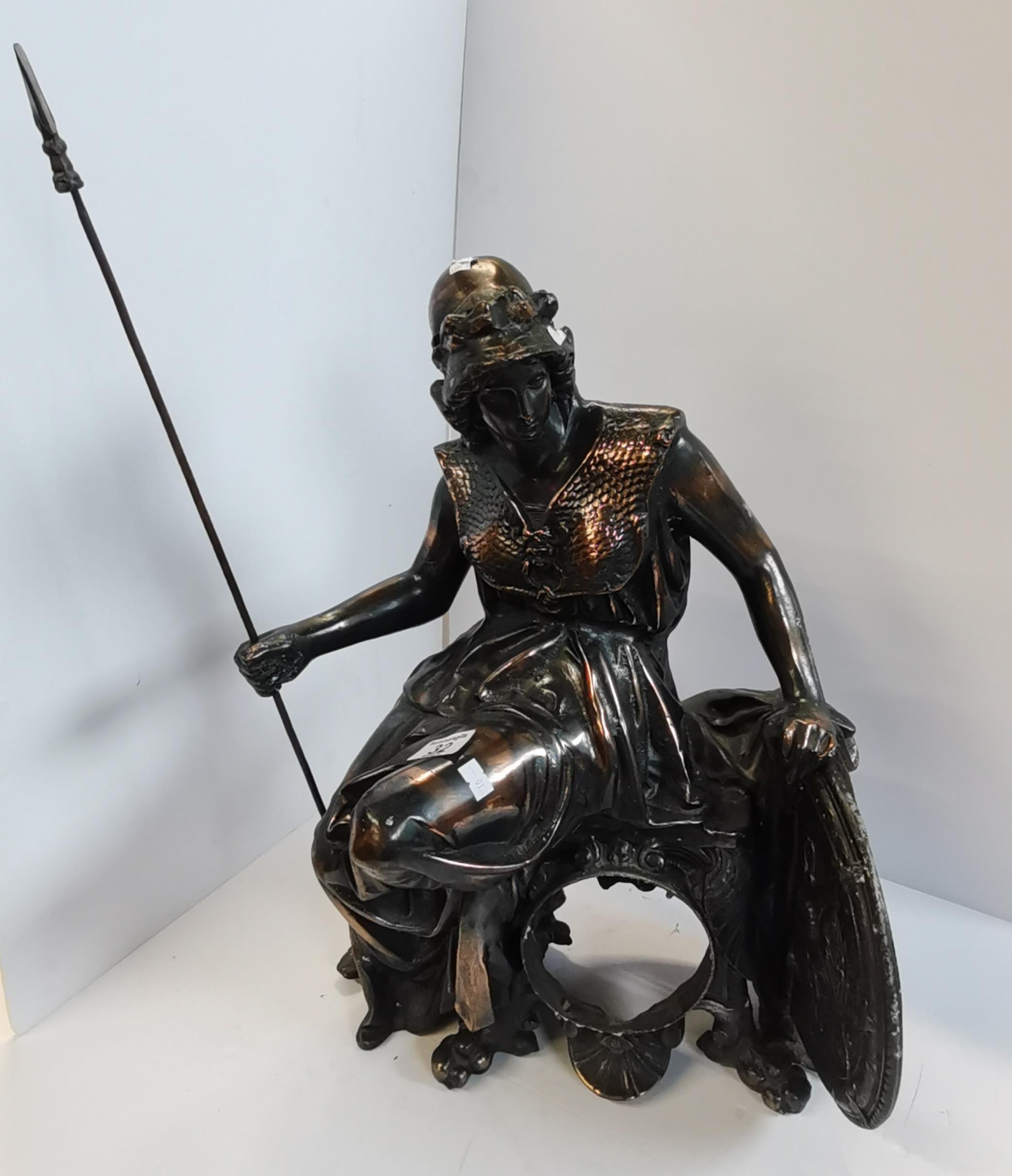 Spelter figure with bronzed finish of warrior holding spear 57cm height