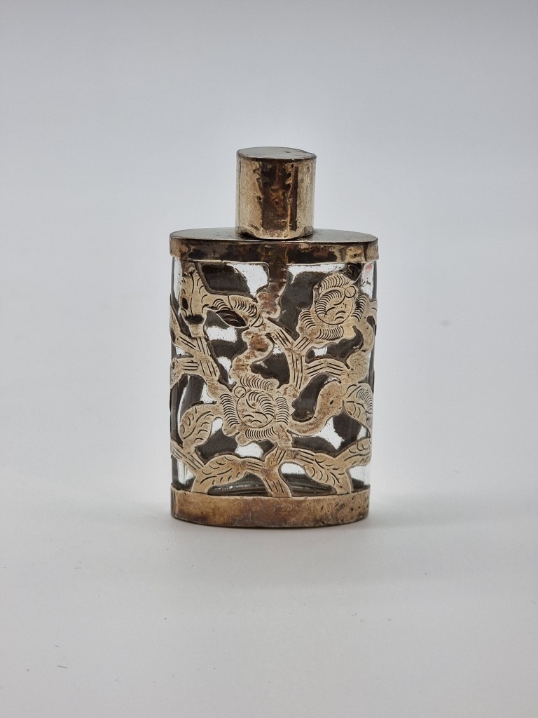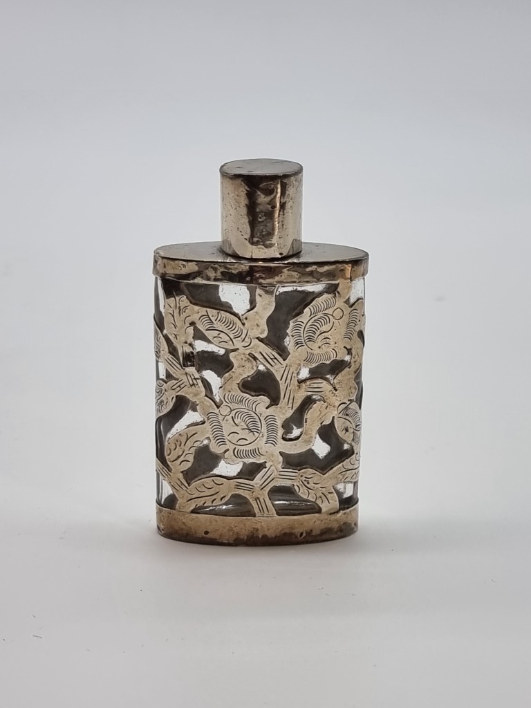 A Sterling silver mounted clear glass scent bottle and stopp...