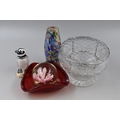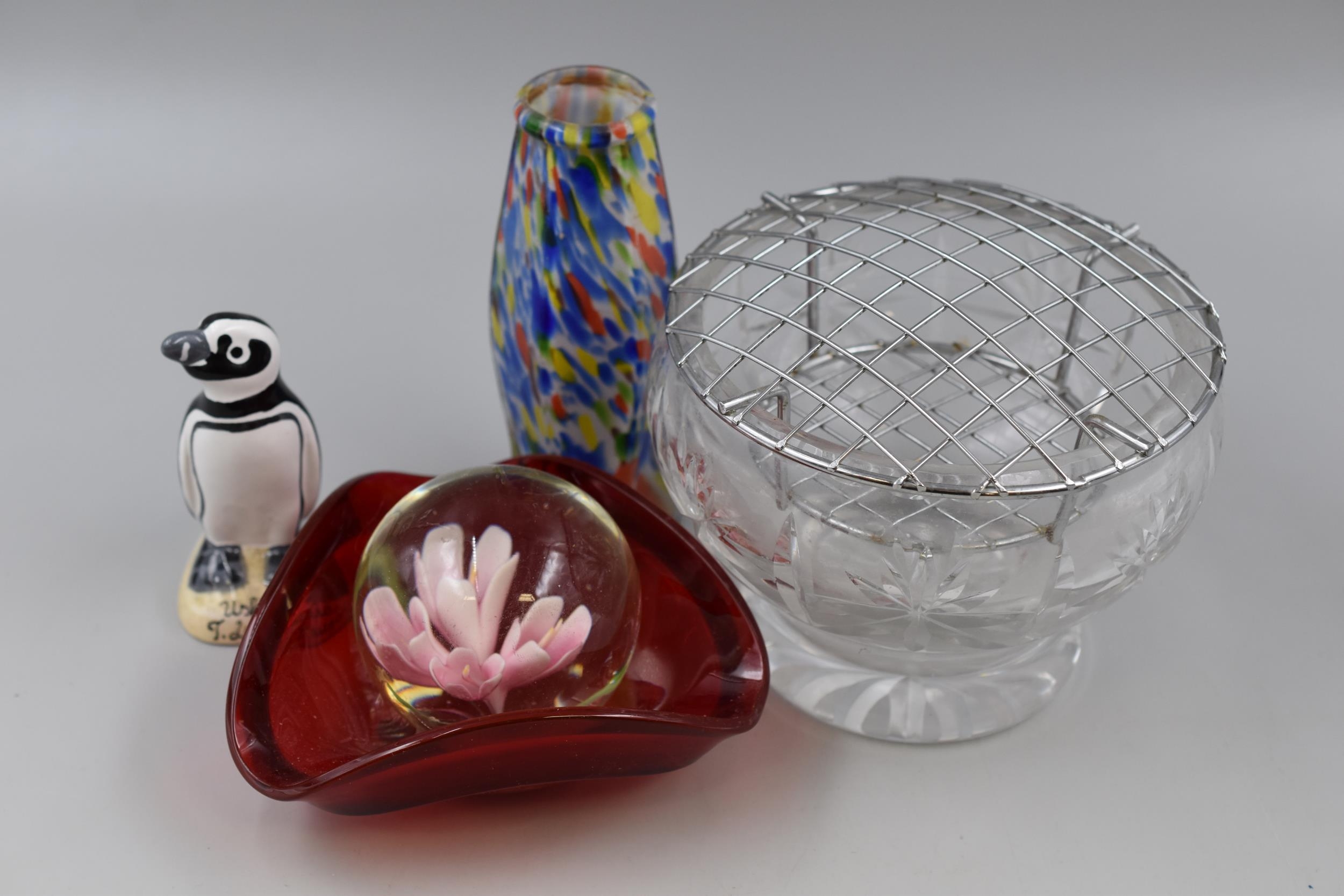 Vintage cut crystal glass centerpiece plus a Murano style art glass (6" H) and a Murana style glass ashtray plus more