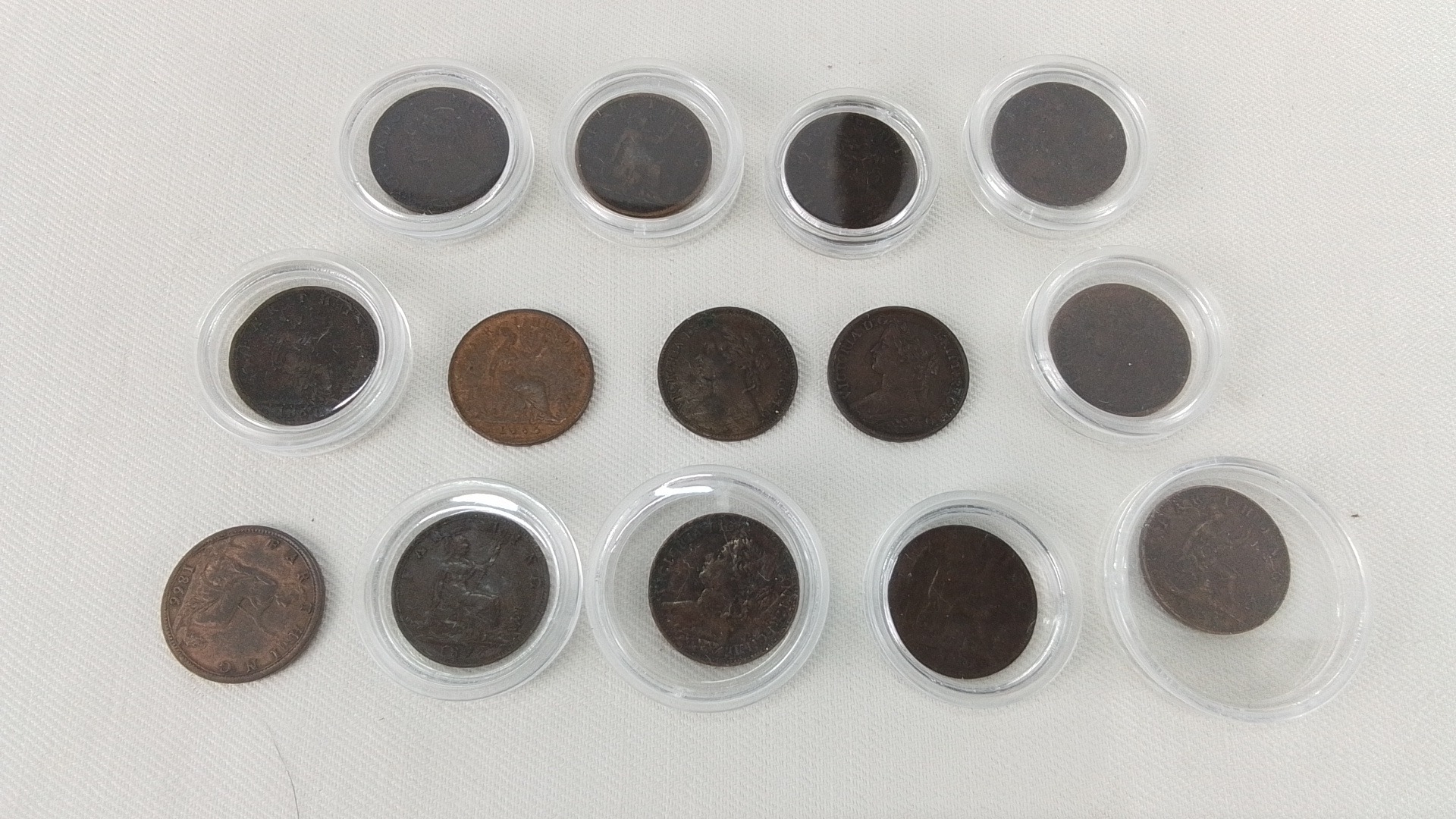 12 British bronze coinage piece, including Queen Victoria issues and later.
