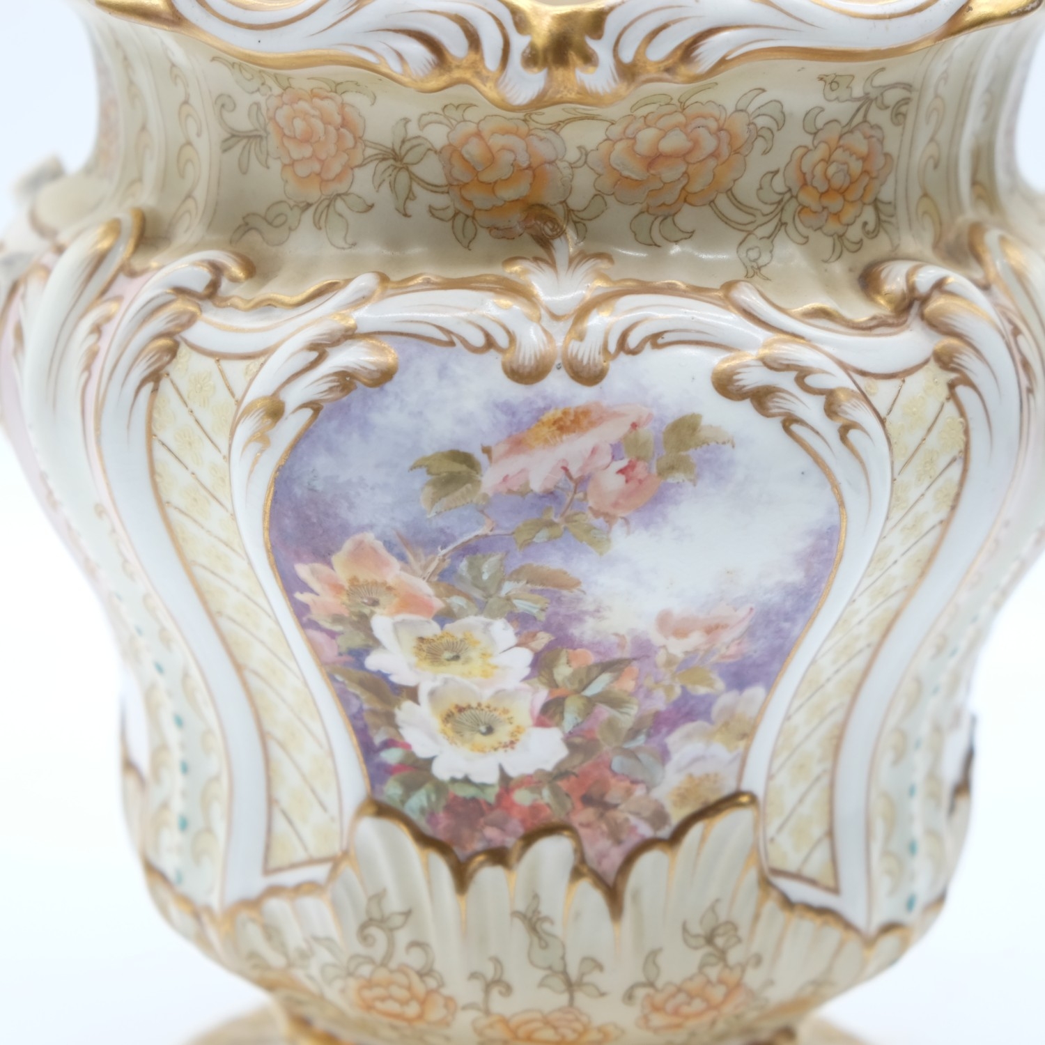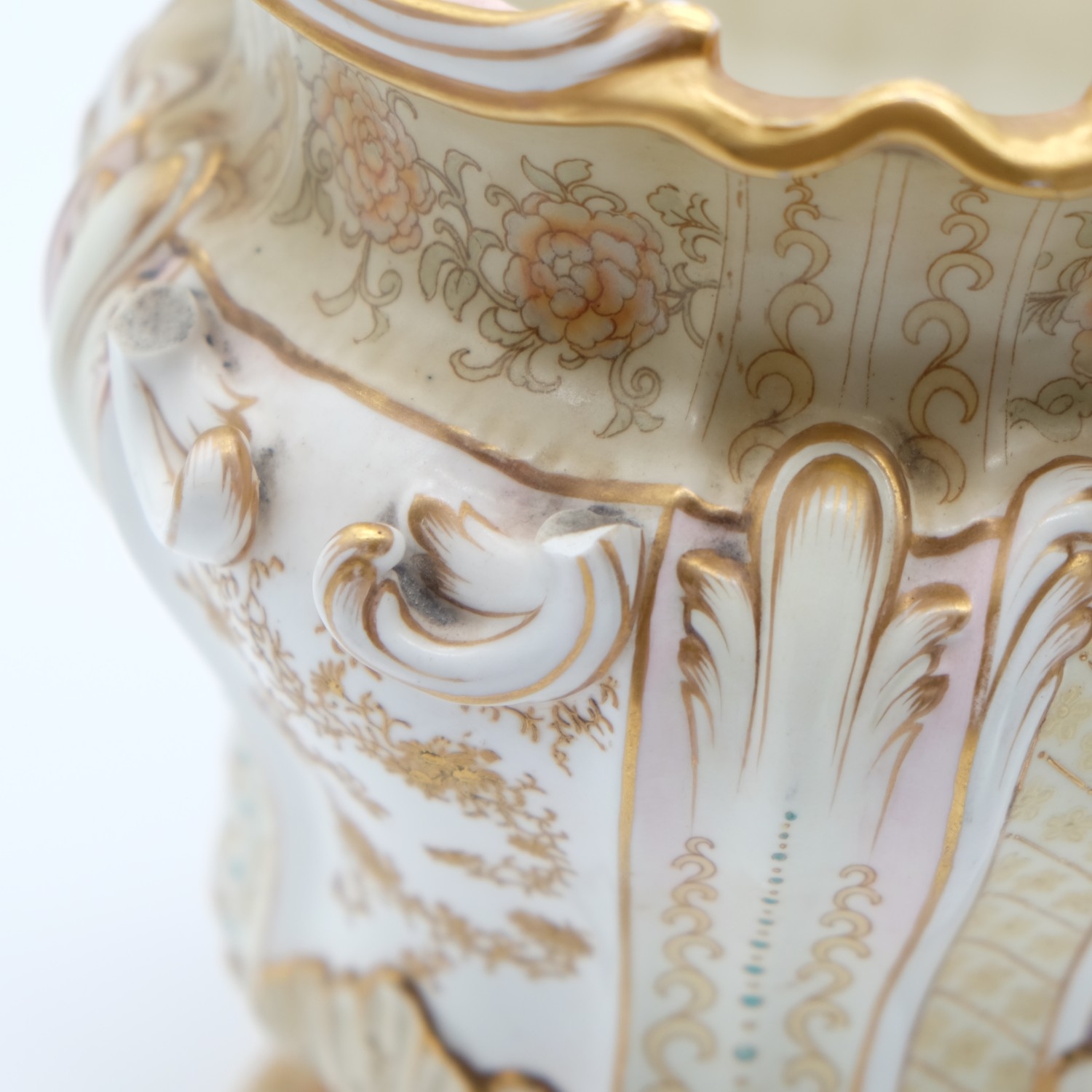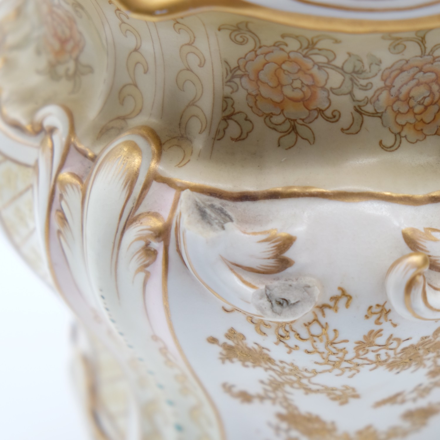 Doulton Burslem Victorian hand painted large ornate vase, H: 23 cm, lacking cover, damaged. UK P&P Group 3 (£35+VAT for the first lot and £10+VAT for subsequent lots)