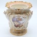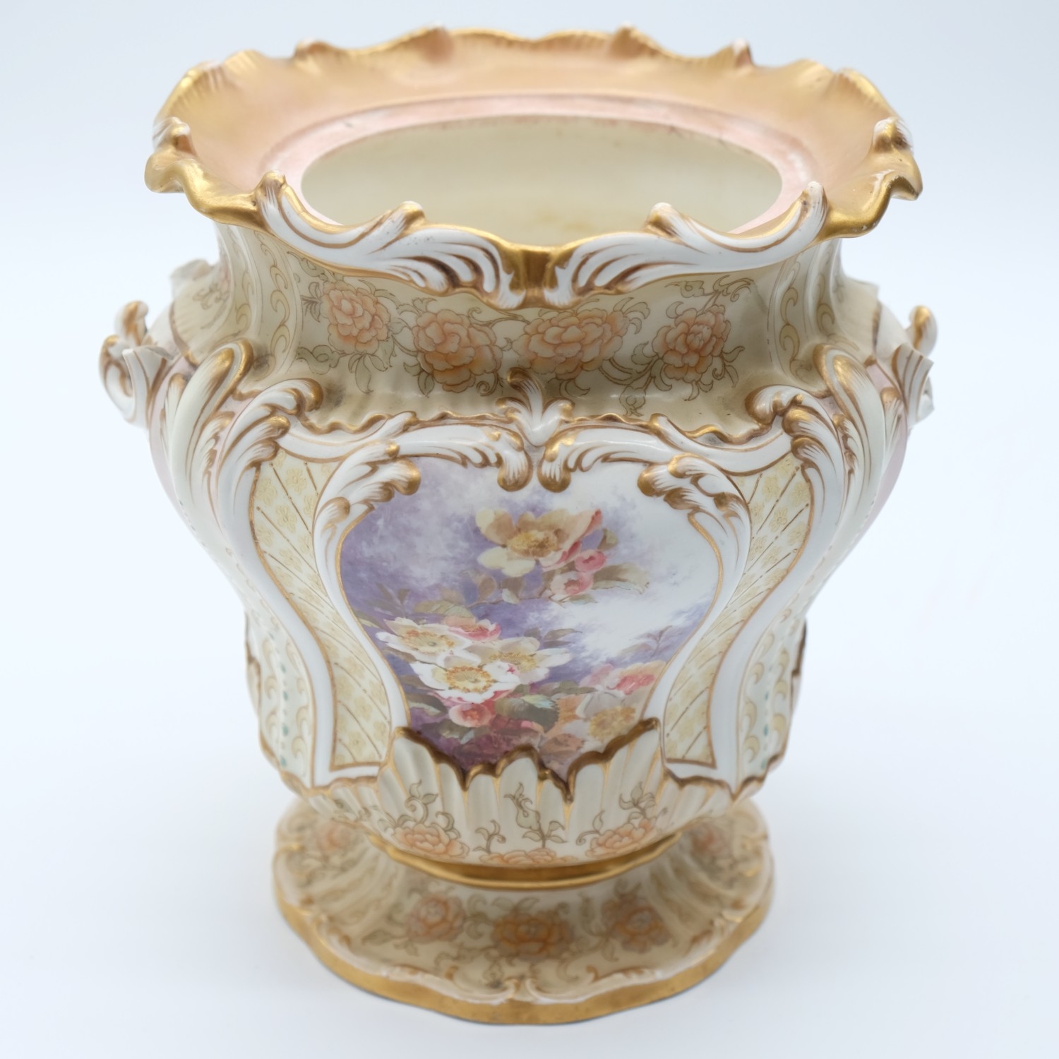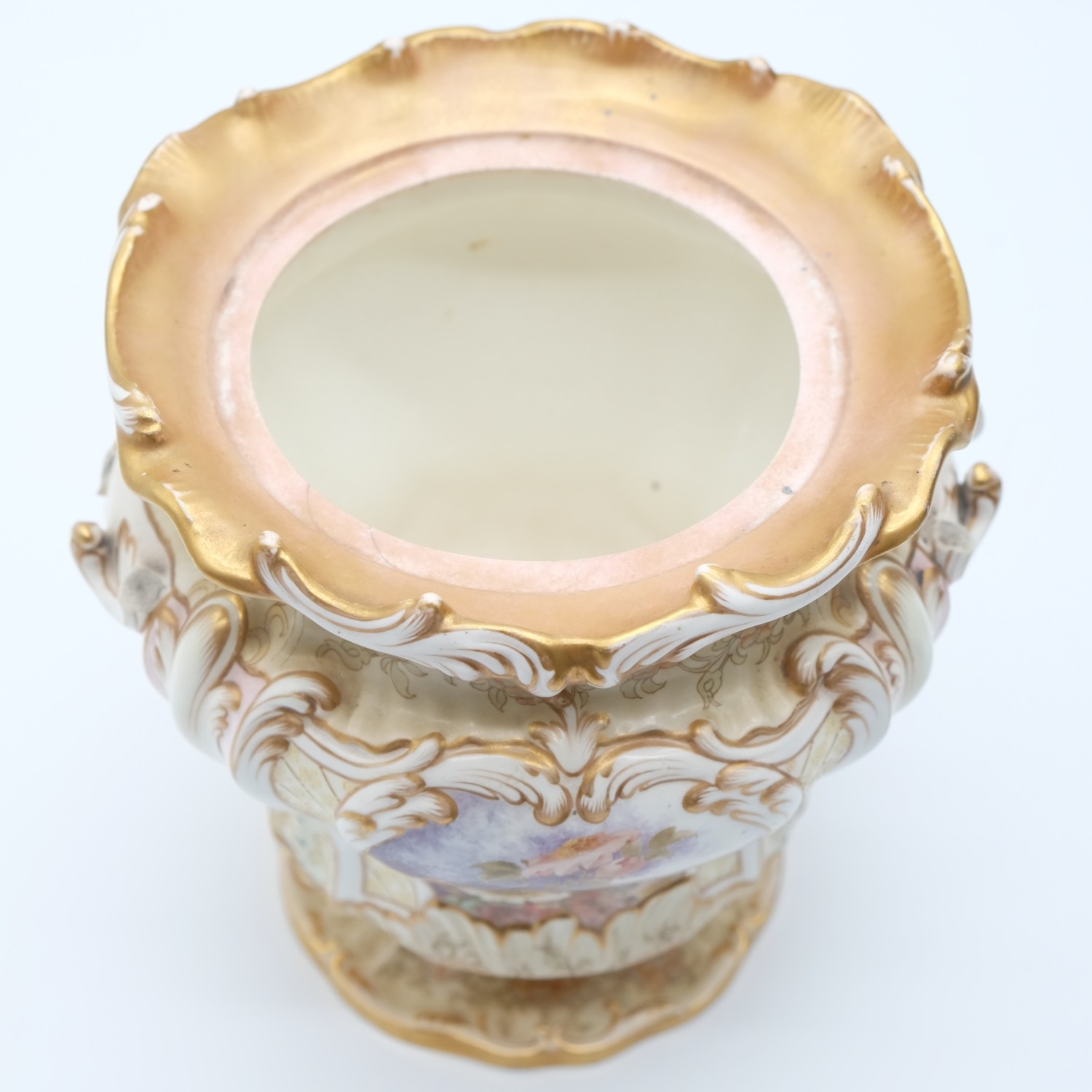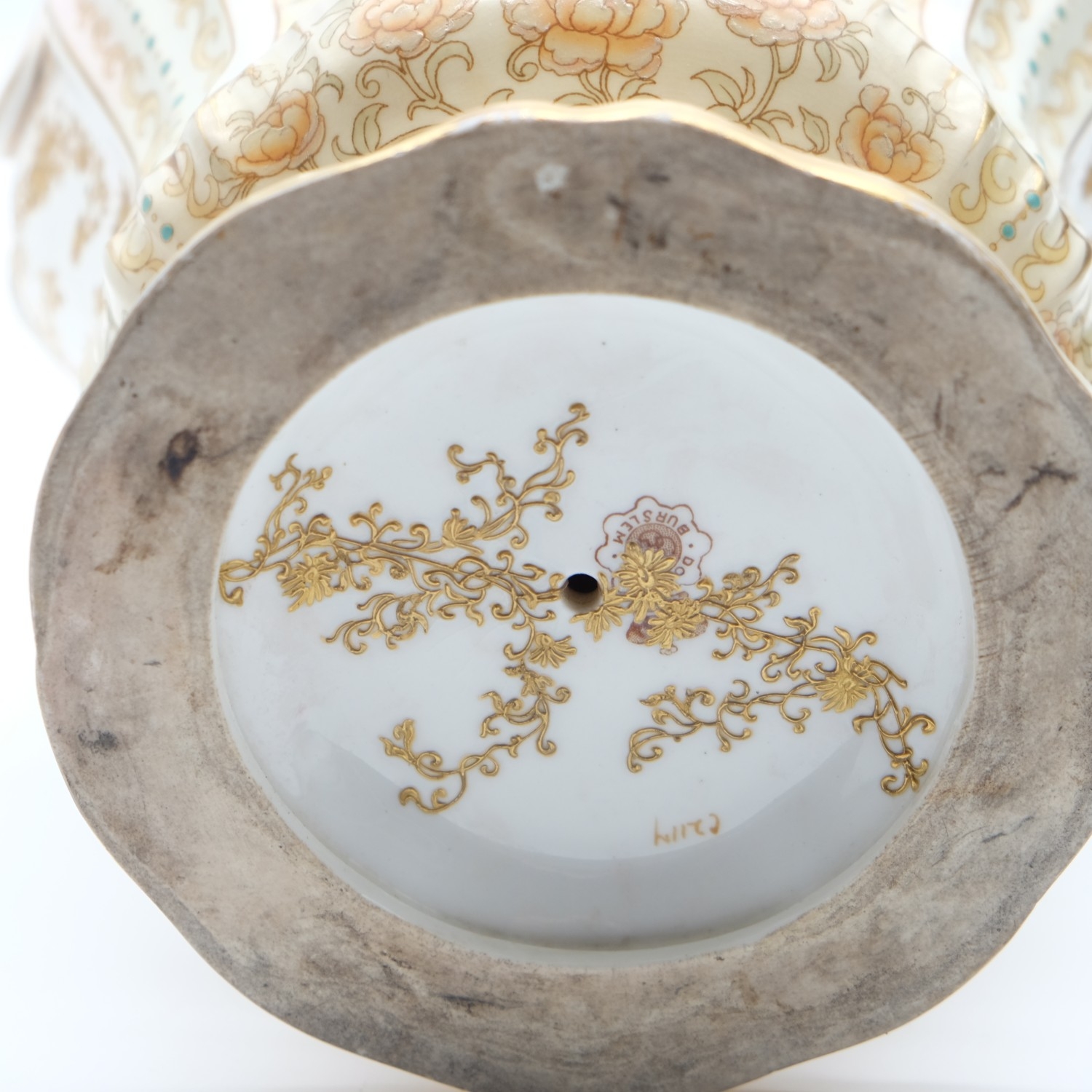 Doulton Burslem Victorian hand painted large ornate vase, H: 23 cm, lacking cover, damaged. UK P&P Group 3 (£35+VAT for the first lot and £10+VAT for subsequent lots)