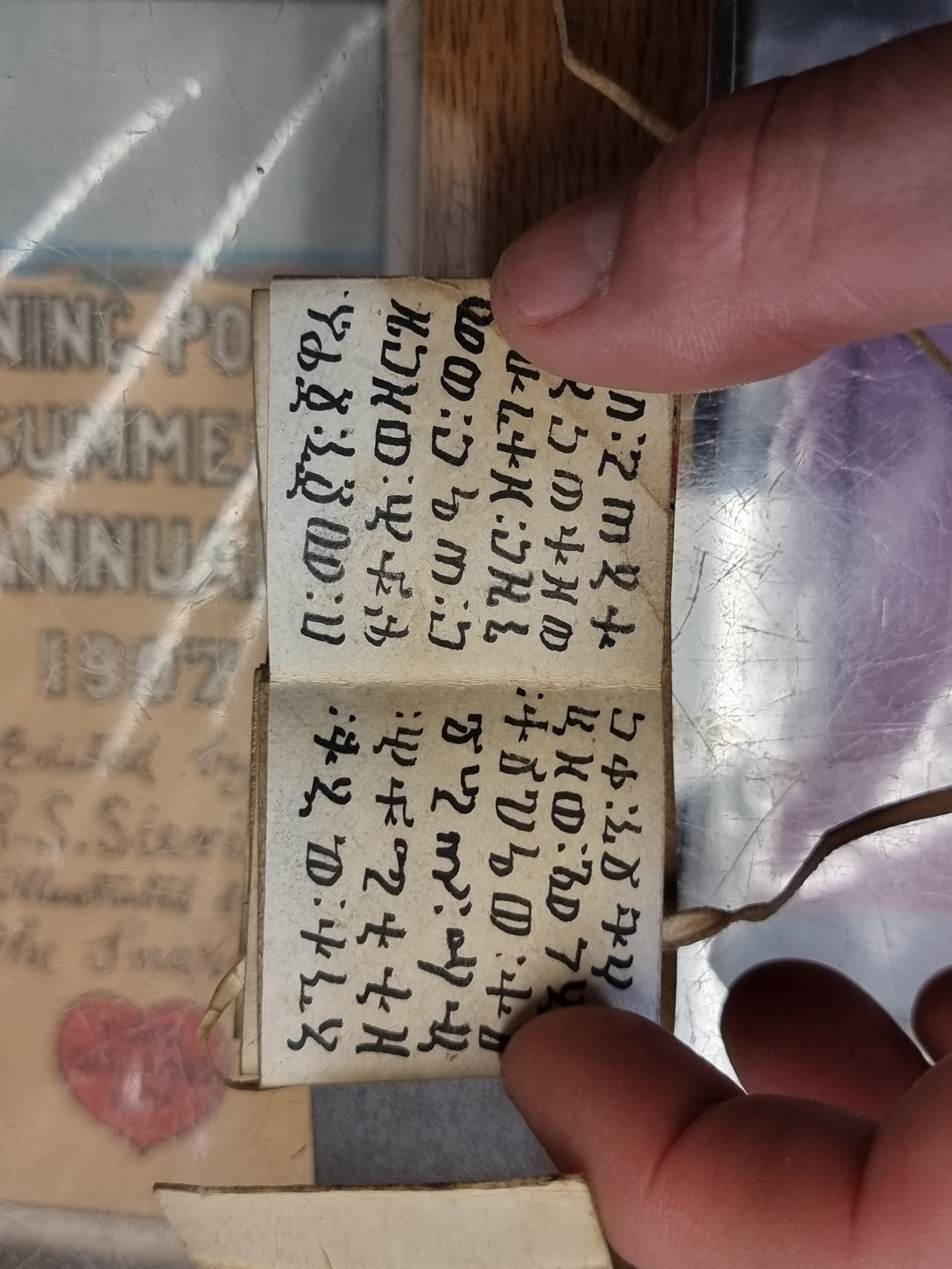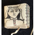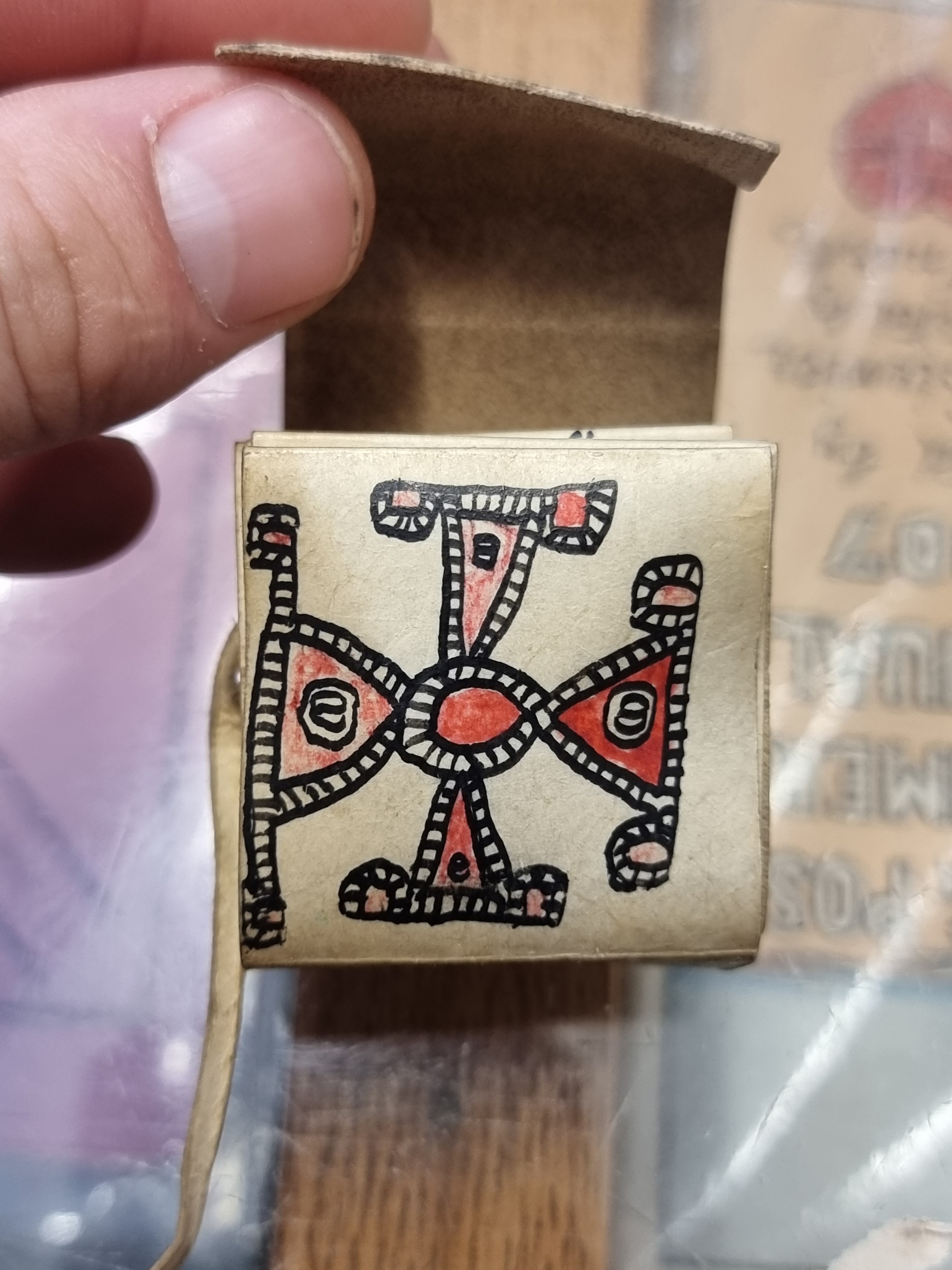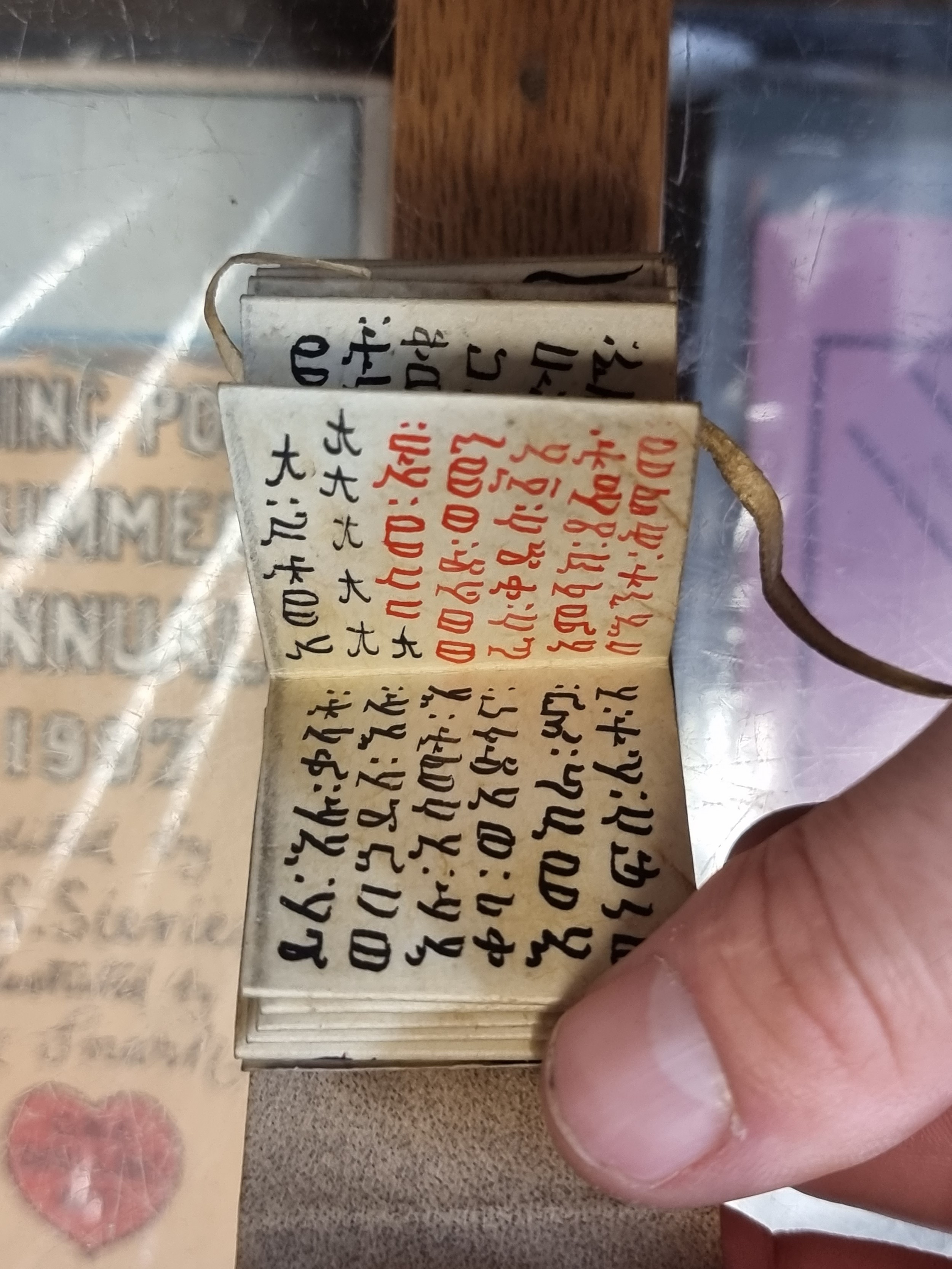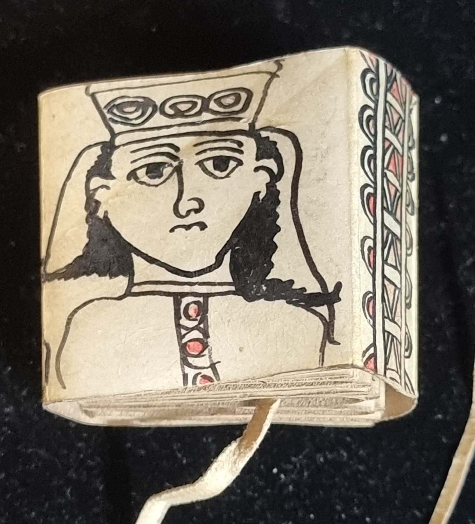 MINIATURE COPTIC MANUSCRIPT: a small format devotional manuscript on vellum, folded into concertina form, comprising some 30 panels with text or illustrations to both sides in black and red ink, wrap-around covers with cord tie, approx 4 x 4 x 2cm in cased state, likely mid-20th century. (1)