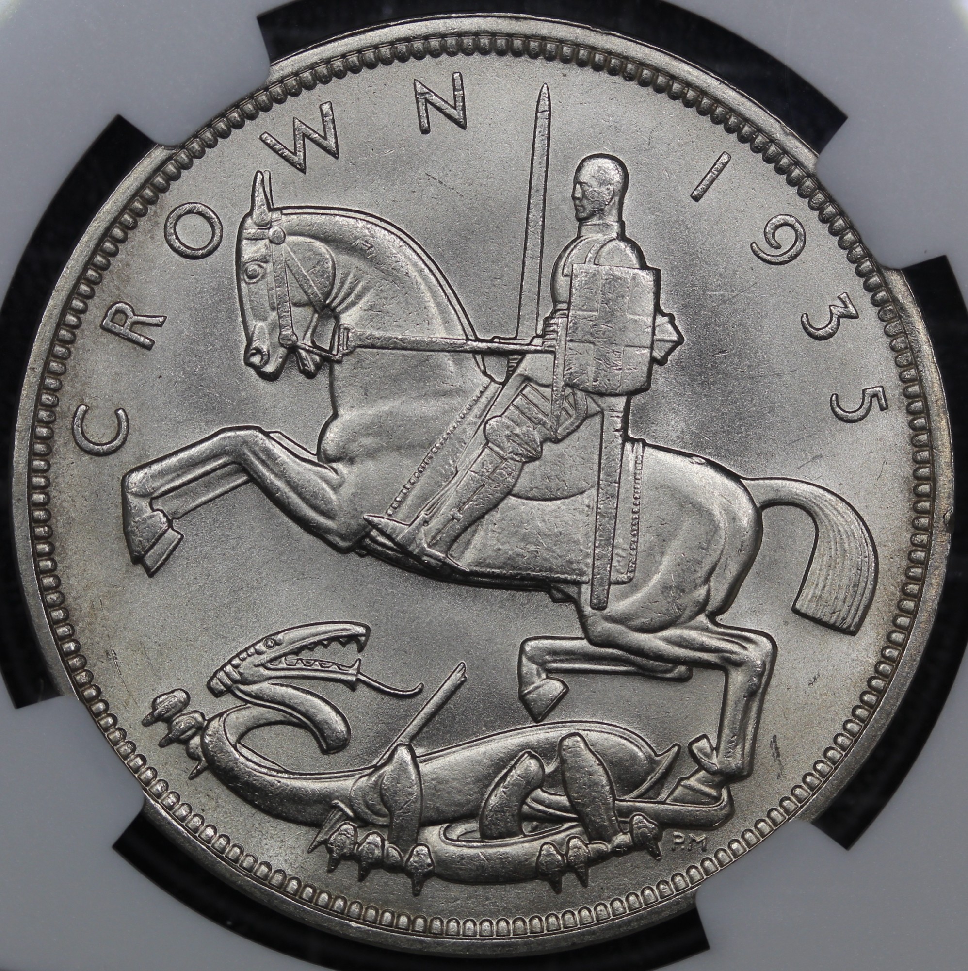 1935 Crown, George V (ESC 375, Bull 3651, S.4048). Graded NGC MS64, uncirculated, with full mint lustre. A superb example of an often much maligned issue.