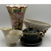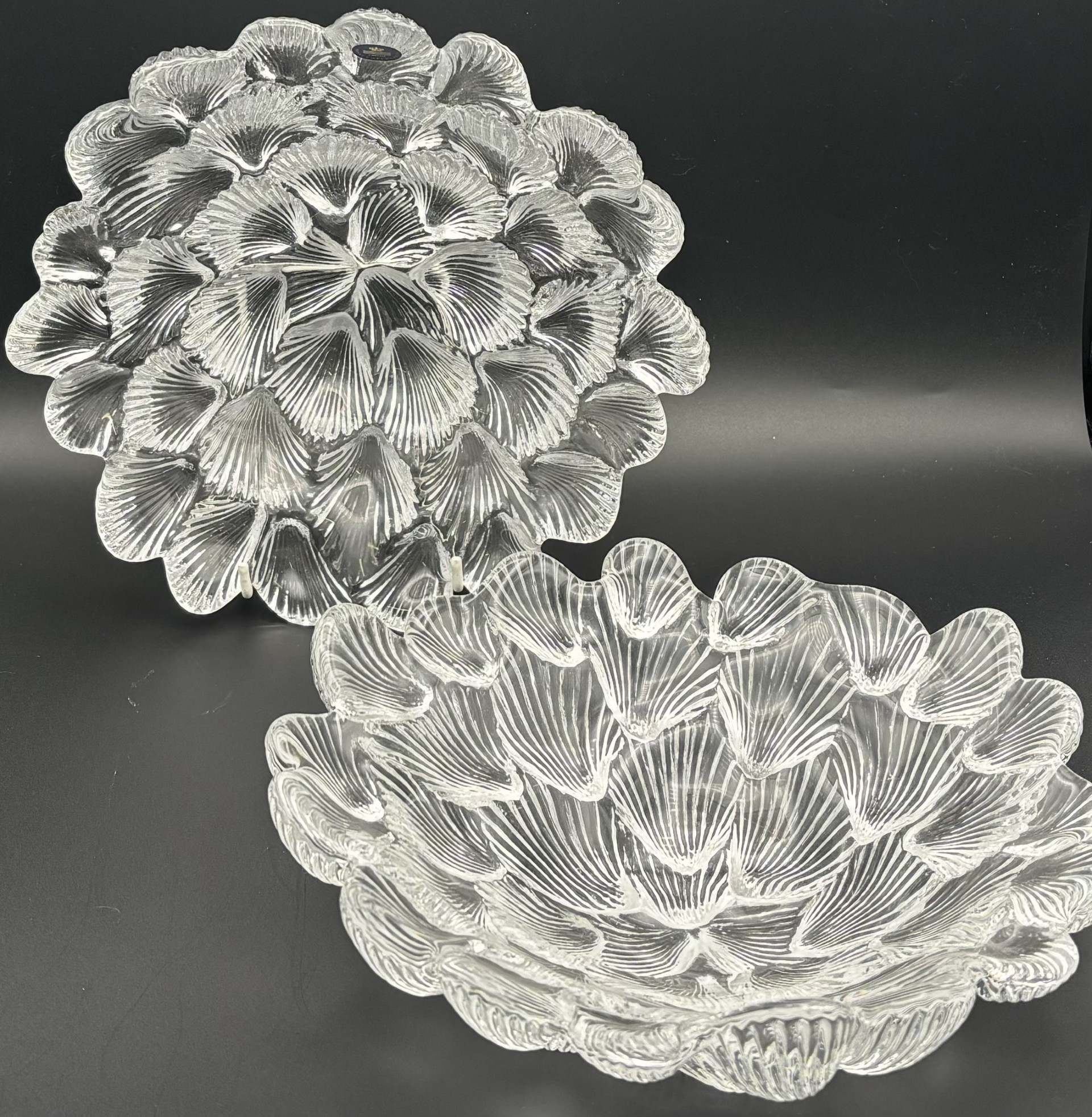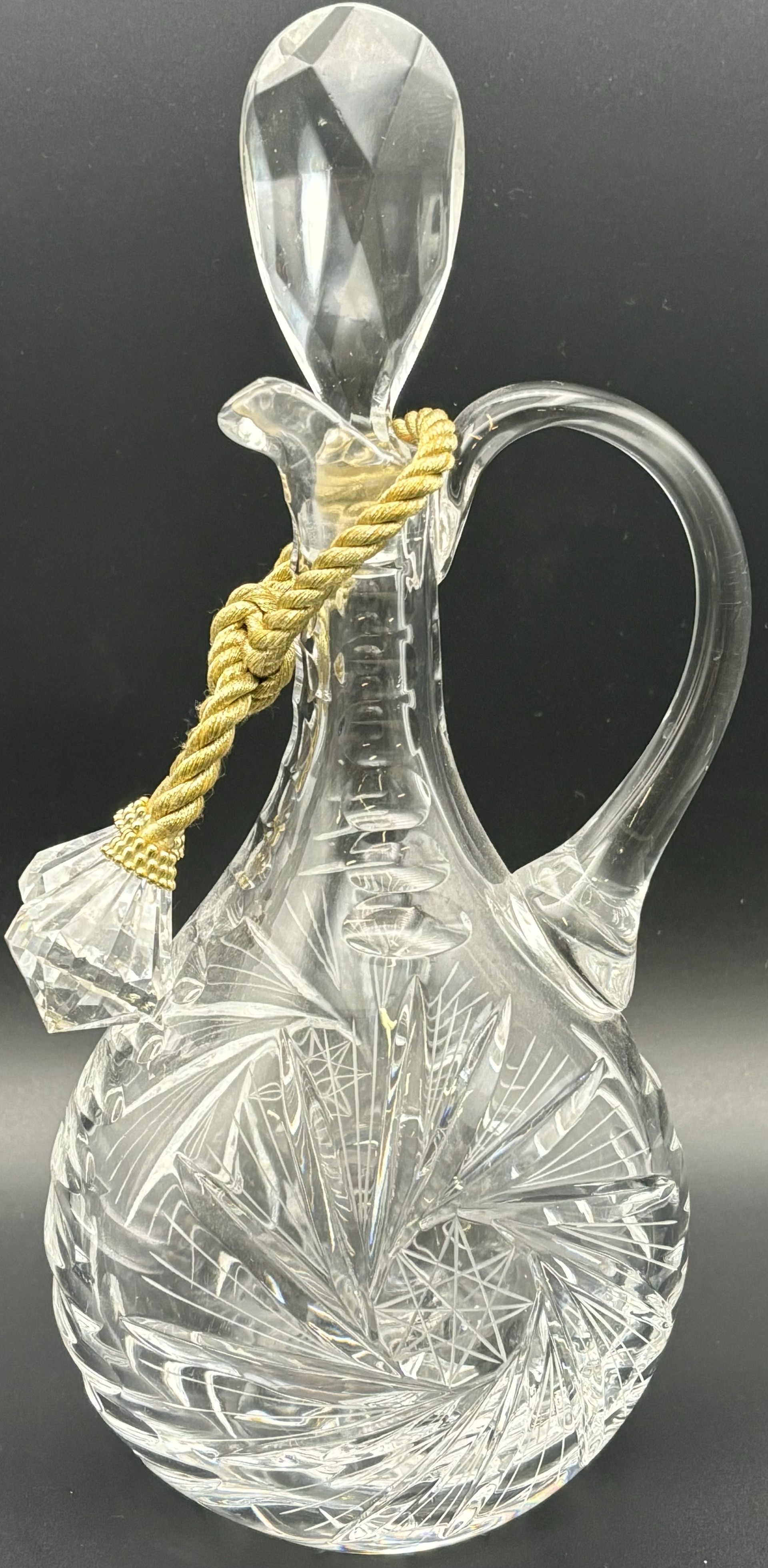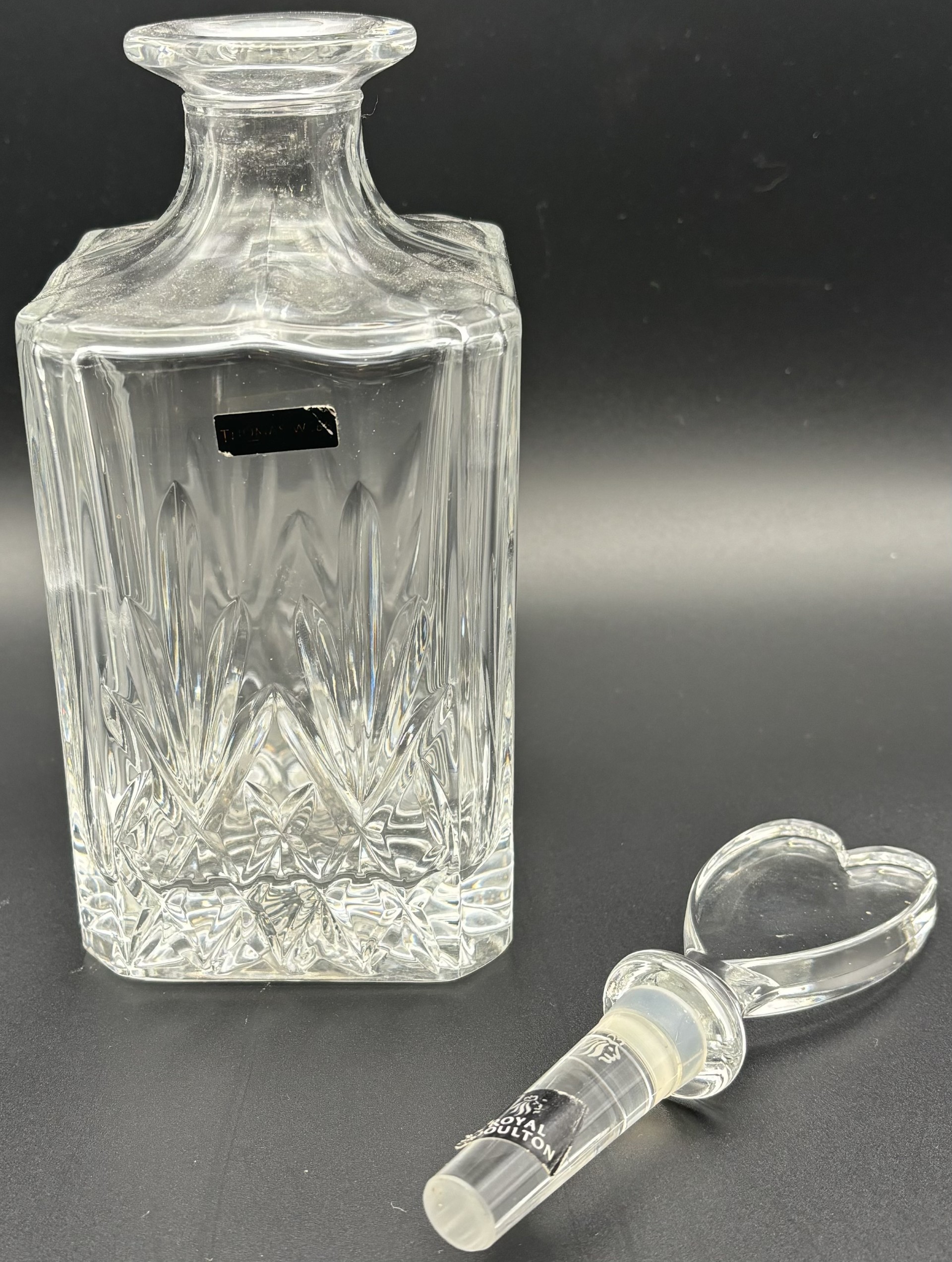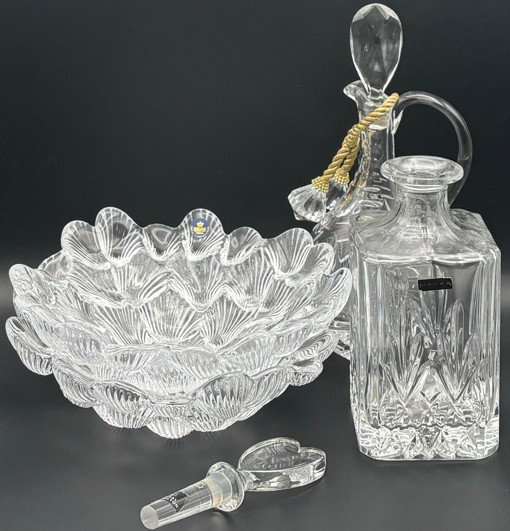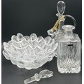 Pair of Royal Copenhagen crystal bowls, crystal wine ewer & Thomas Ebb crystal spirit decanter, with mismatch Royal Doulton stopper.