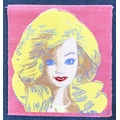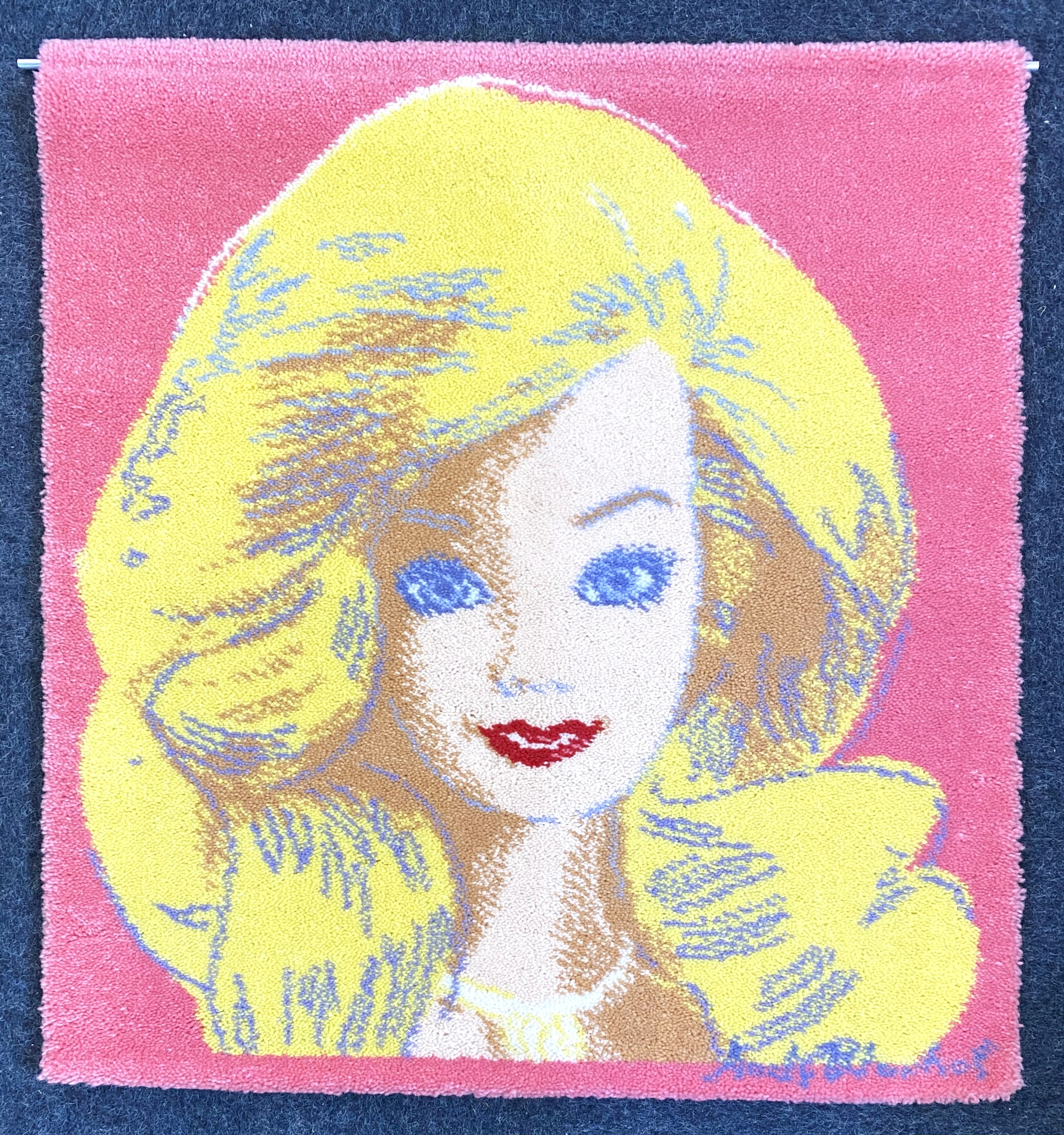 An Andy Warhol 'Barbie 1985' limited edition art rug published by Museum Masters abd approved and endorsed by the Andy Warhol Foundation, number 895 / 1000, 80cm by 85cm, with Certificate of Authenticity and box