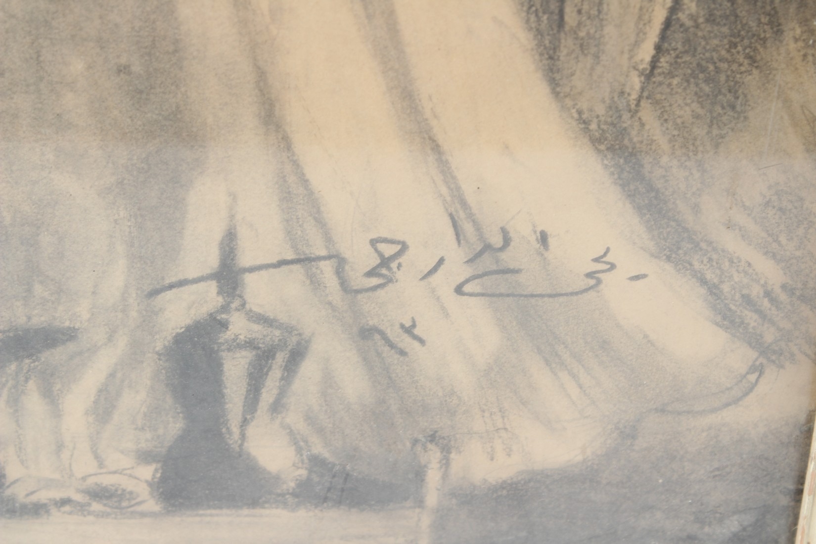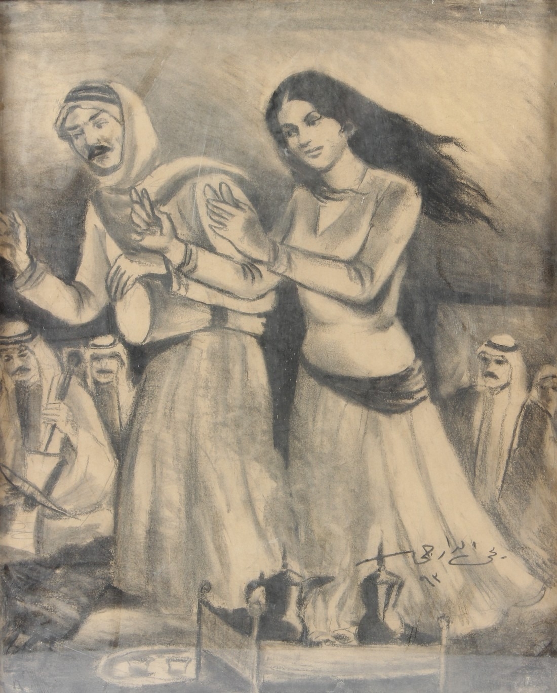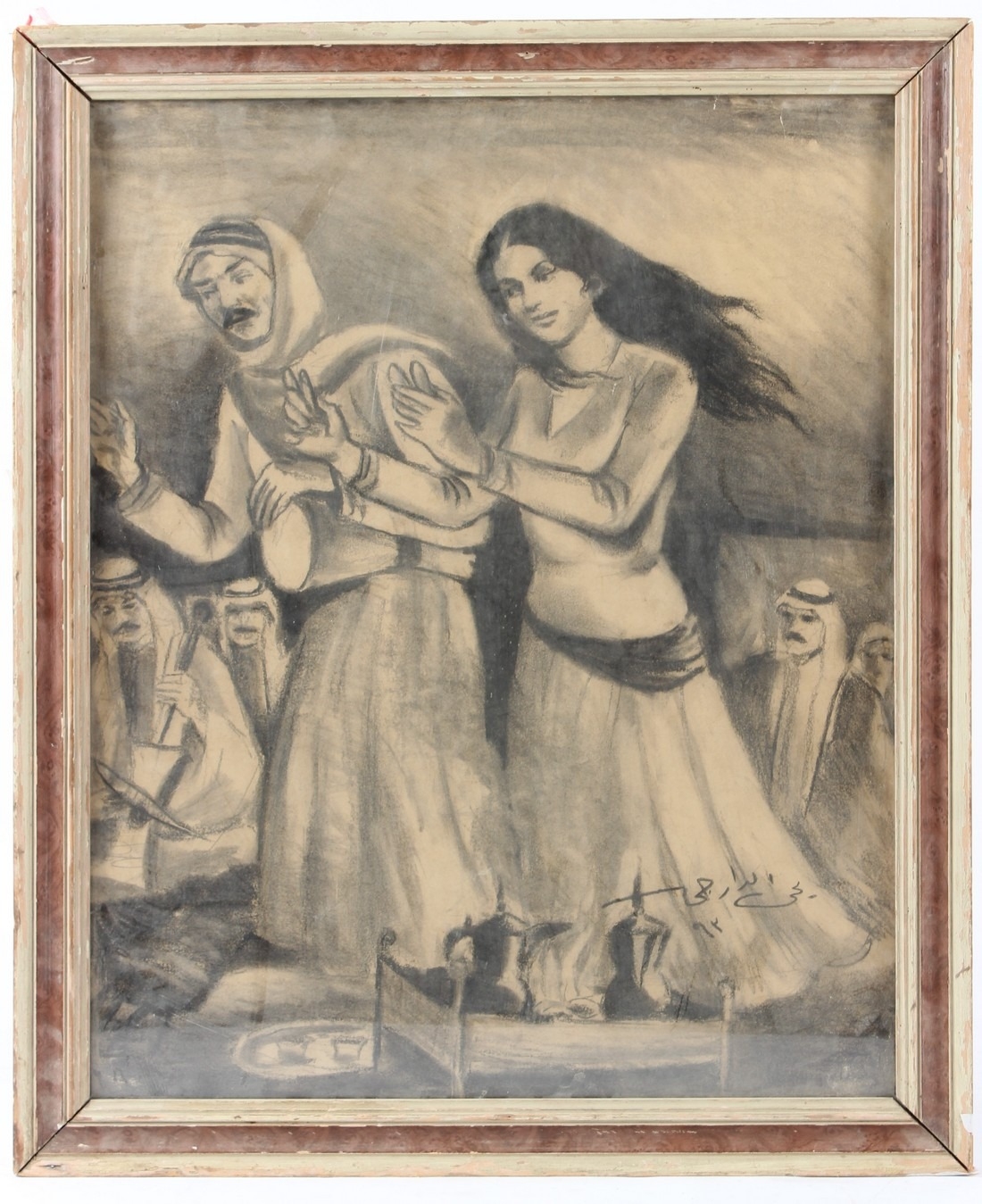 YAHYA ALDARAJI (IRAQ 20TH CENTURY) Ceremonial dancer and drummer charcoal on paper signed 51 x 41cm