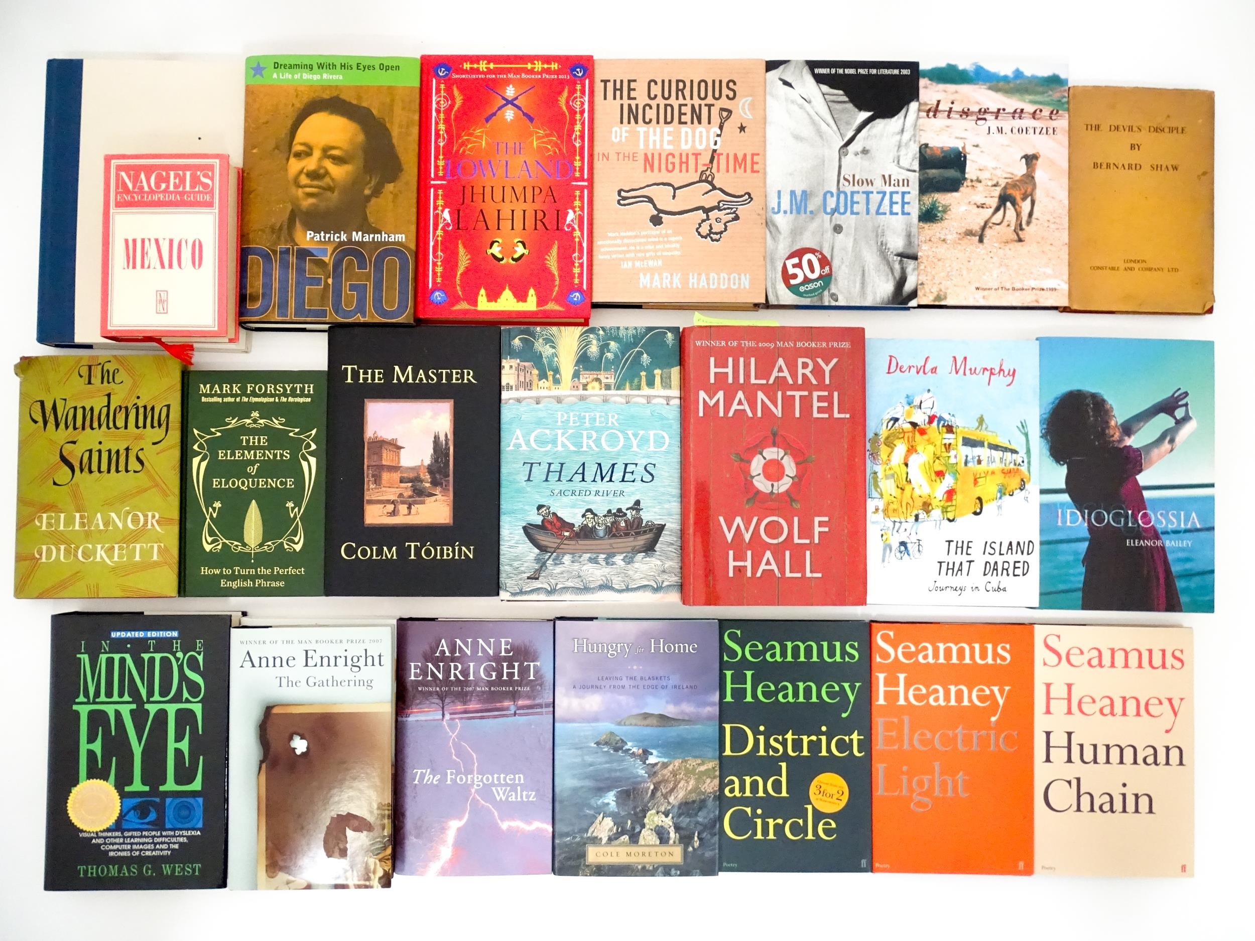 Books: A quantity of assorted hardback books to include Climate Justice by Mary Robinson, Idioglossia by Eleanor Bailey, The Island that Dared Journeys in Cuba by Dervla Murphy, Wolf Hall by Hilary Mantel, The Master by Colm Toibin, The Forgotten Waltz by Anne Enright, Thames Sacred River by Peter Ackroyd, In the Mind's Eye by Thomas G. West, The Gathering by Anne Enright, Hungry for Home by Cole Moreton, Disgrace by J. M. Coetzee, Slow Man by J. M. Coetzee, The Curious Incident of the Dog in the Night Time by Mark Haddon, The Lowland by Jhumpa Lahiri, District and Circle, Electric Light, and Human Chain by Seamus Heaney, Dreaming With His Eyes Open : A Life Of Diego Rivera by Patrick Marnham, etc.