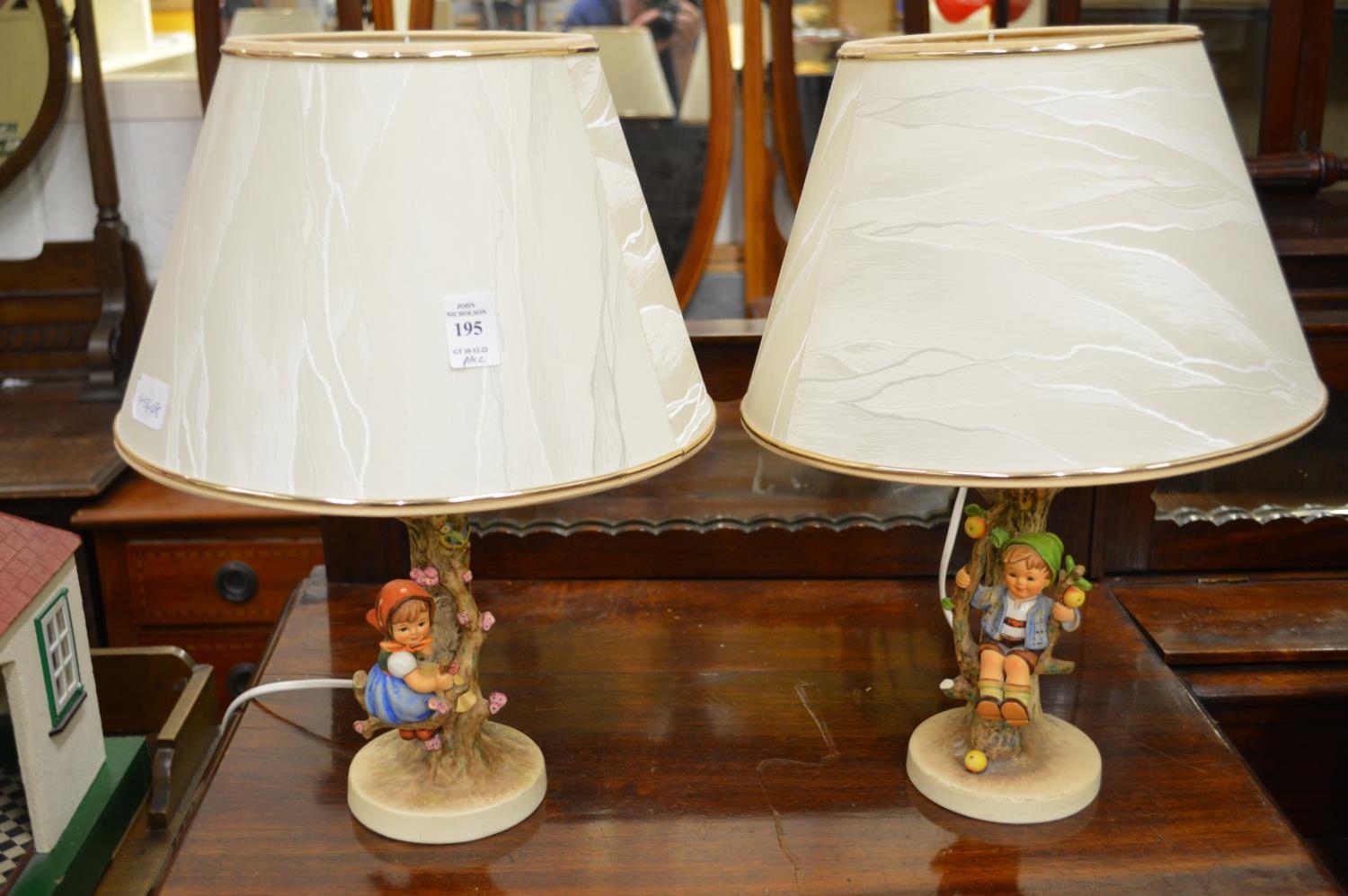 A pair of Goebel figural lamps (minor losses).