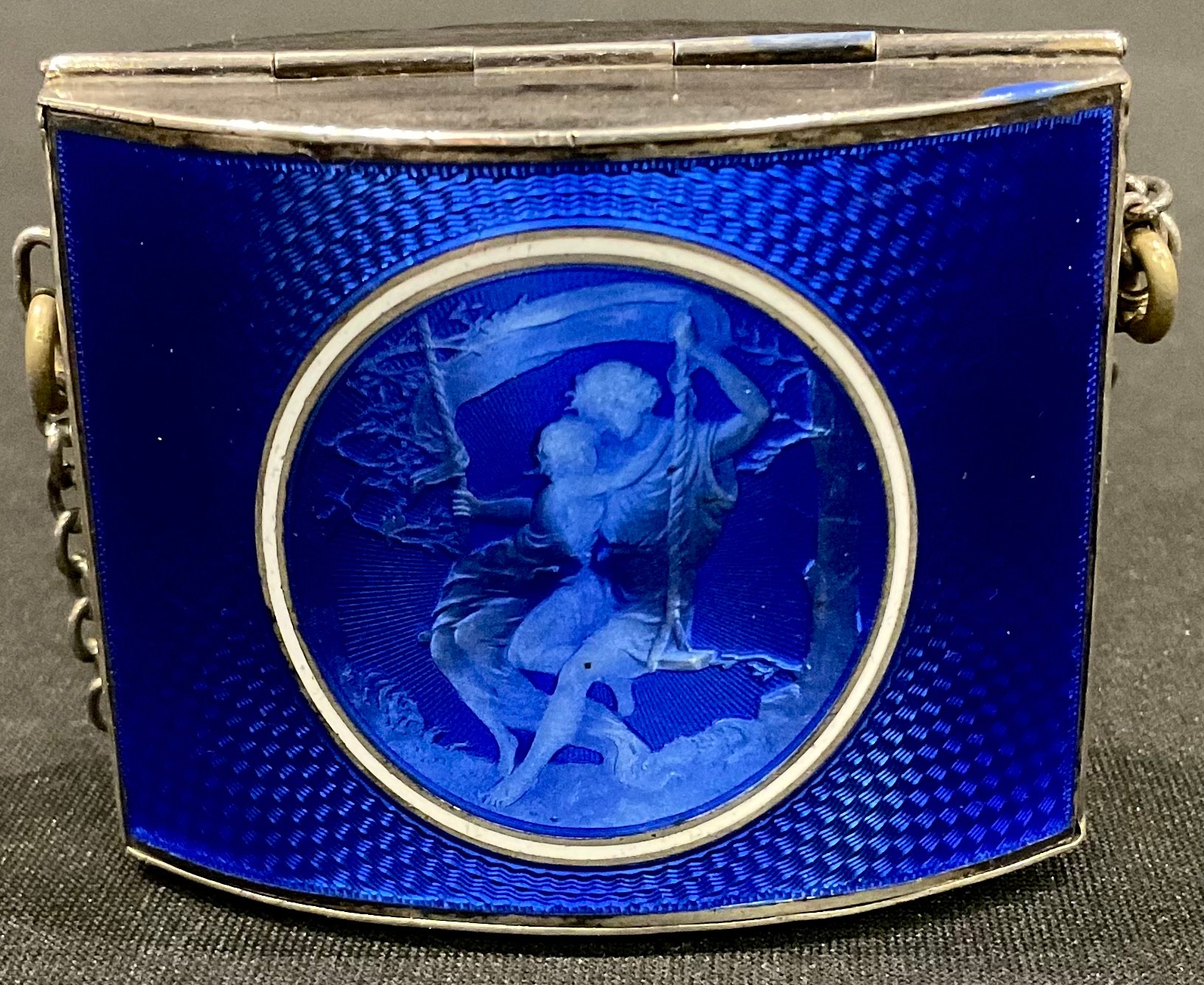 A French silver and guilloche enamel vanity case, unmarked