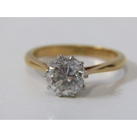 18CT YELLOW GOLD DIAMOND SOLITAIRE RING, principal round brilliant cut diamond measuring approx. 0.80ct, in 8 claw setting, bright diamond of good colour & clarity, size I/J