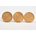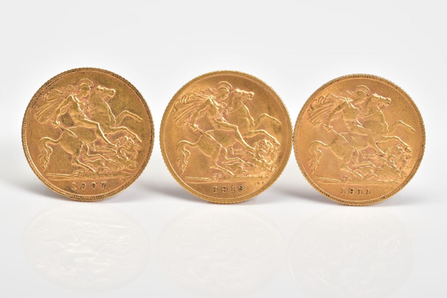 THREE HALF SOVEREIGNS, to include two George V and one Edward VII half sovereign, dated 1907, 1911 and 1912, diameters 19mm, approximate total weight 12 grams