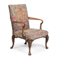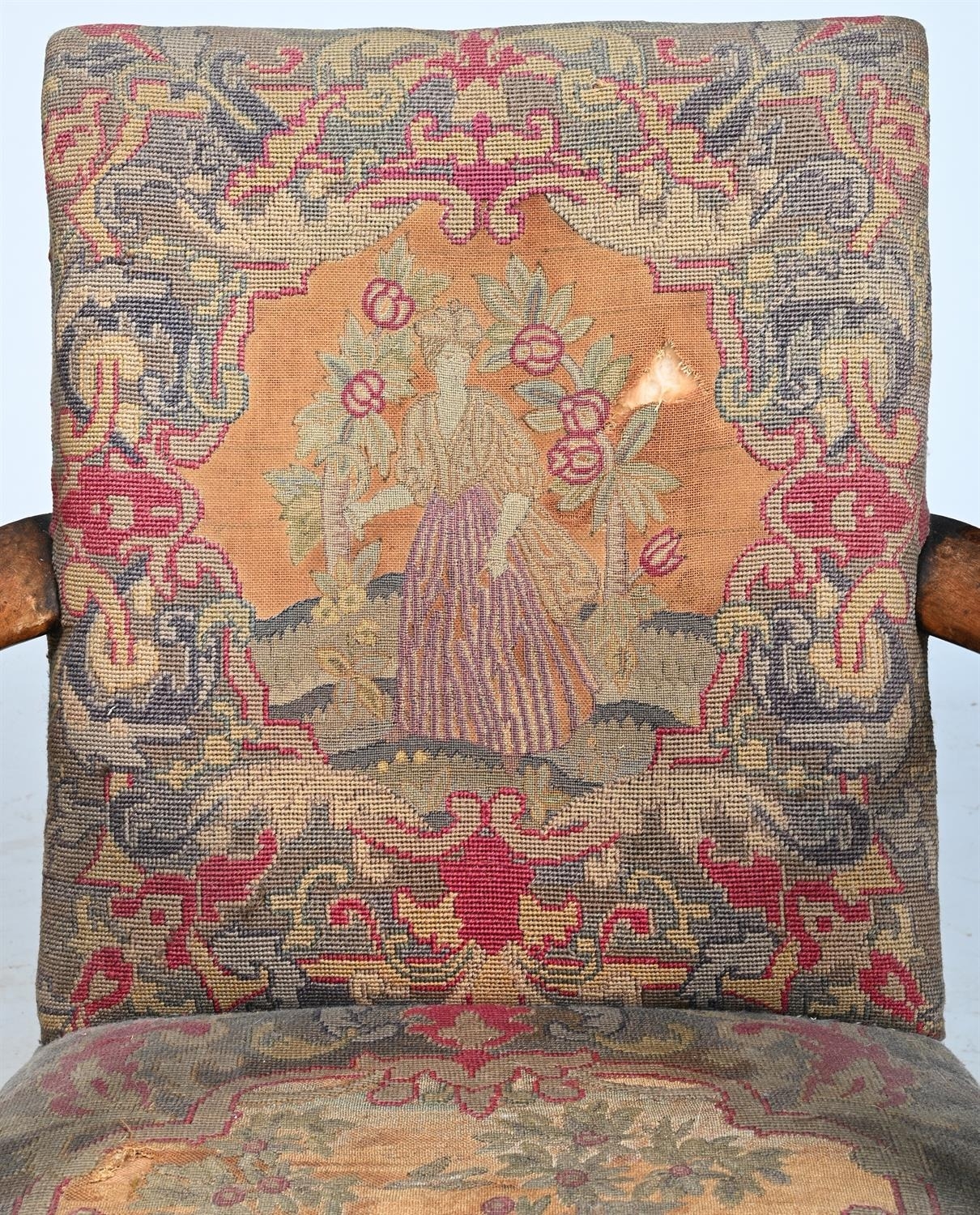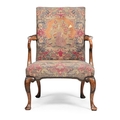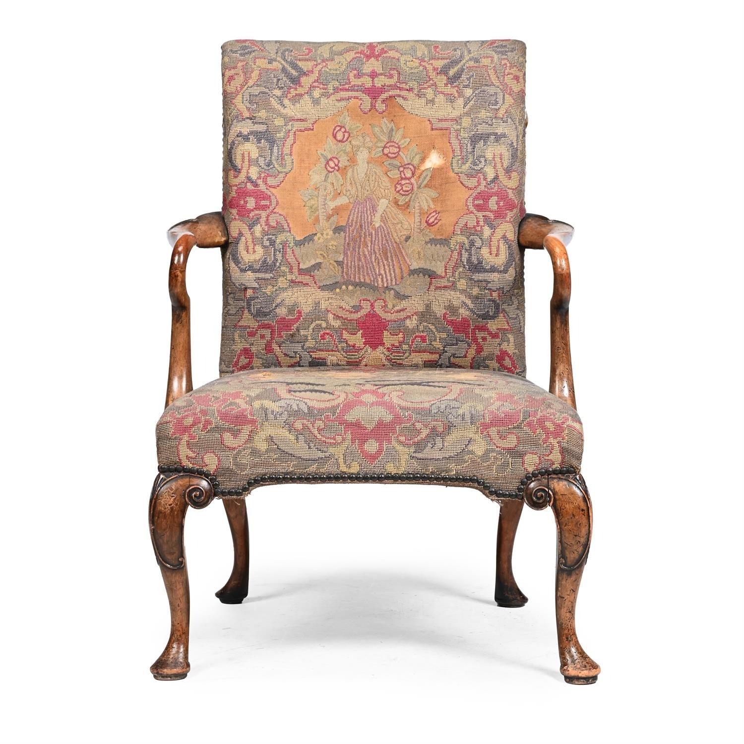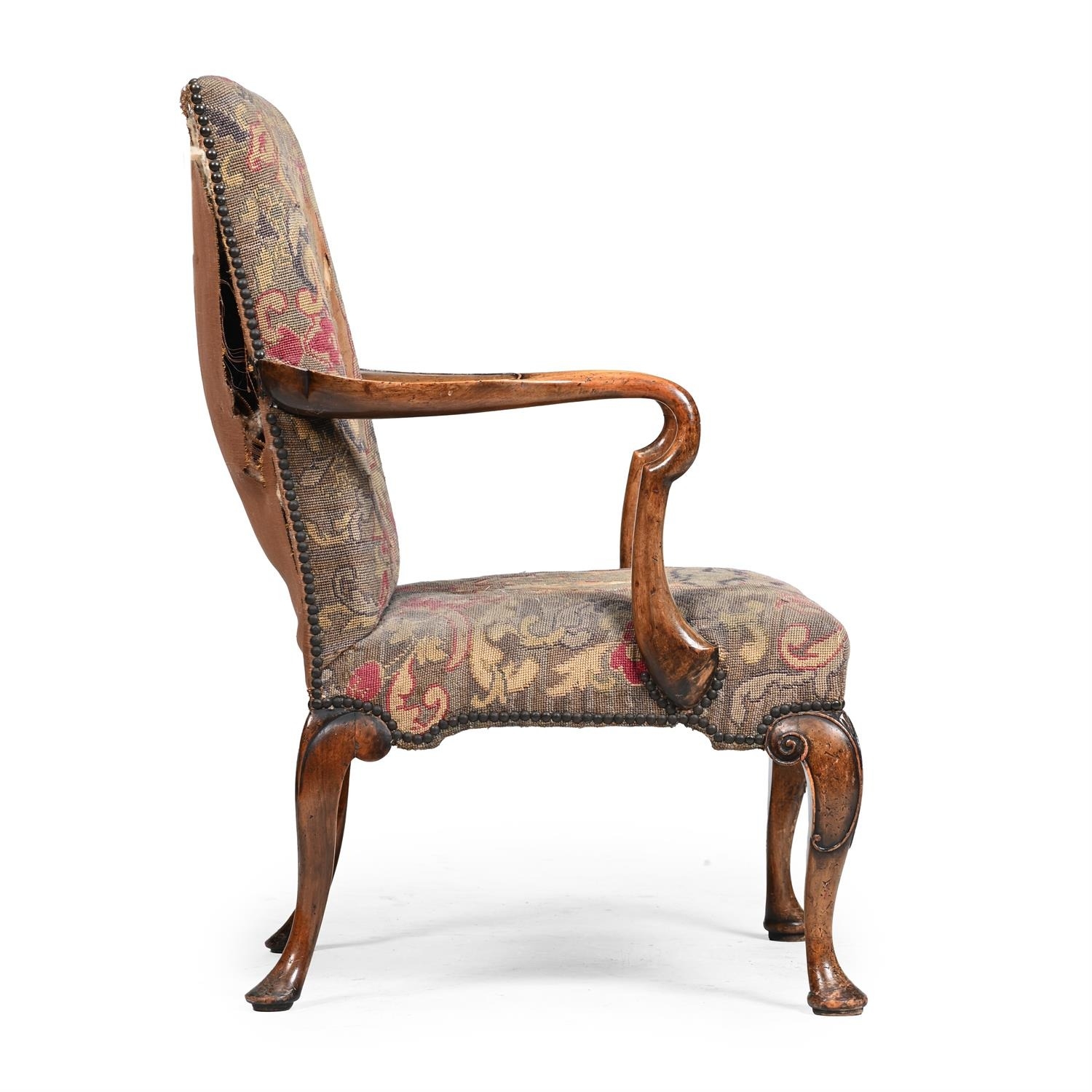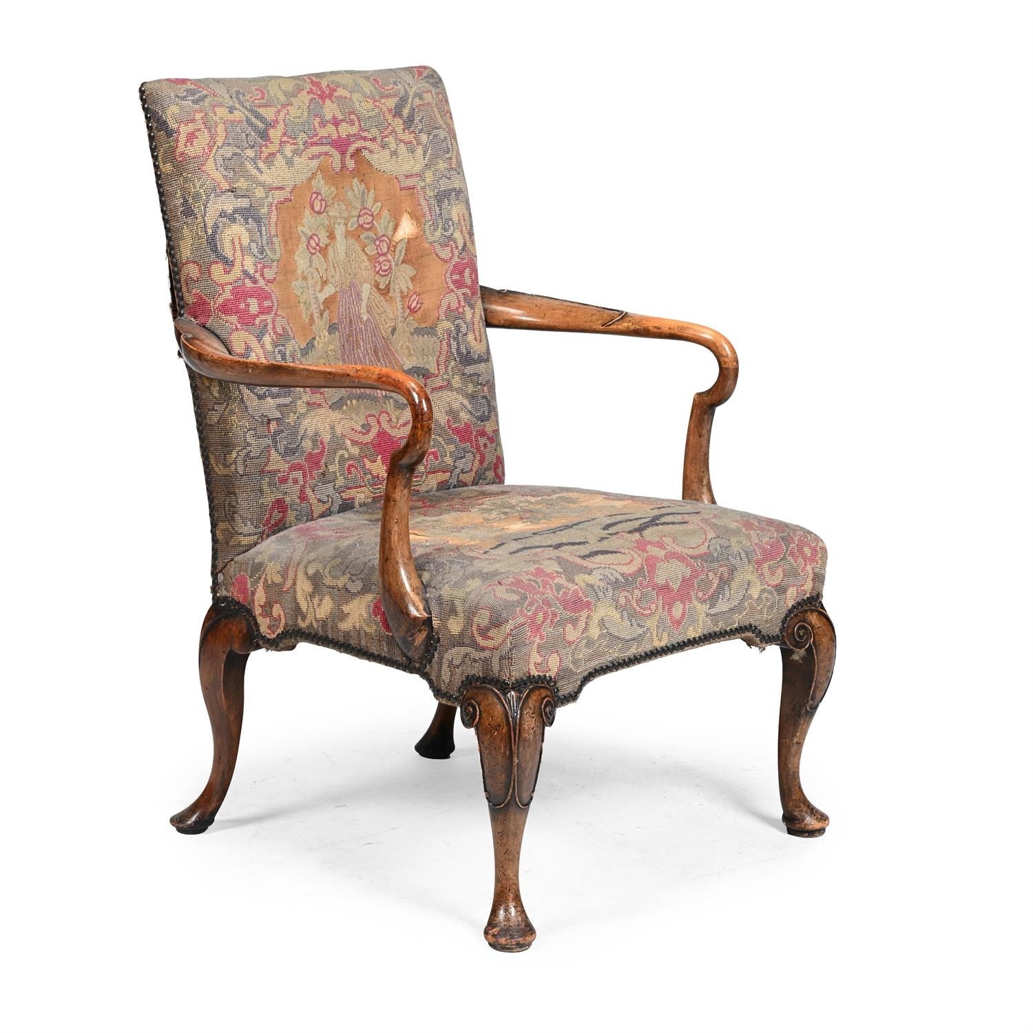 A WALNUT AND NEEDLEWORK UPHOLSTERED ARMCHAIRIN GEORGE II STYLE, 20TH CENTURY98cm high, 68.5cm wide, 65cm deep (seat height 44cm)
