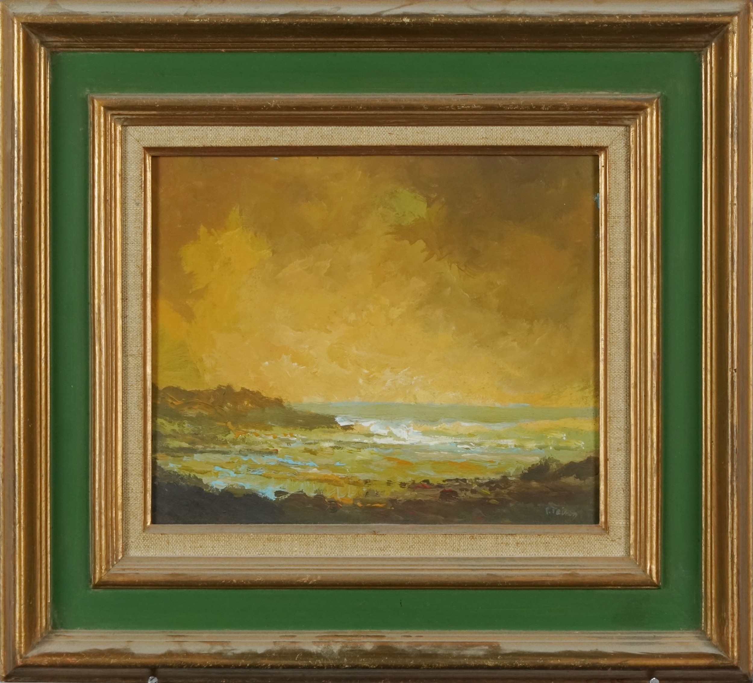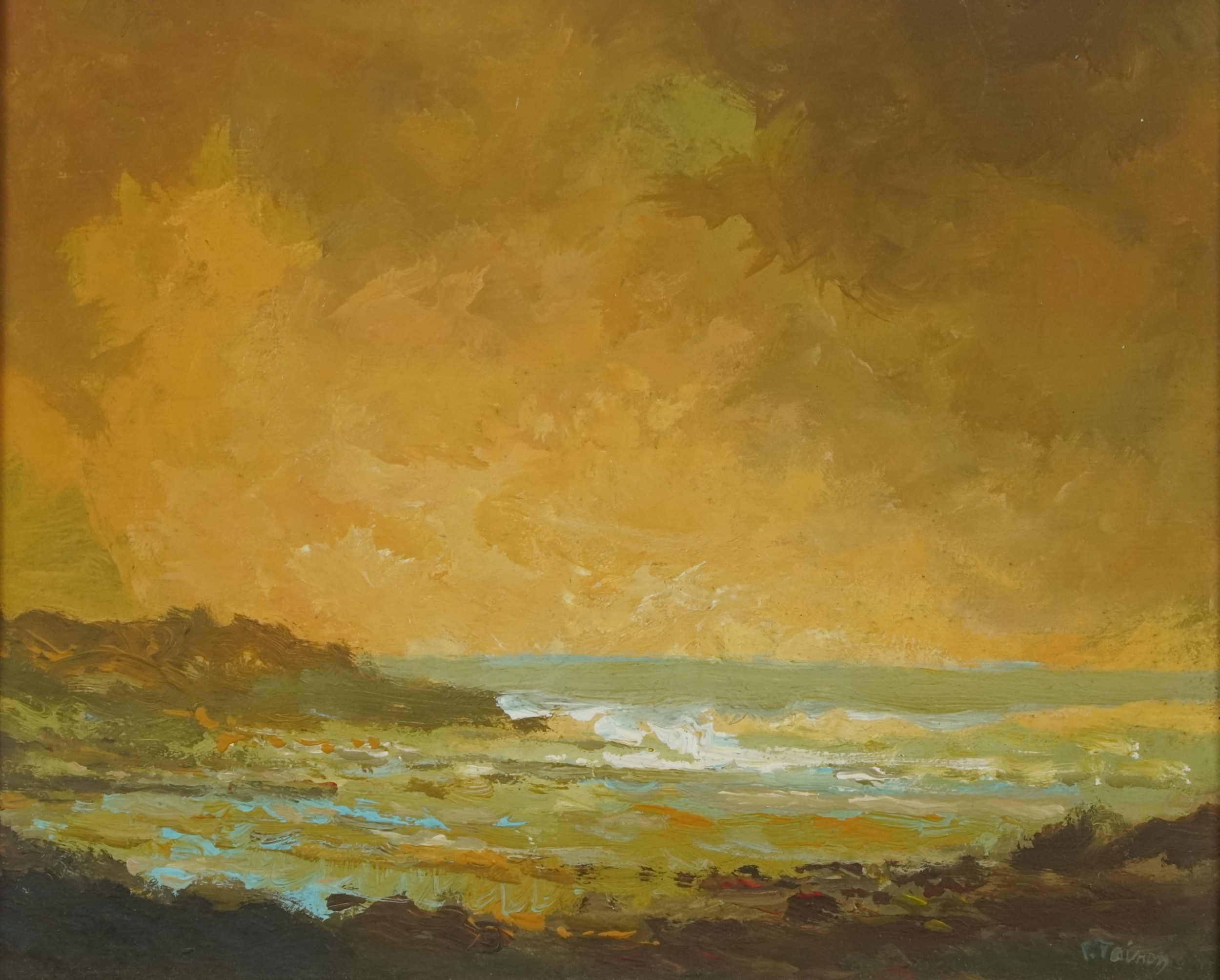 P. Tavroy - La Cinque, 20th century French school oil on board, indistinctly signed, framed, 20cm x 25cm.