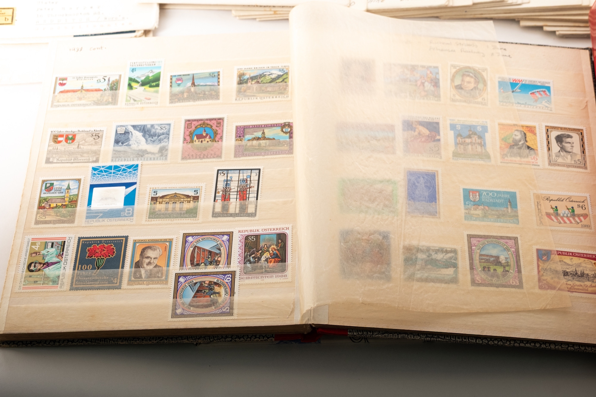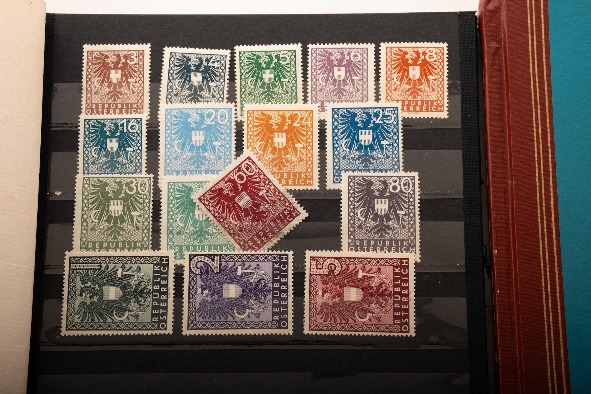 Austria. A collection of Austrian stamps in One Country binder from 1945 Overprints (the status of these overprints is not guaranteed and offered 'as seen'), some better including 1946 Derby set MNH, along with three associated smaller stock books and covers, also a few GB covers.