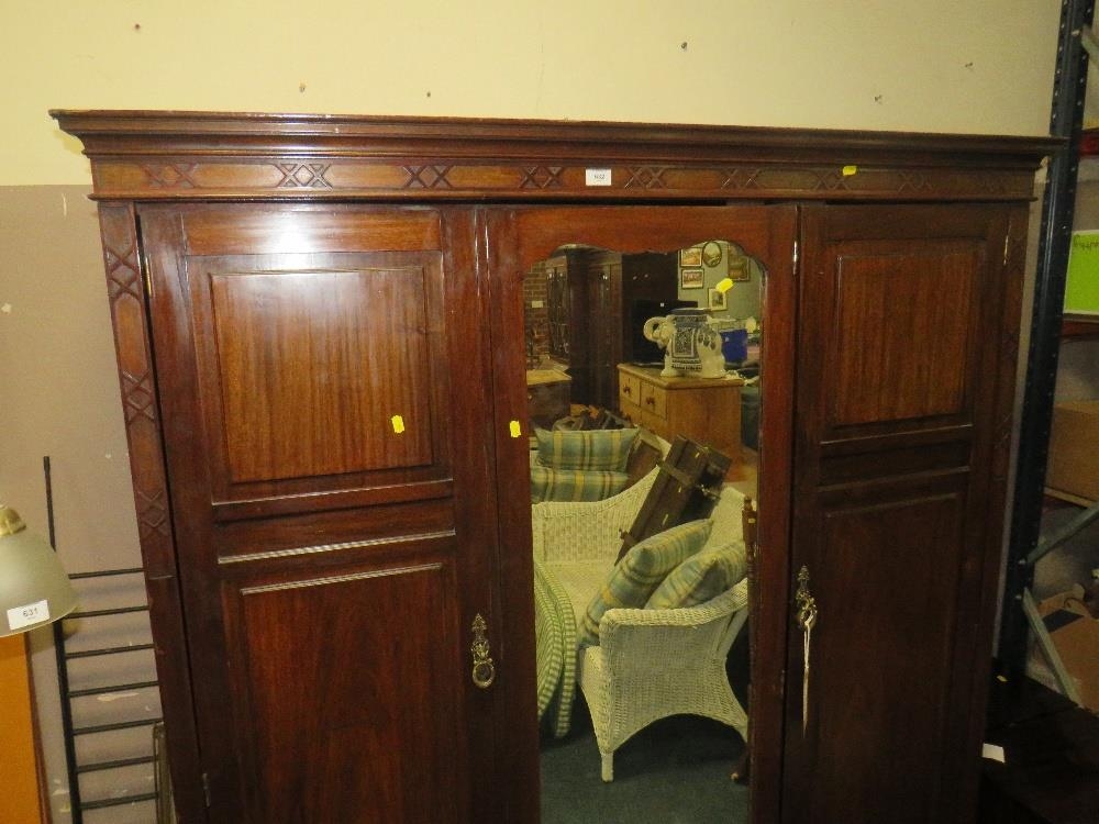 A 1920'S MAHOGANY TRIPLE WARDROBE H-198 W-152 CM