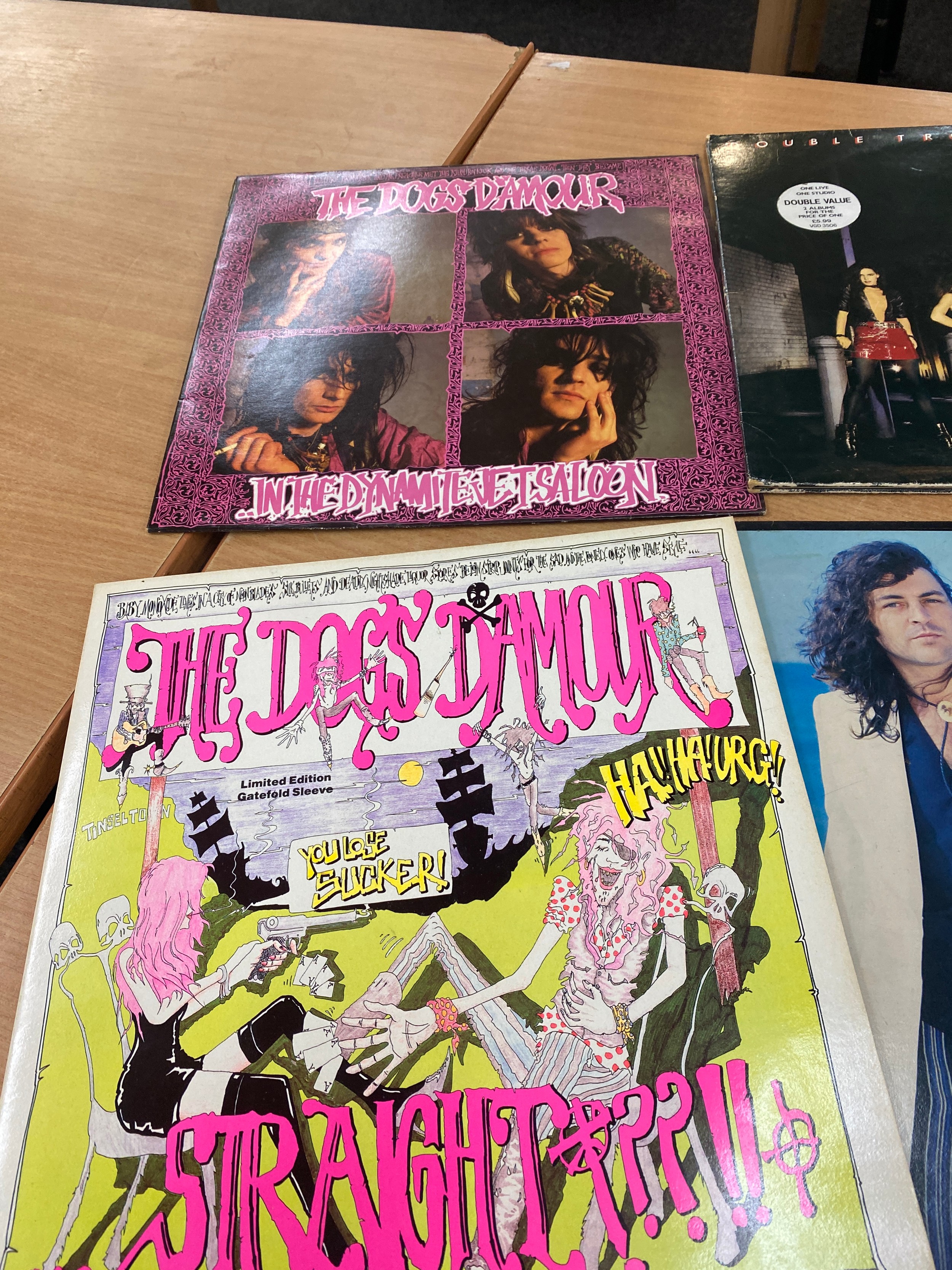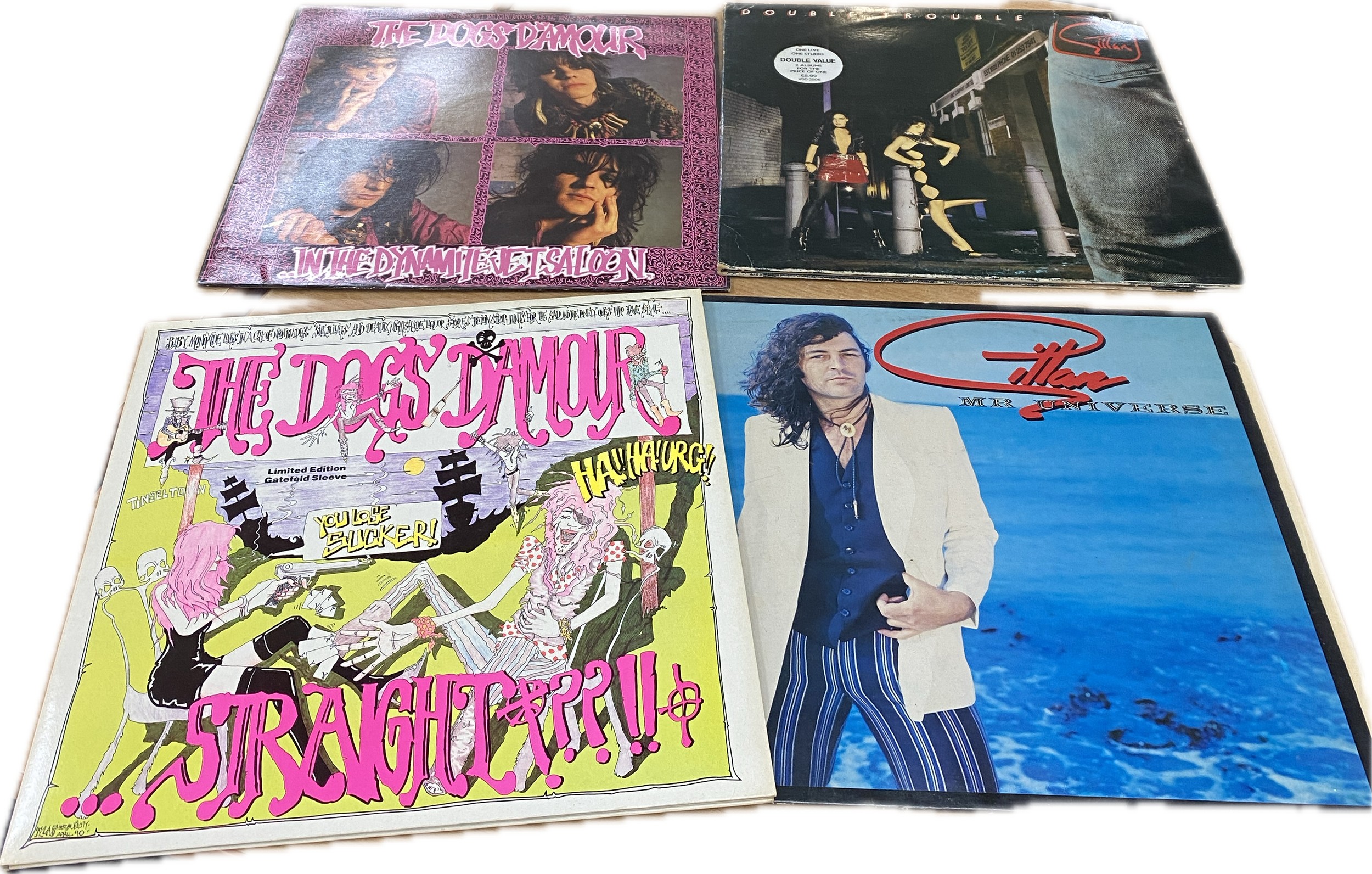 Selection of 4 Rock records includes The dogs Daymour, Double trouble and mr universe etc