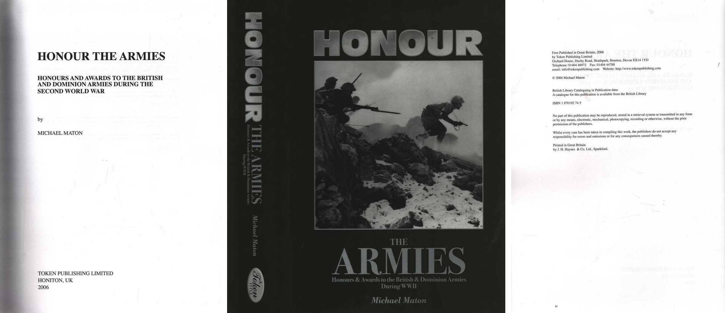 Honour the Armies Honours and Awards to the British and Dominion Ameries During the Second World. Author: Michael Maton. Publisher: Token. Published: 2006.
