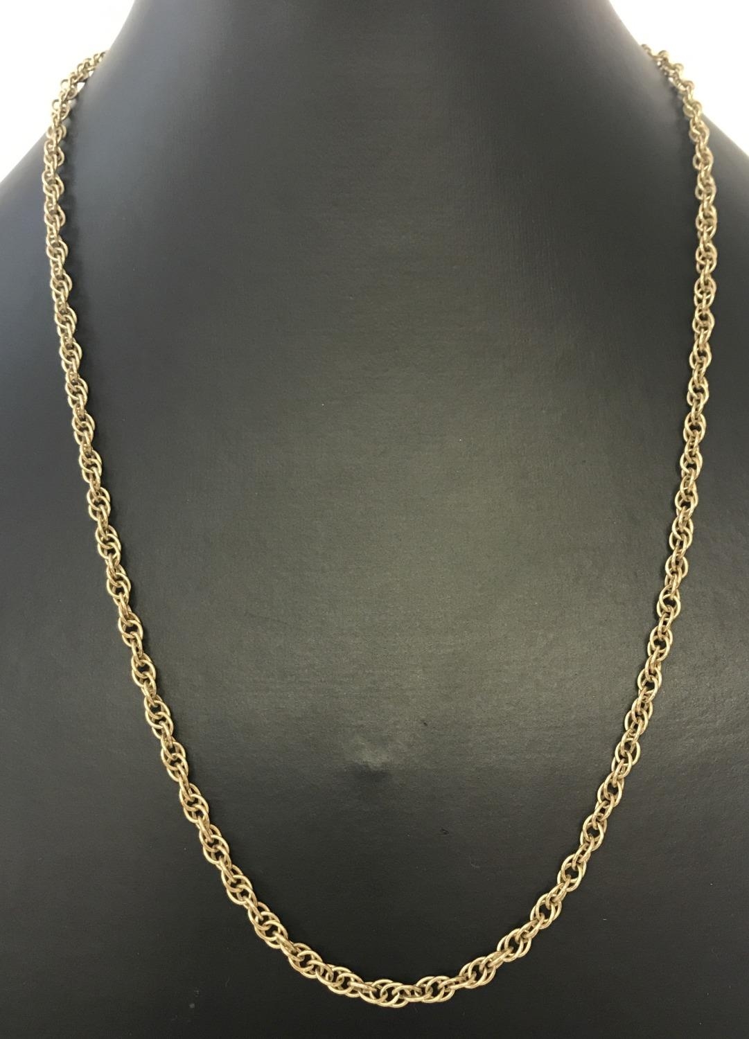 A 9ct gold 20" rope style chain. Total weight approx. 11.2g.