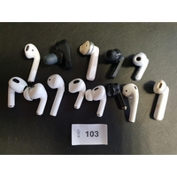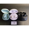 TWO PAIRS OF EARBUDS IN CHARGING CASEScomprising JBL and JVC; together with a single htc earbud in charging case