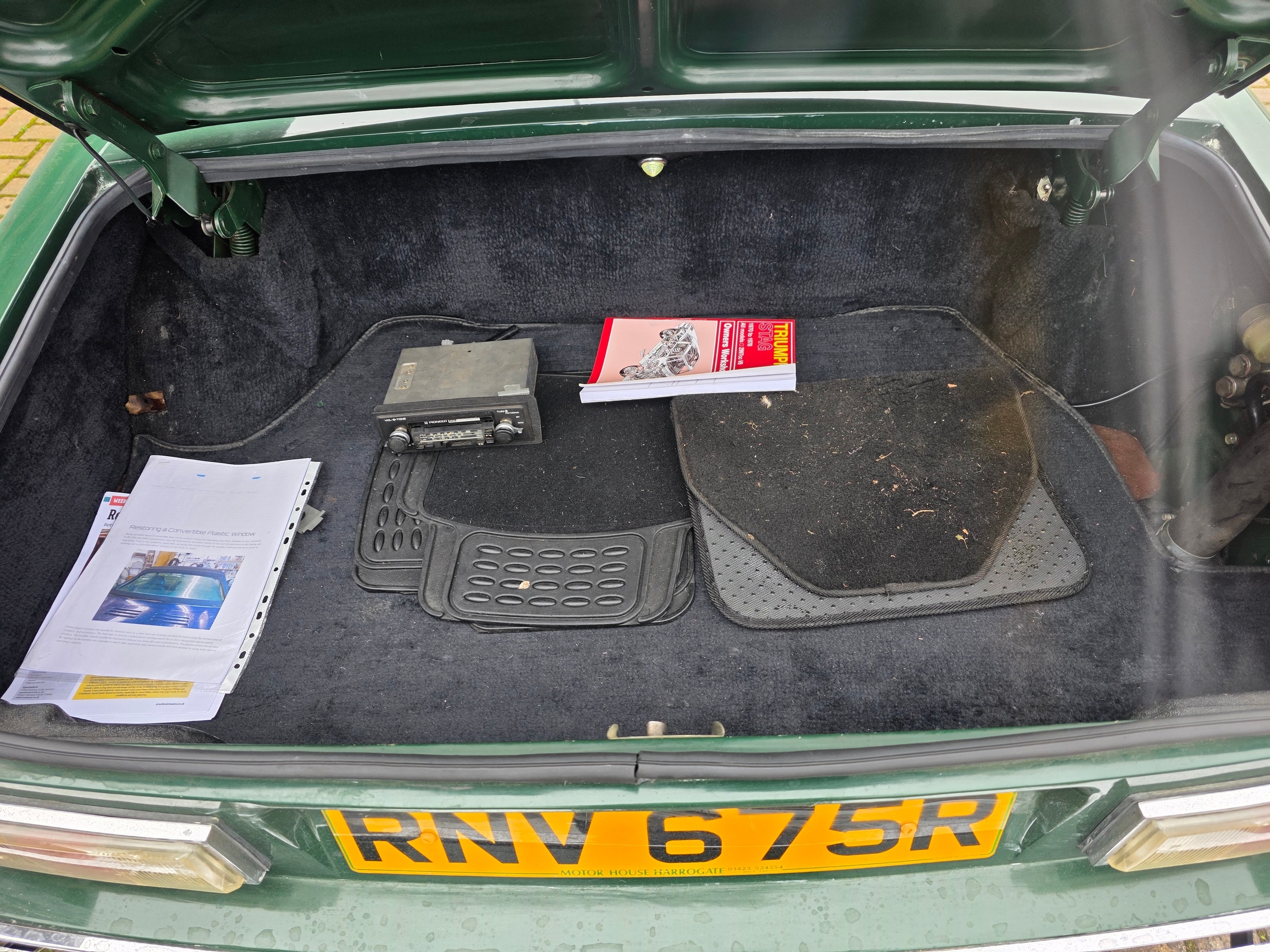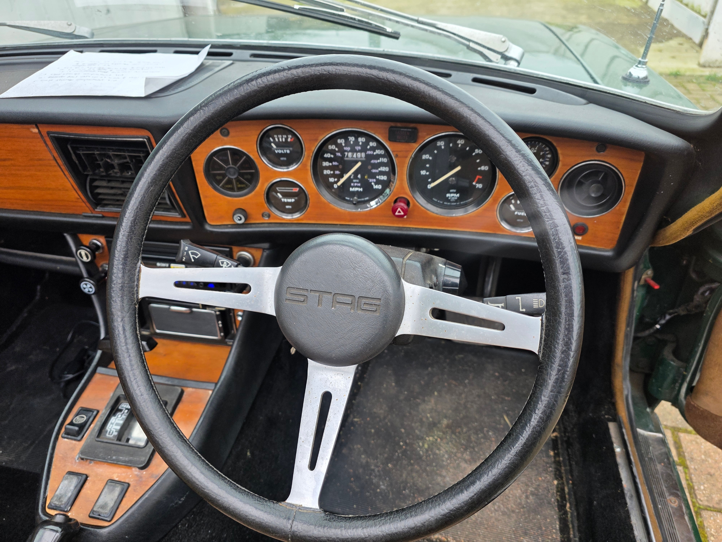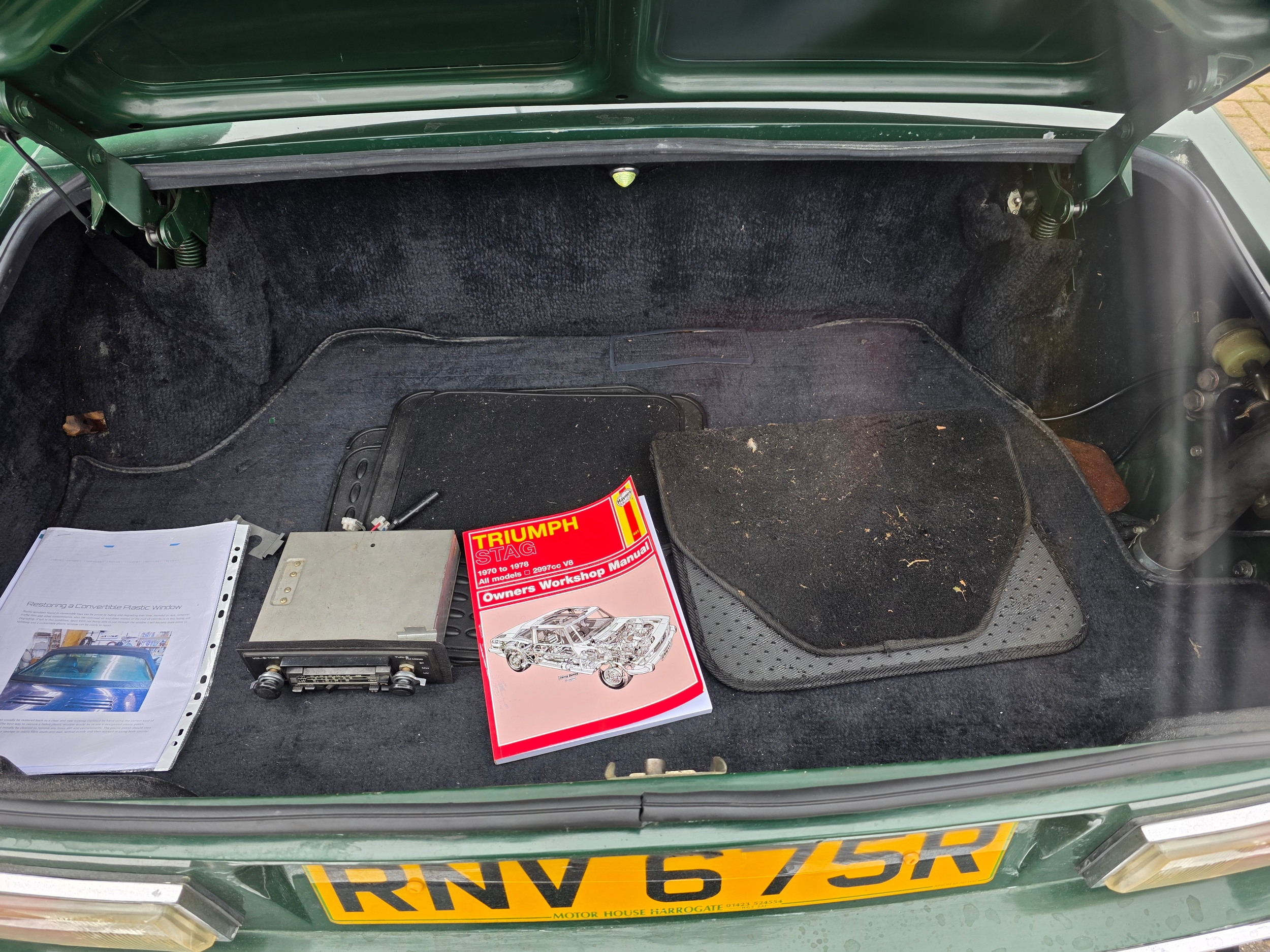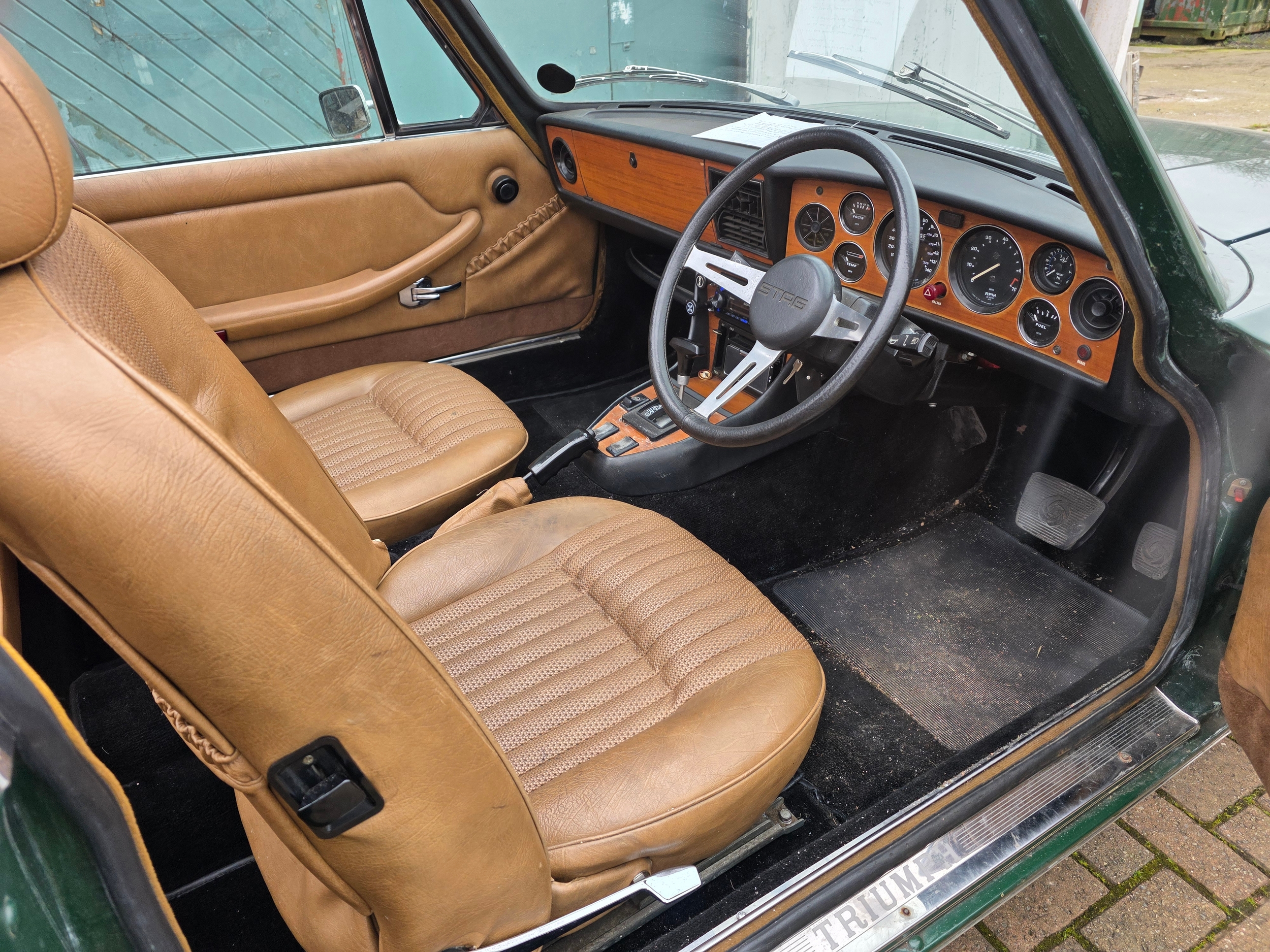 1976 Triumph Stag, 2997cc. Registration number RNV 675R. VIN number LD42110A. Engine number LF042247HEA.
