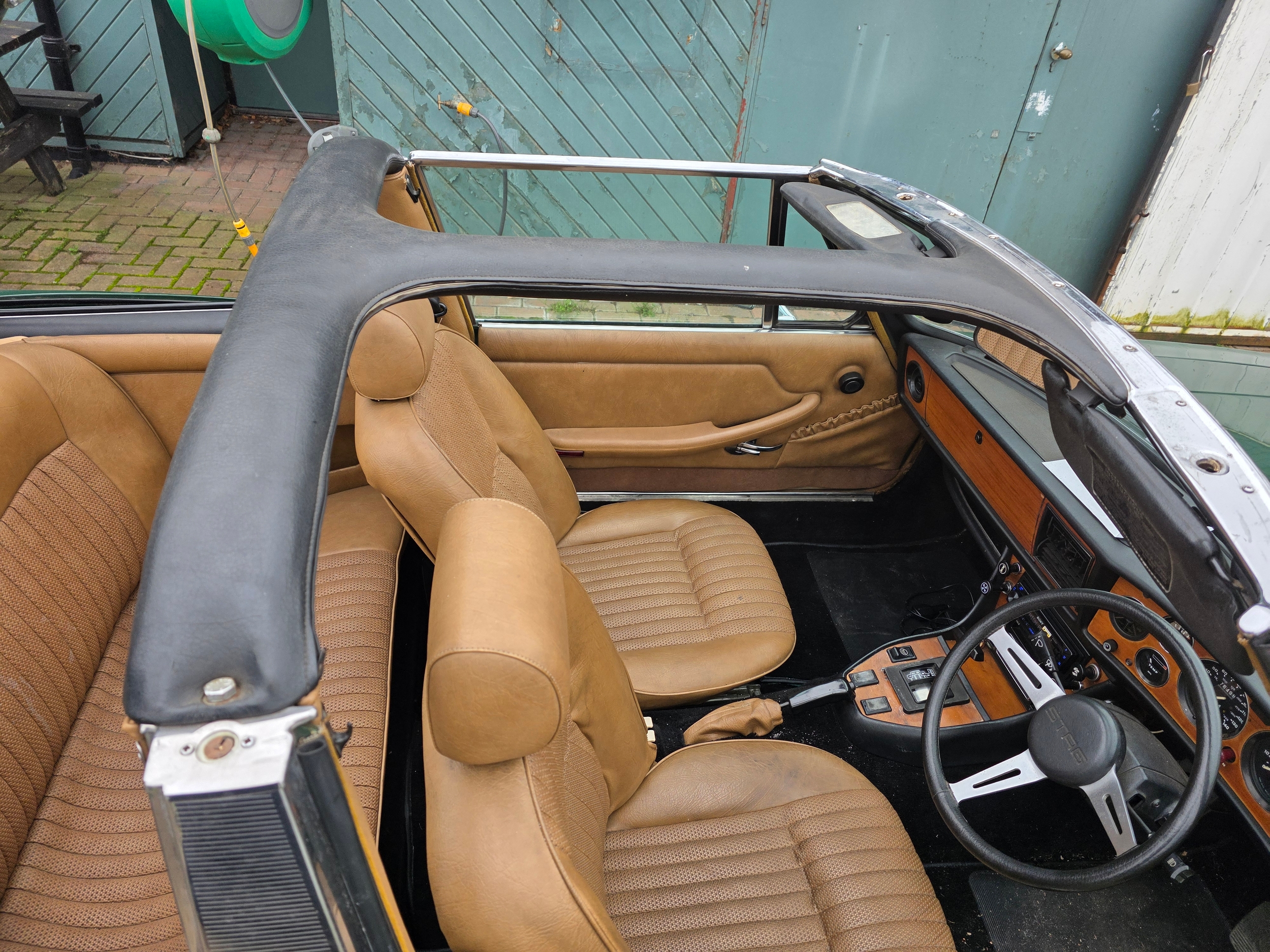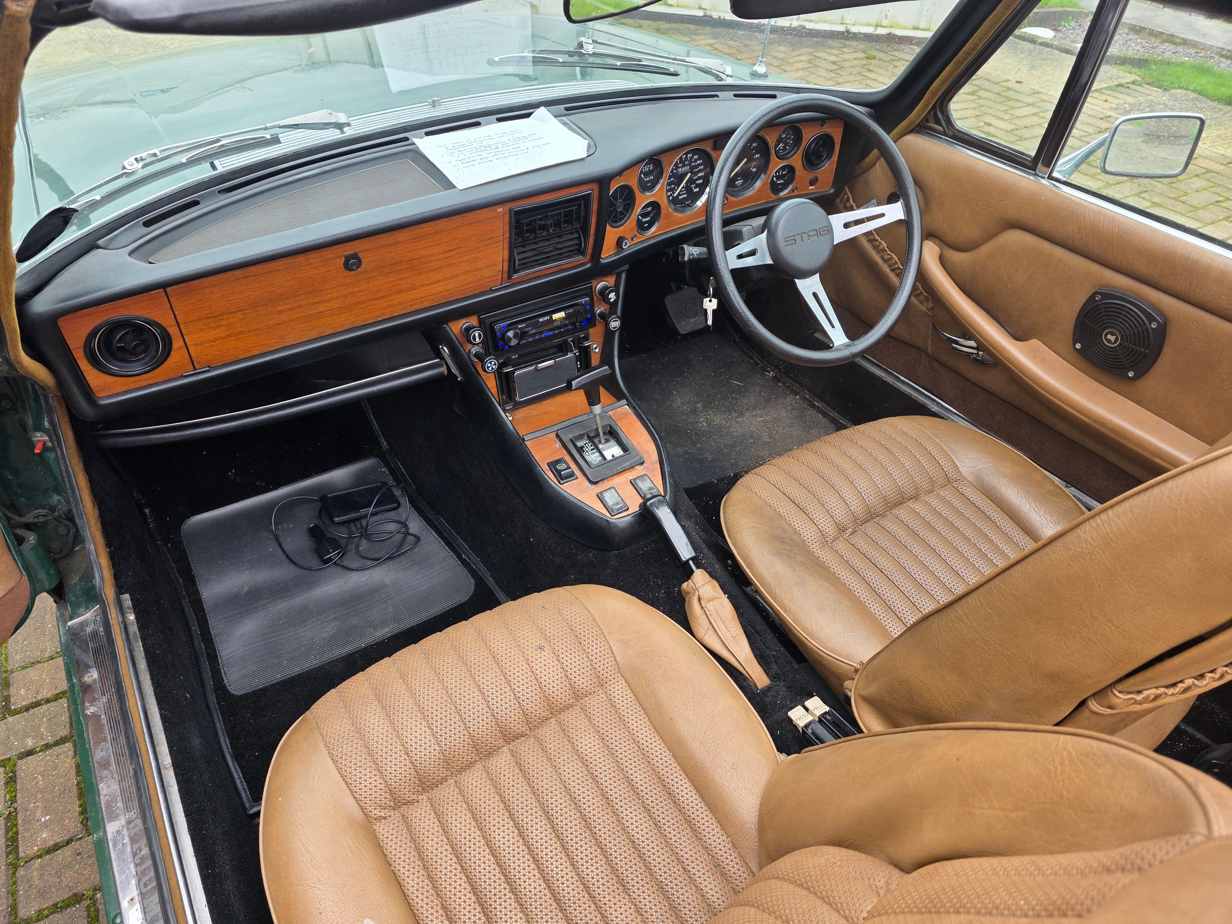 The Stag began life as a Triumph 2000-based styling exercise by Italian Giovanni Michelotti. A 2+2 convertible, the design featured a quad-lamp grille and sculpted front and rear ends, the latter destined to appear on many future Triumphs. By the time production commenced in 1970, the 2000’s six-cylinder engine had been replaced by a 3-litre V8 based on an overhead-camshaft four - later to power the Dolomite range - already being produced by Triumph for SAAB. A padded, ‘T’-shaped roll bar bracing the door pillars and windscreen was one of the Stag’s most distinctive features, and the model could be had in soft-top, hardtop, or soft-with-hardtop forms. Motor Sport described the Stag’s interior as, ‘well appointed, having all the usual instrumentation one would expect in a high performance car.’
