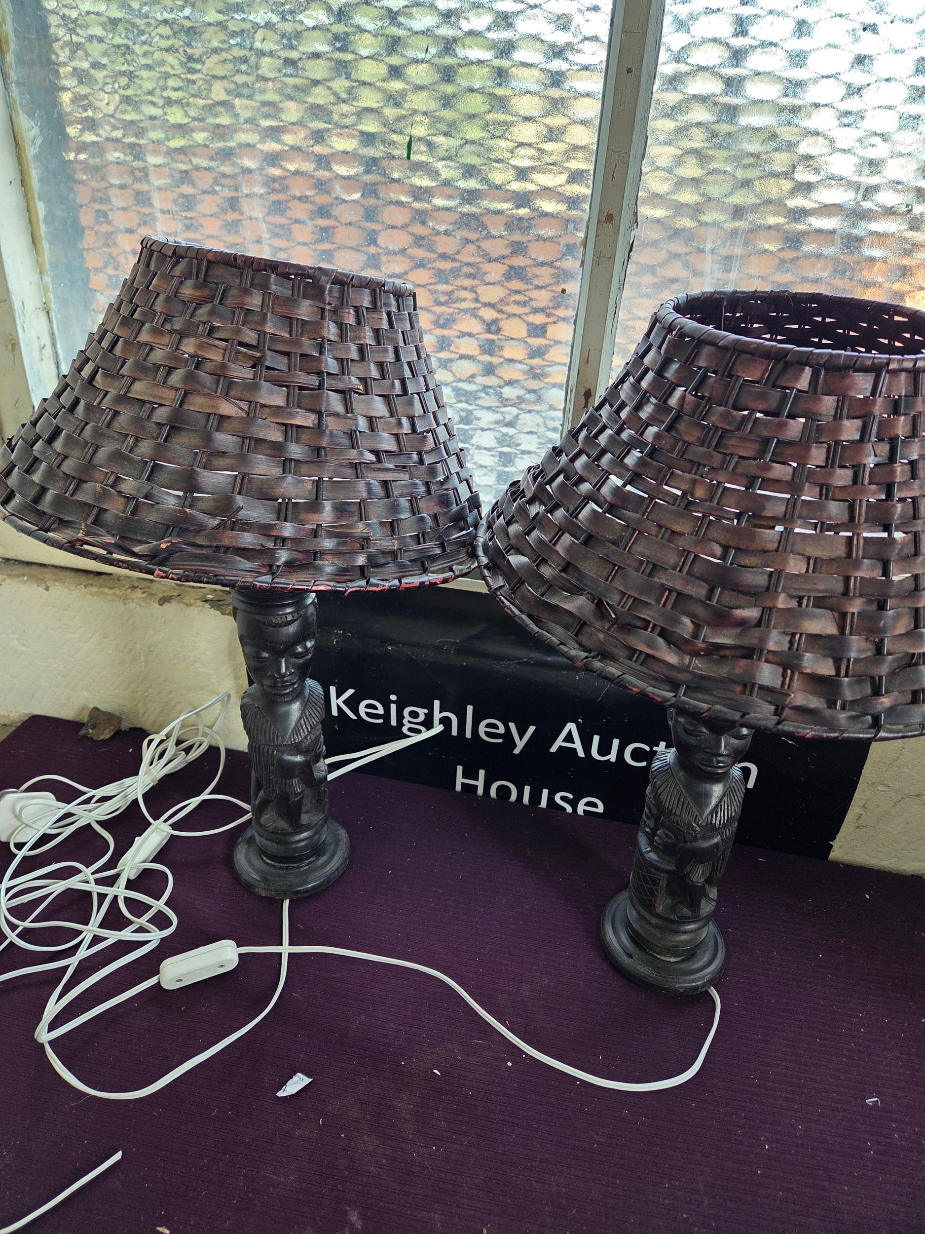 A Pair of Mid-20th Century Hand-Carved African Hardwood Figurative Table Lamps