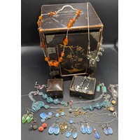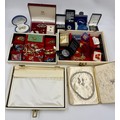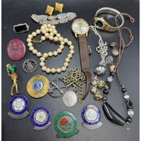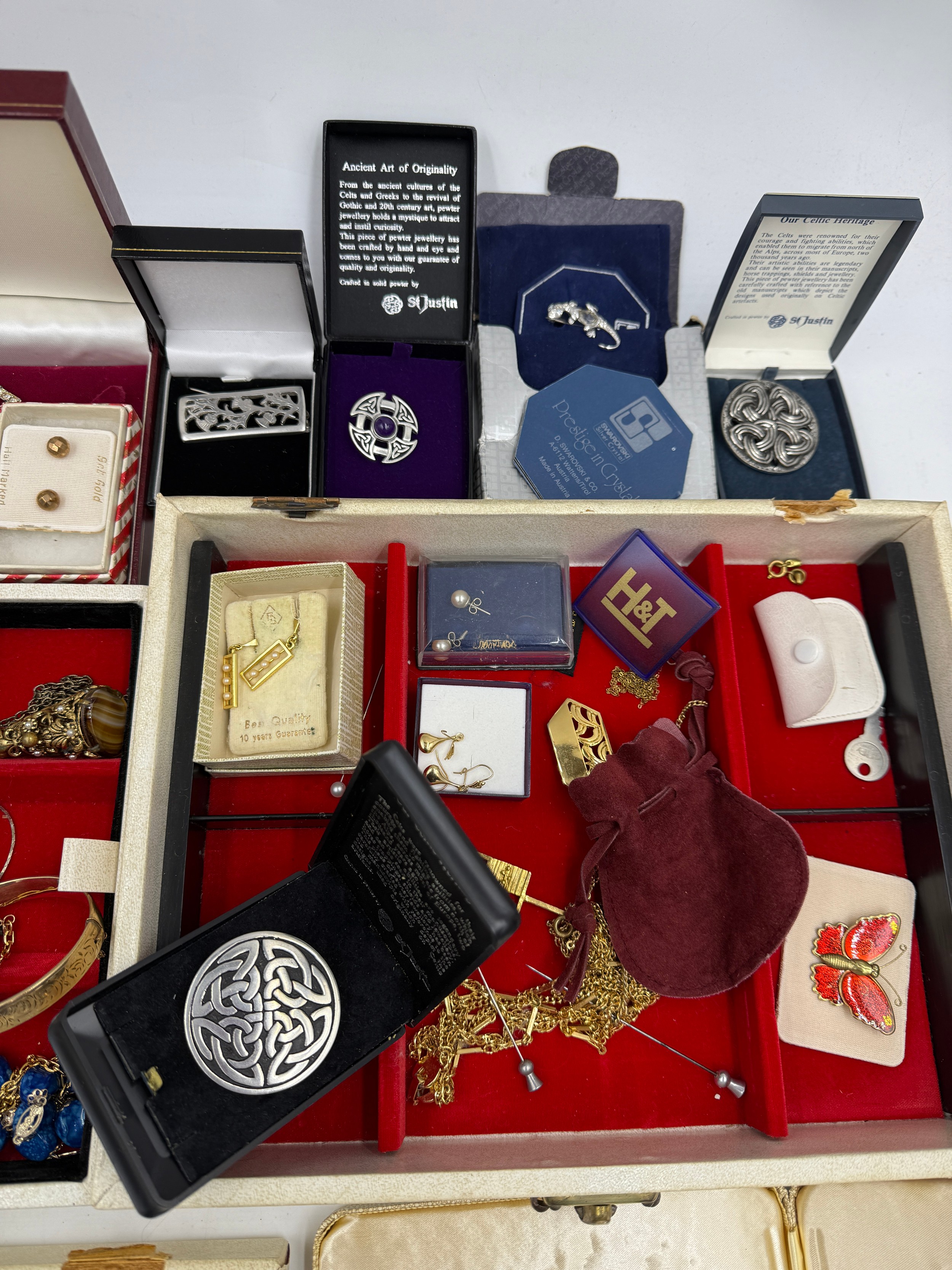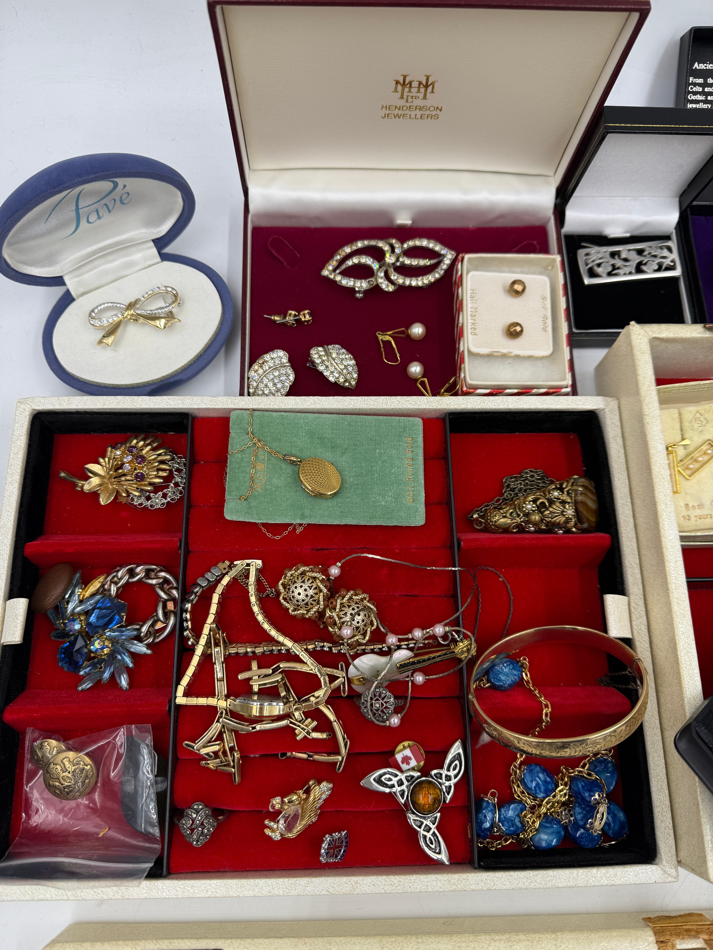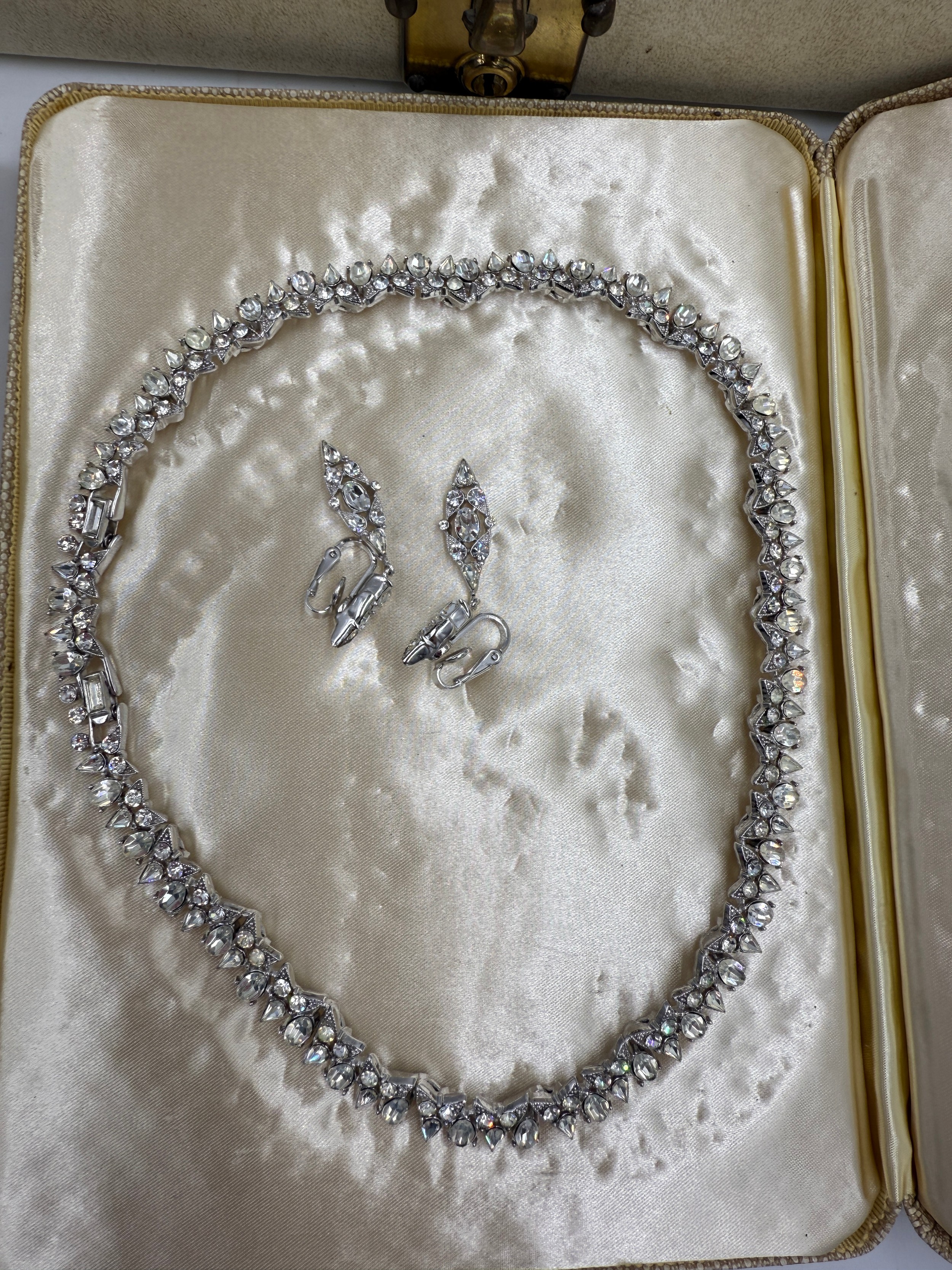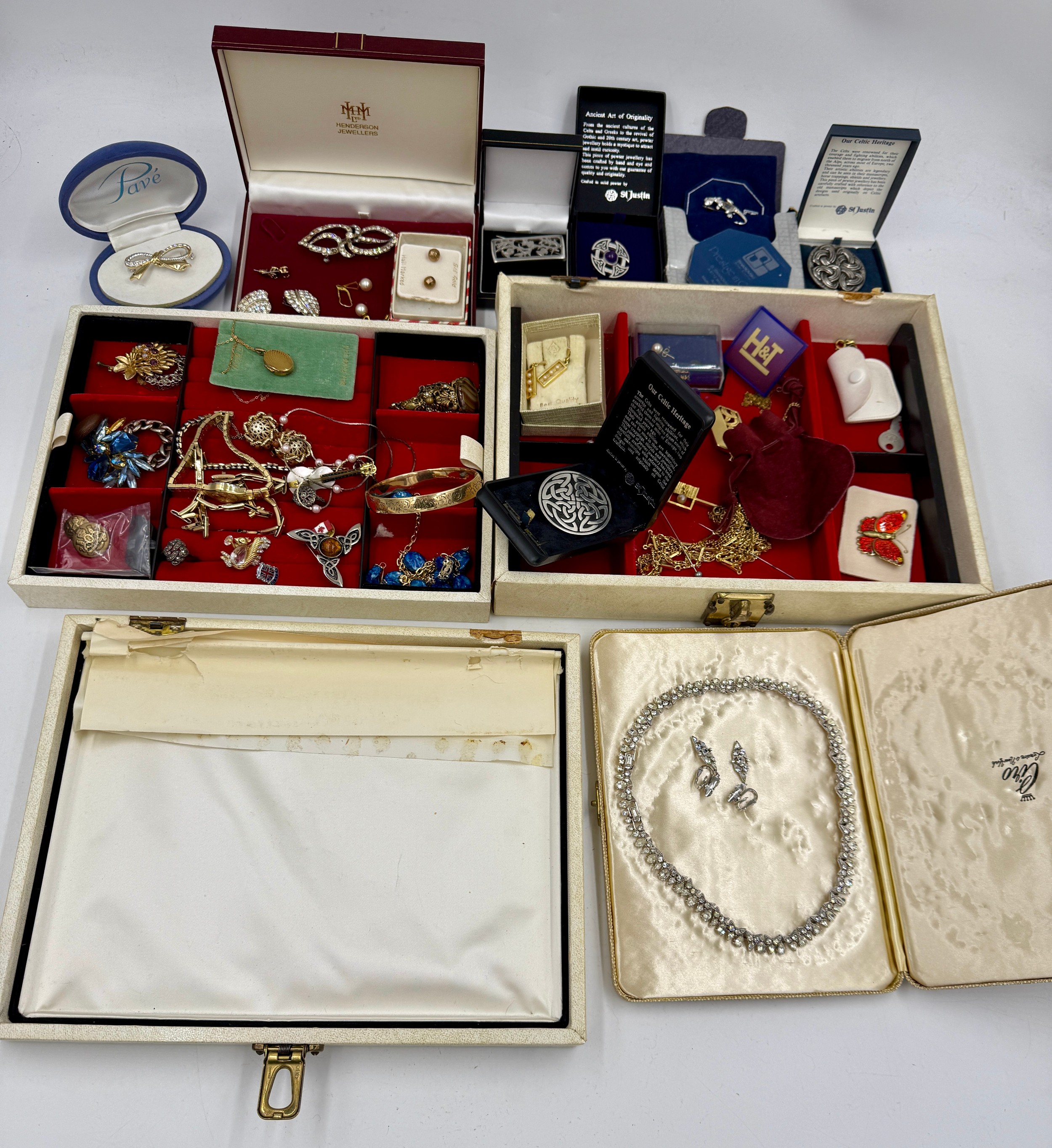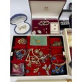 A quantity of vintage costume jewellery to include earrings, Trifari necklace and earrings, Swarovski brooch etc.