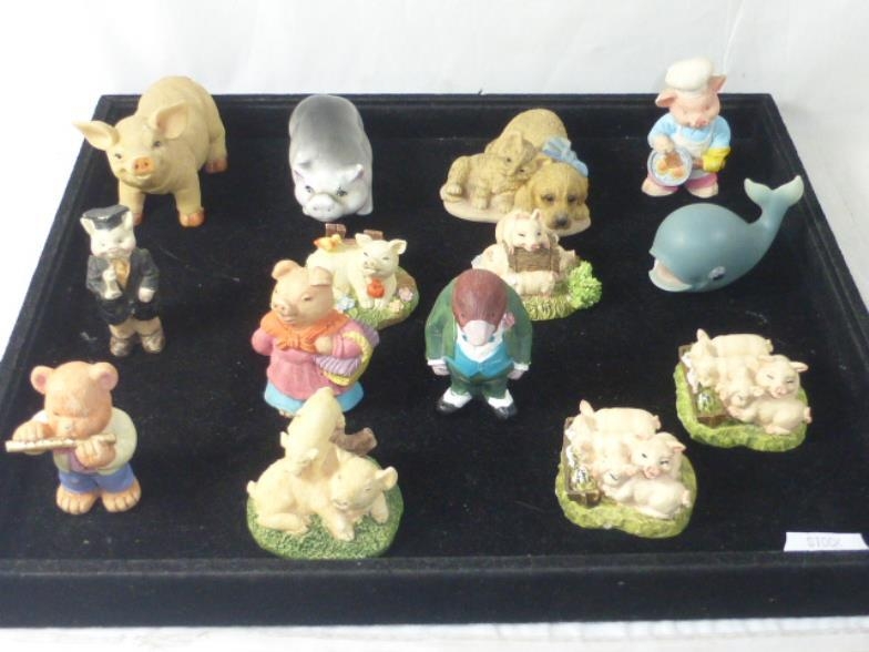 Mixed Tray of Ceramic Collectible Figures including Pigs, and other