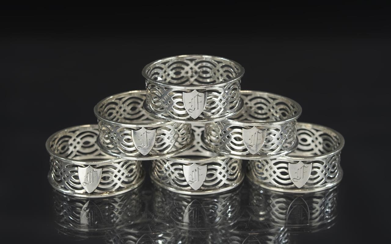 Edwardian Period - Superb Sterling Silver Set of Six Open worked Napkin Holders In Excellent Condition. Hallmark Birmingham 1904, Makers W.H.C ( W.H.Carrington & Co ) 76 grams.