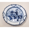 Early English Pearlware plate decorated in Chinese style with figure and building, 24cm diameter