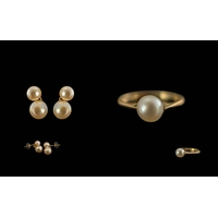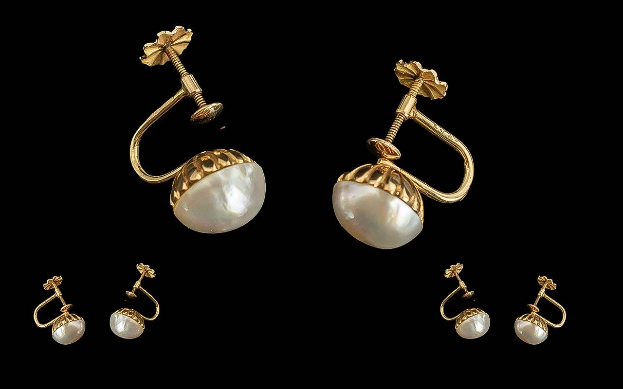 Pair of 18ct Gold Pearl Earrings with screw backs, pearl diameter 10 mm. Gross weight 5 grams.