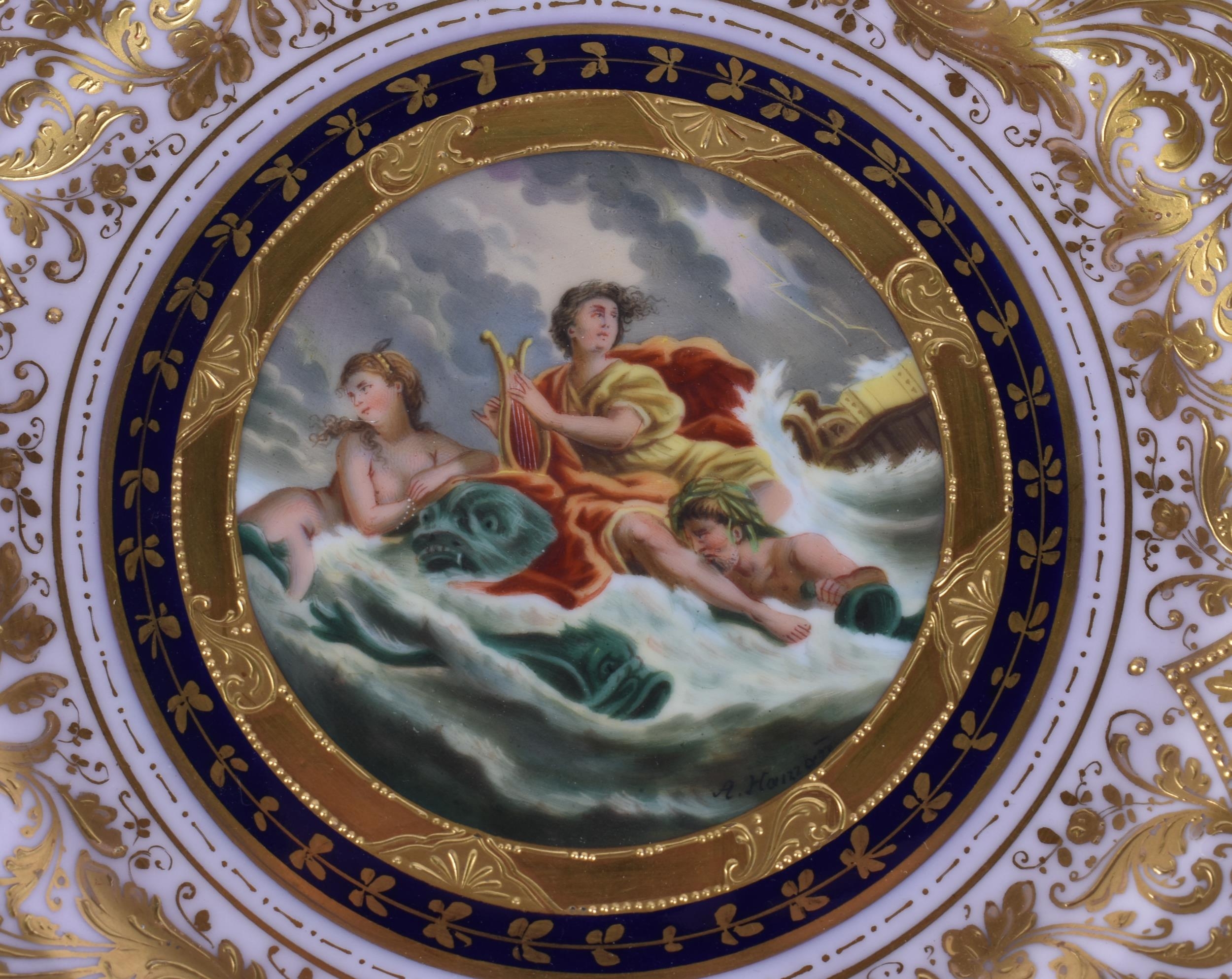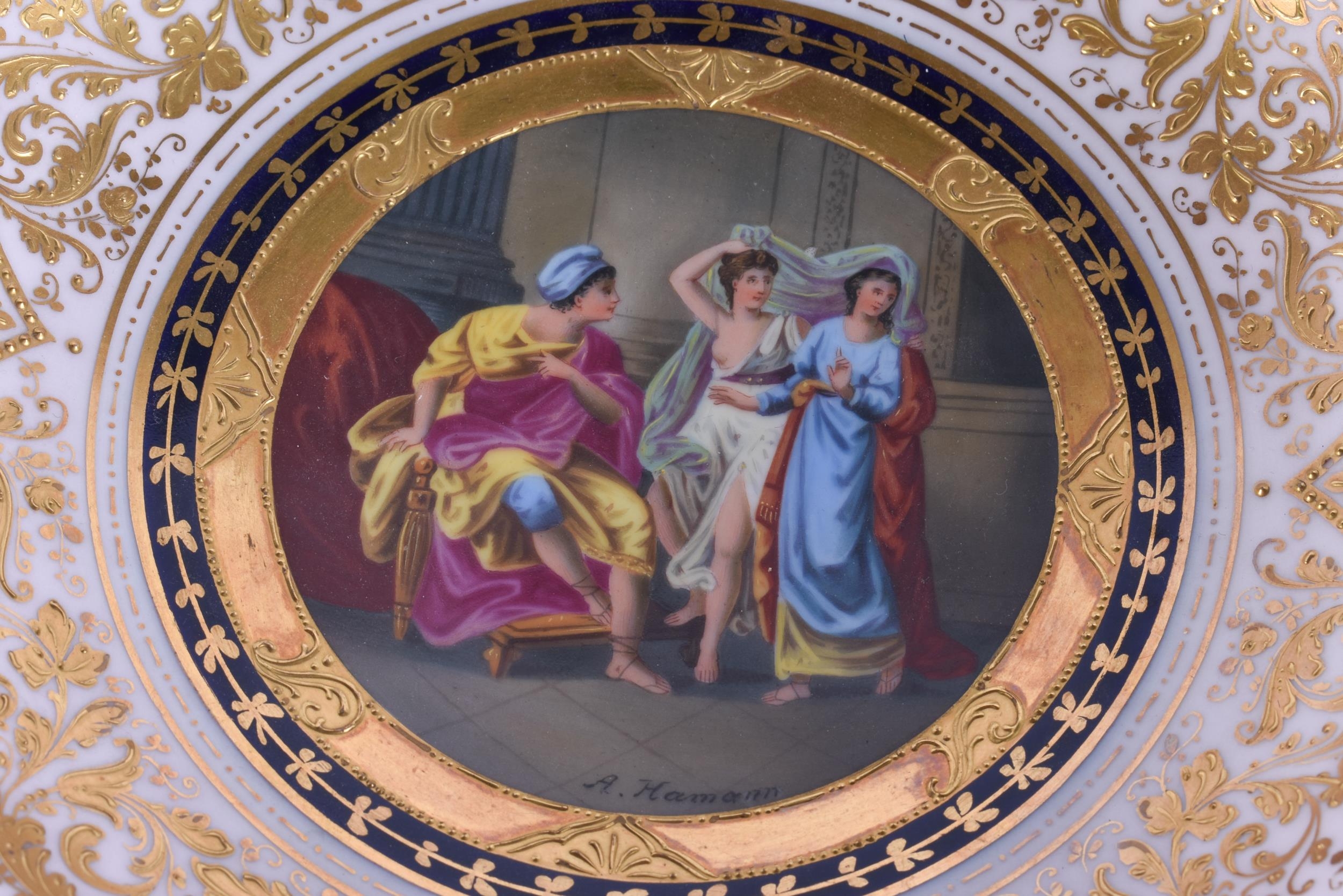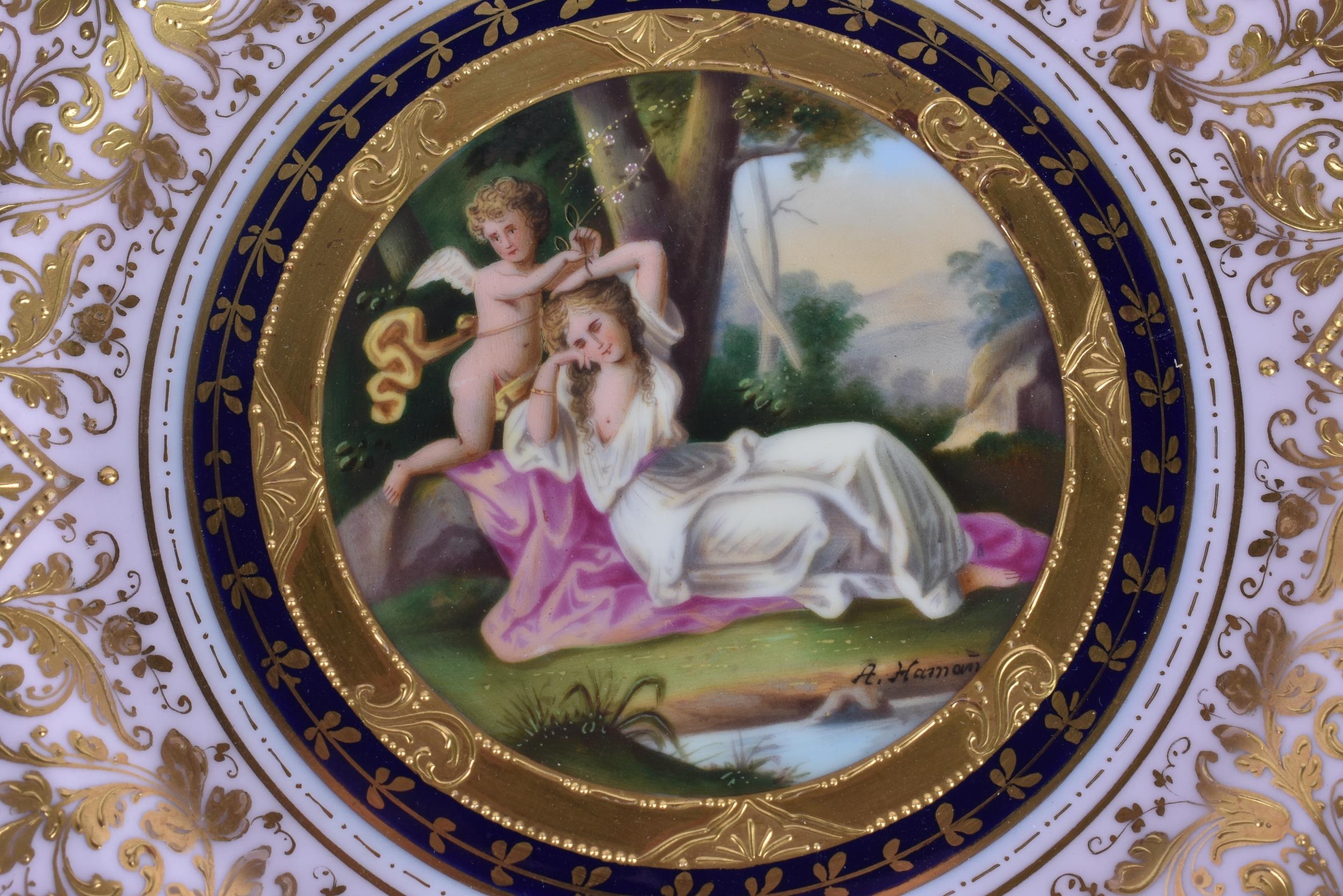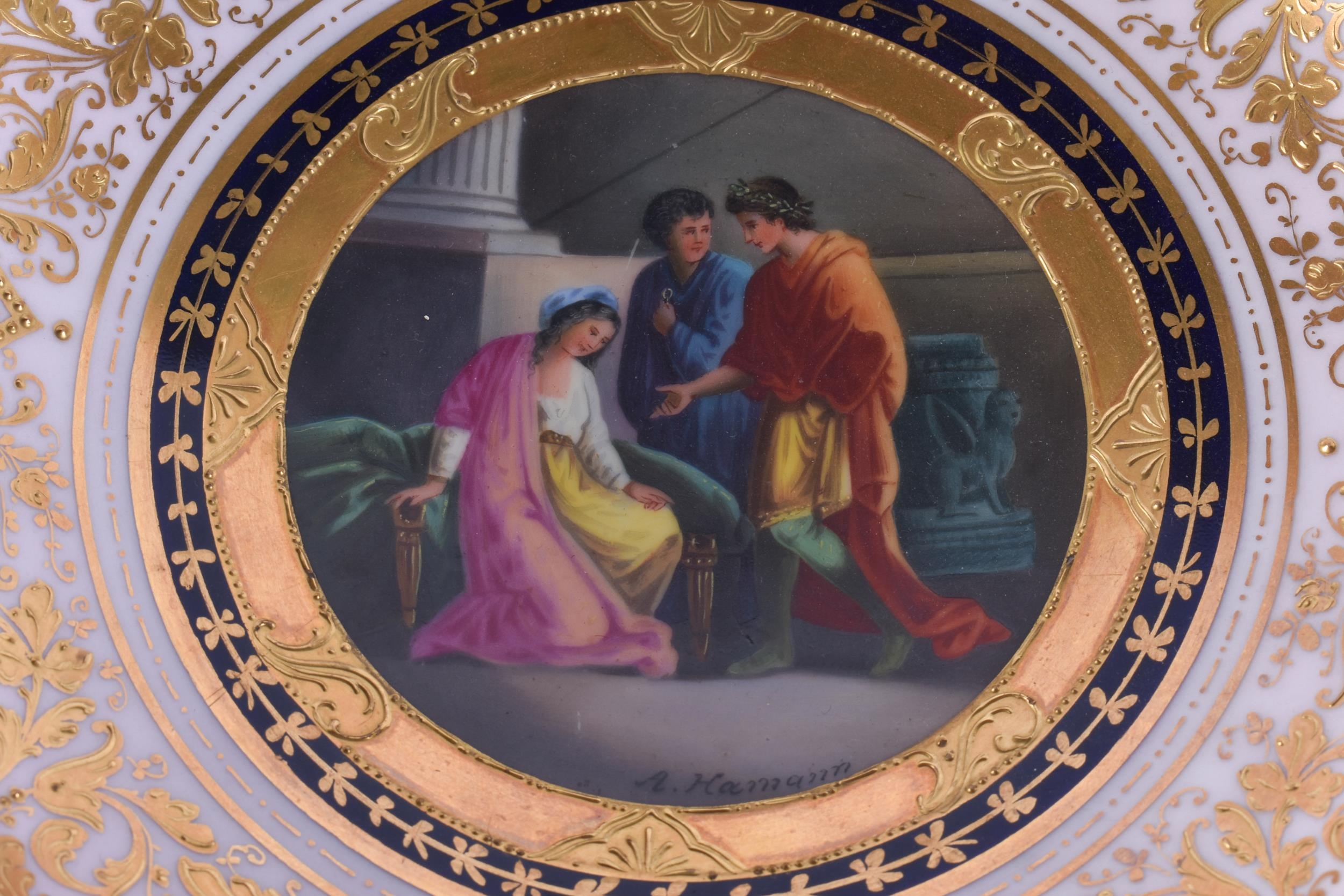 A SUITE OF EARLY 20TH CENTURY AUSTRIAN VIENNA PORCELAIN DESSERT WARES painted with figures in various pursuits. Largest 22 cm x 15 cm. (8)