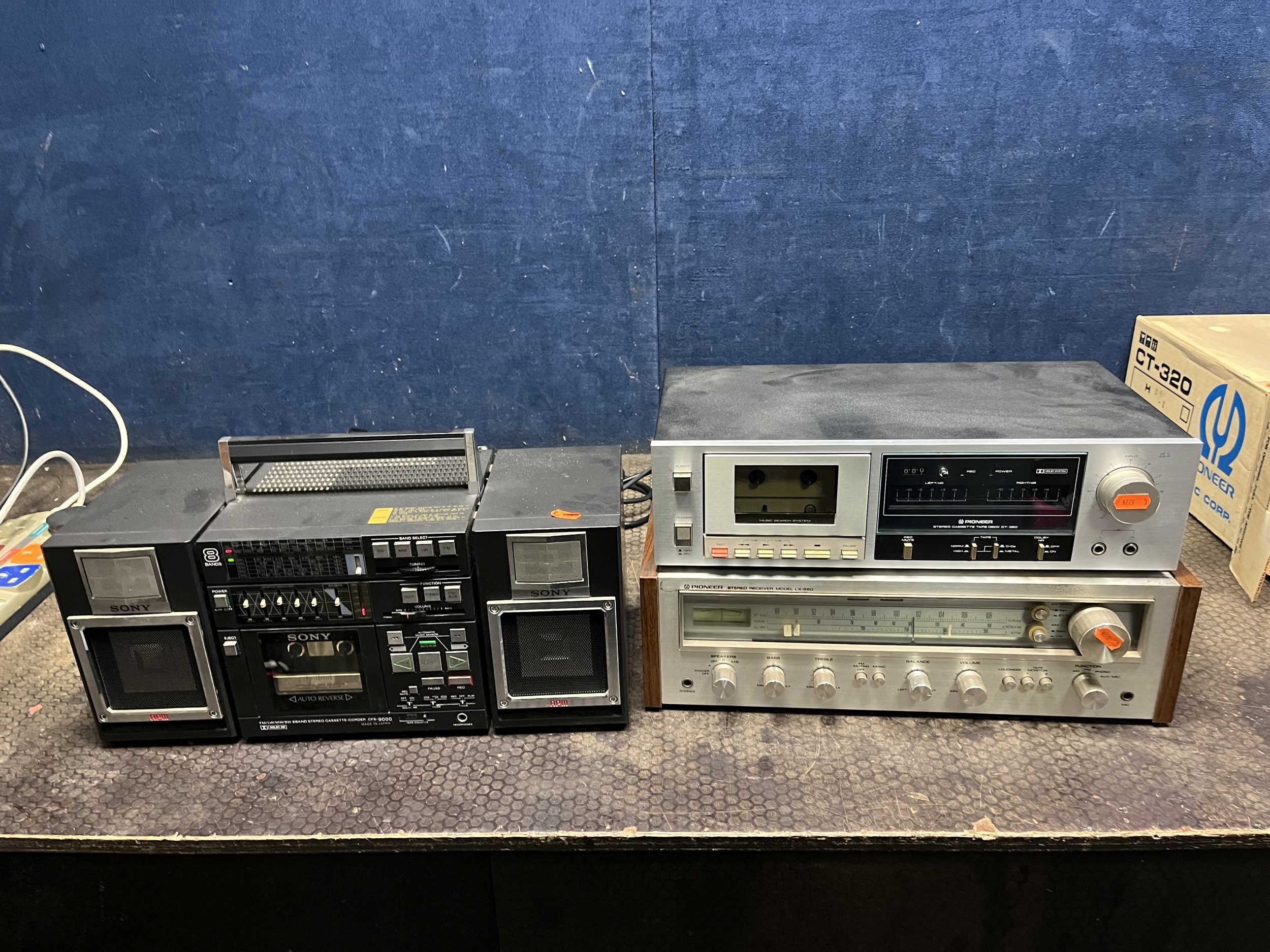 A COLLECTION OF VINTAGE ADIO EQUIPMENT comprising a Pioneer LX-550 Stereo Receiver, a Pioneer CT-320 tape deck and a Sony CFS-9000 portable hi-fi (all power up but not tested any further) (3)