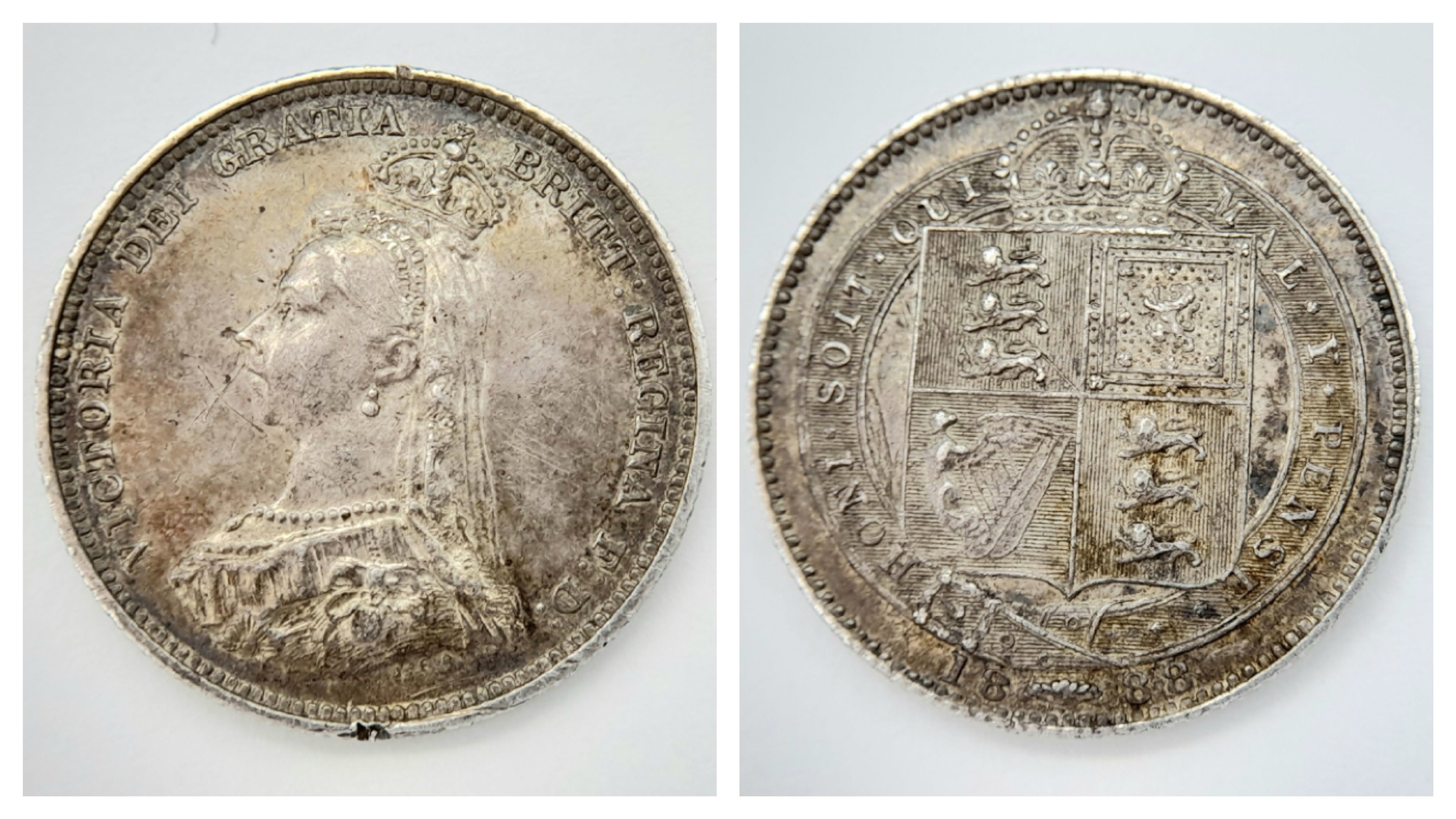 A Rare Queen Victoria, 1888 Silver Shilling Coin.