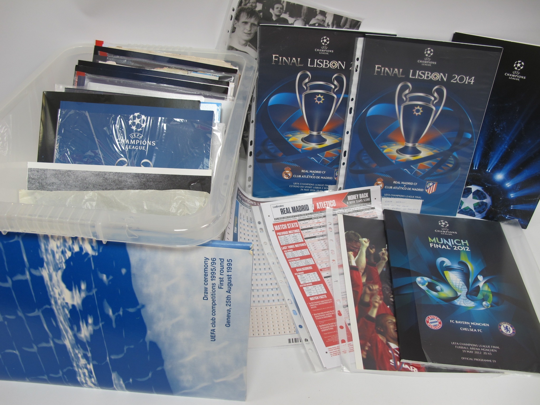 Champions League Programmes, press packs, reviews, reports, Arsenal lanyards, etc:- One Box