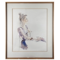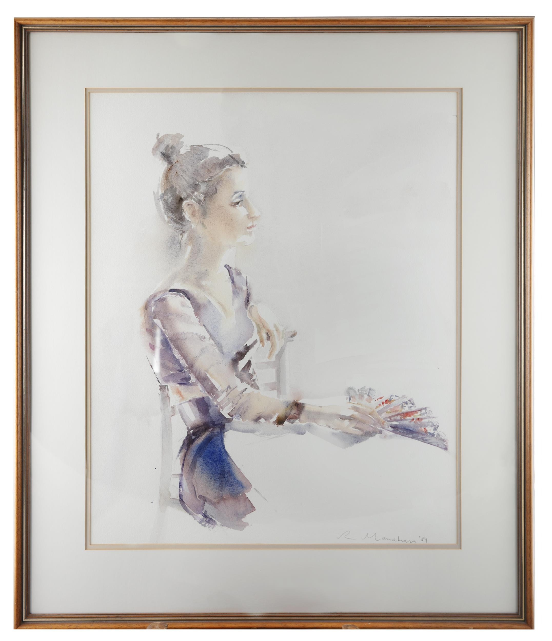 Rosita Manahan (B.1935) Seated Girl with a Fan Watercolour, 64 x 52cm Signed and dated (19)'89