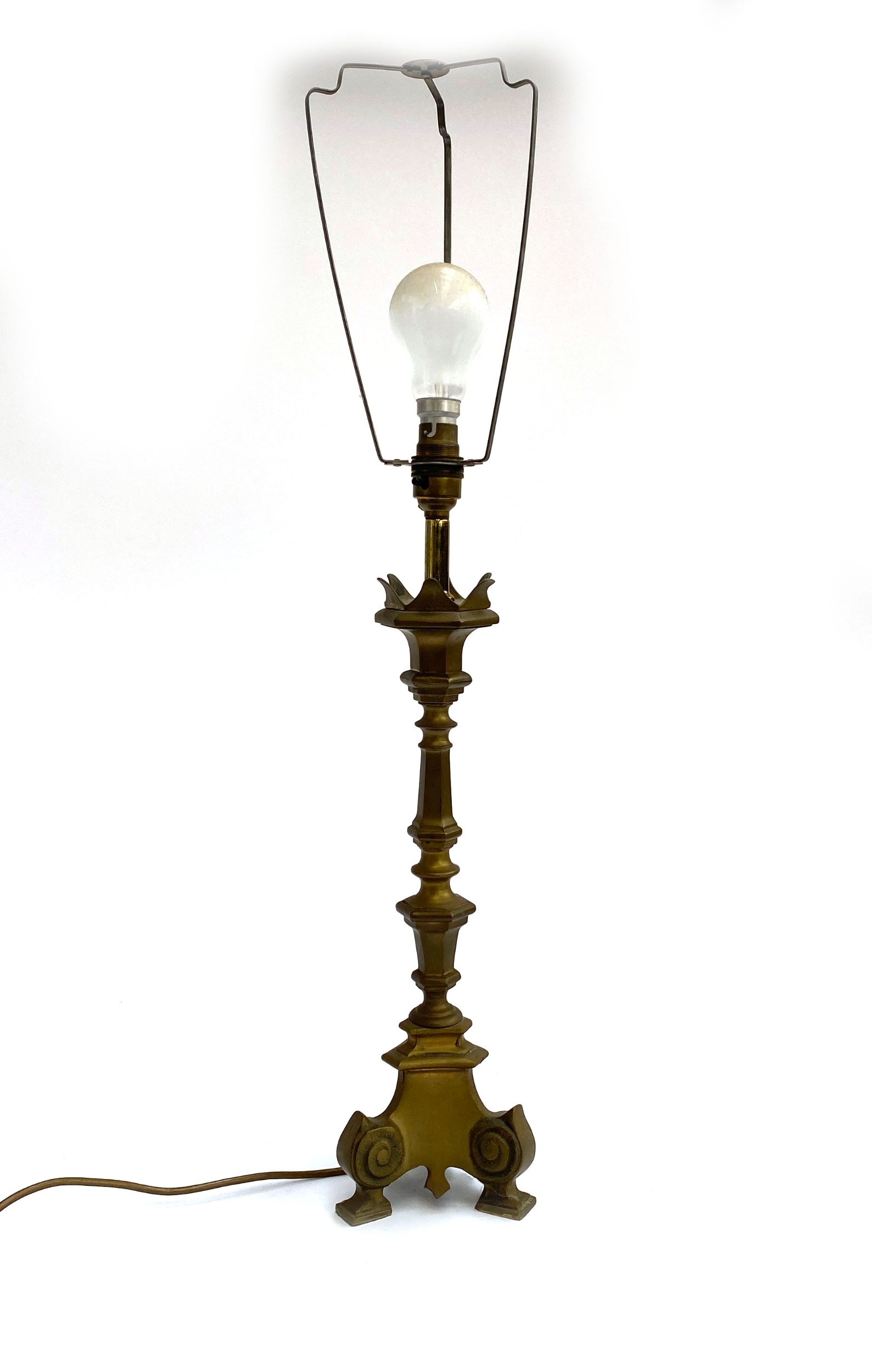 A brass Gothic style table lamp, 47cmH to top of fitting