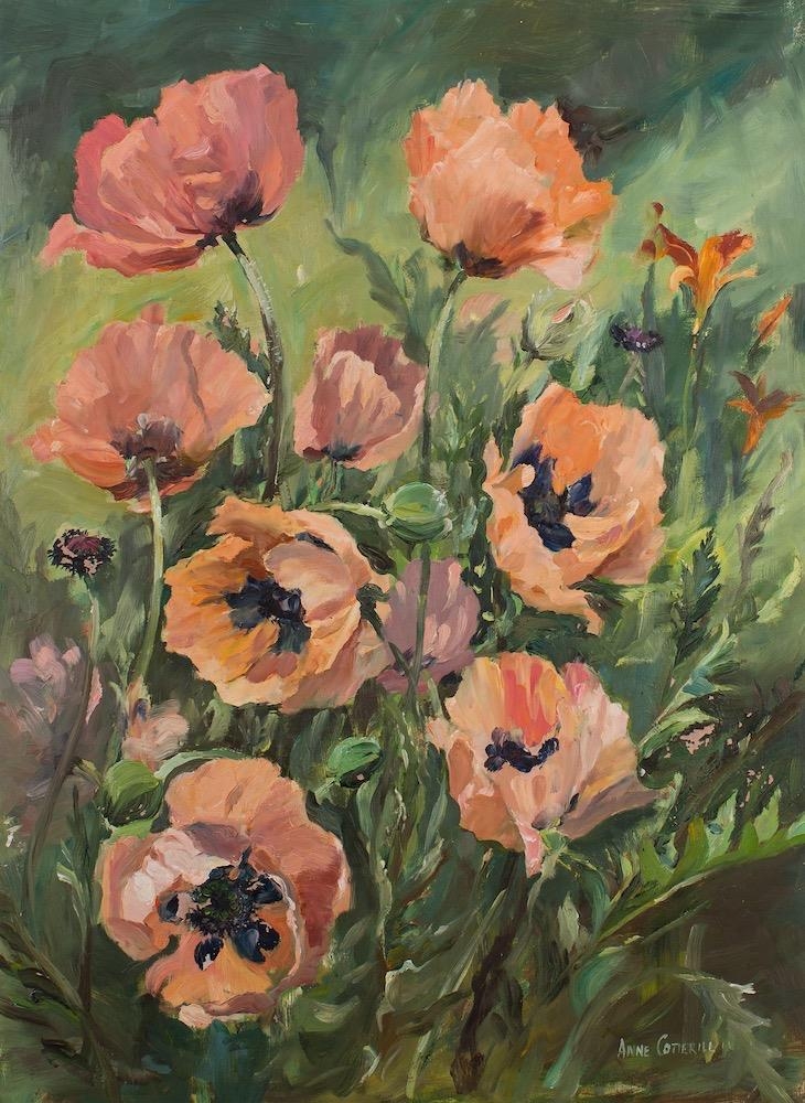 *Anne Cotterill (British, 20th century school) Poppies signed lower right oil on board 65 x 48cm
