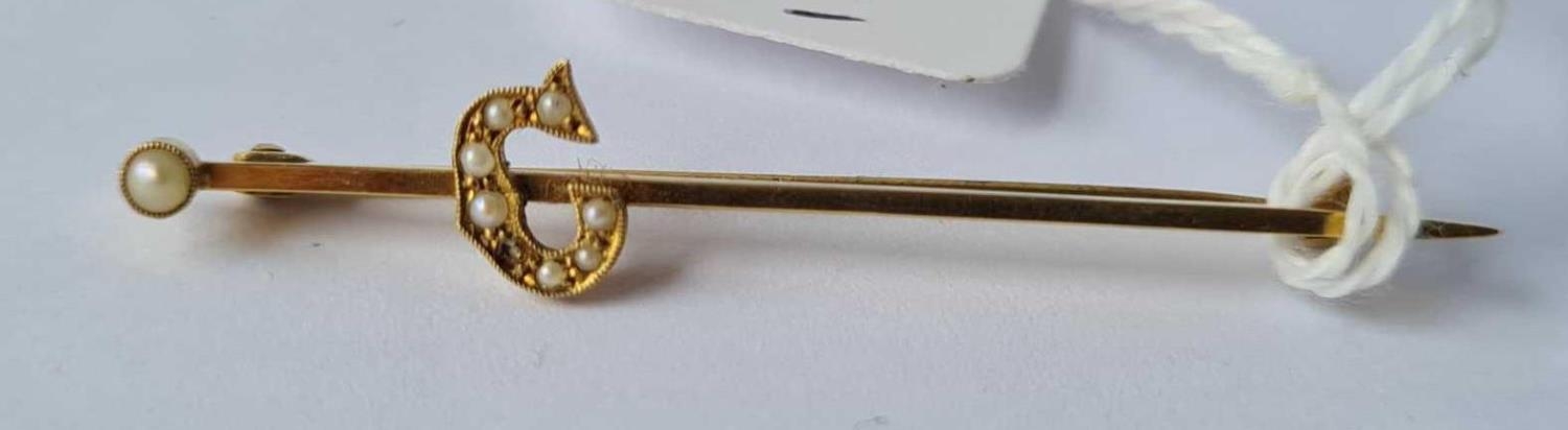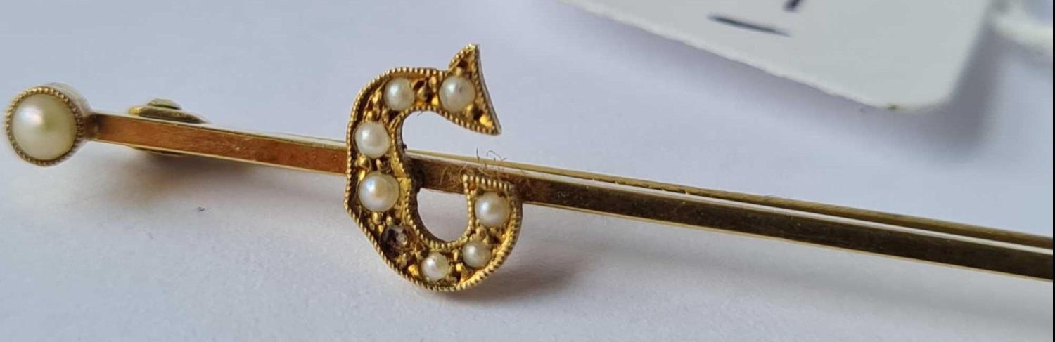 Pearl and 9ct letter G brooch 2.2g inc