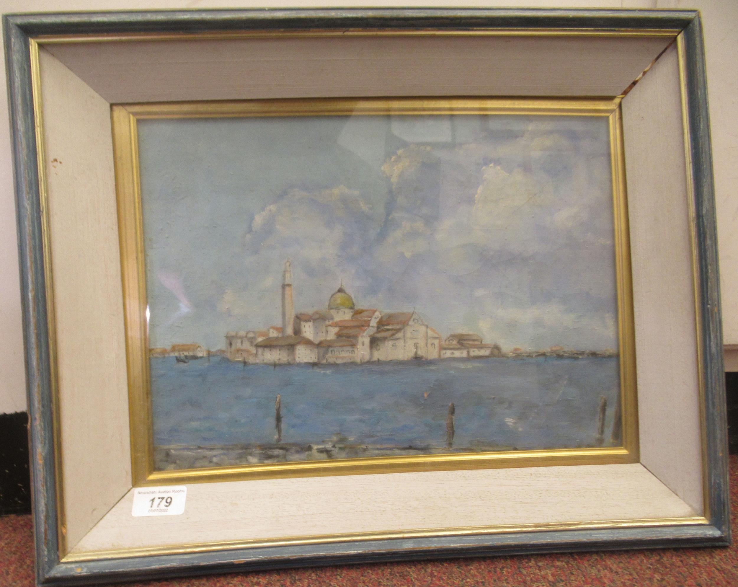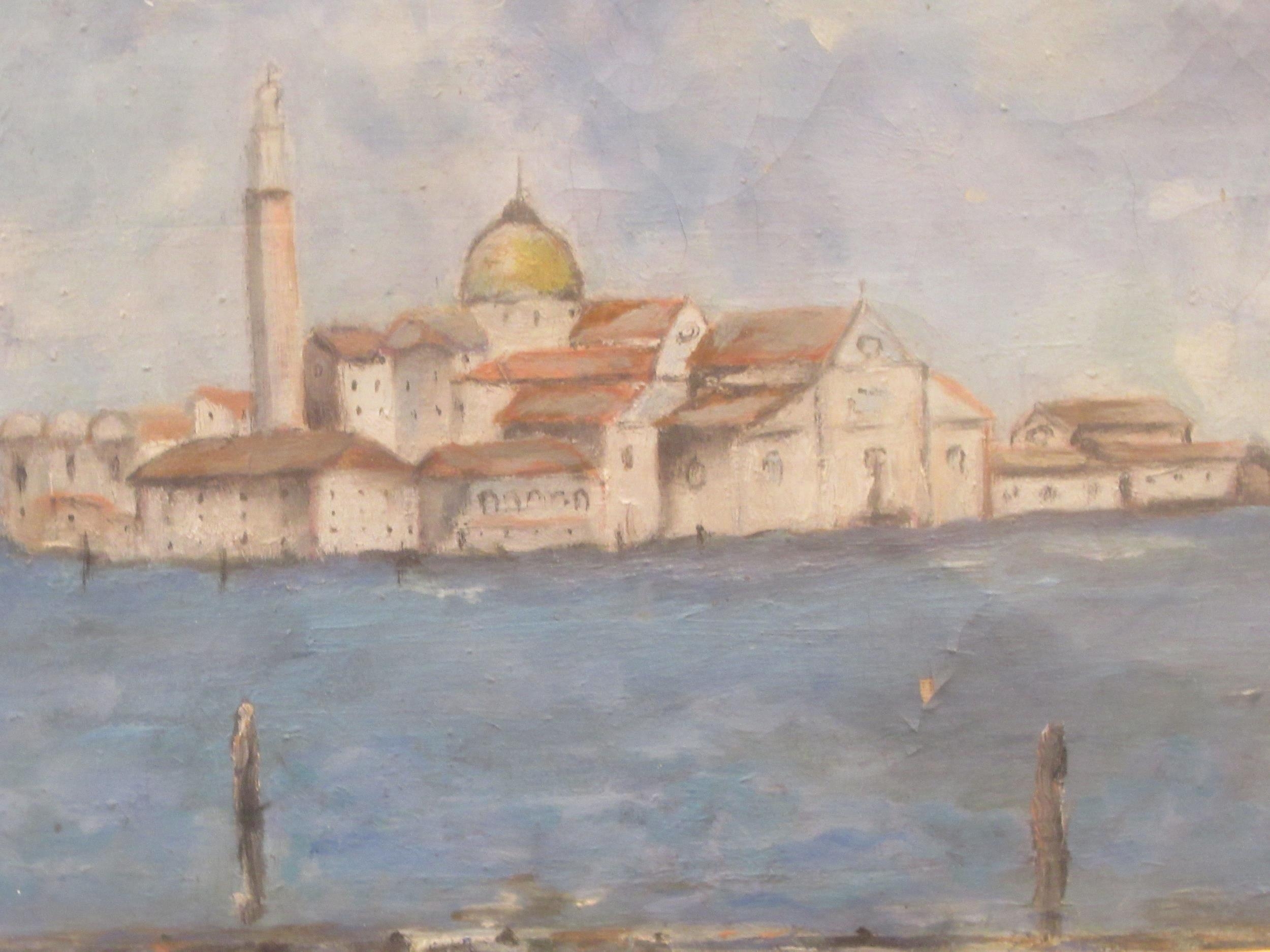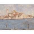 Attributed to Margaret D Wilson - a Venetian scene with a canal in the foreground oil on board 11" x 14.5" framed