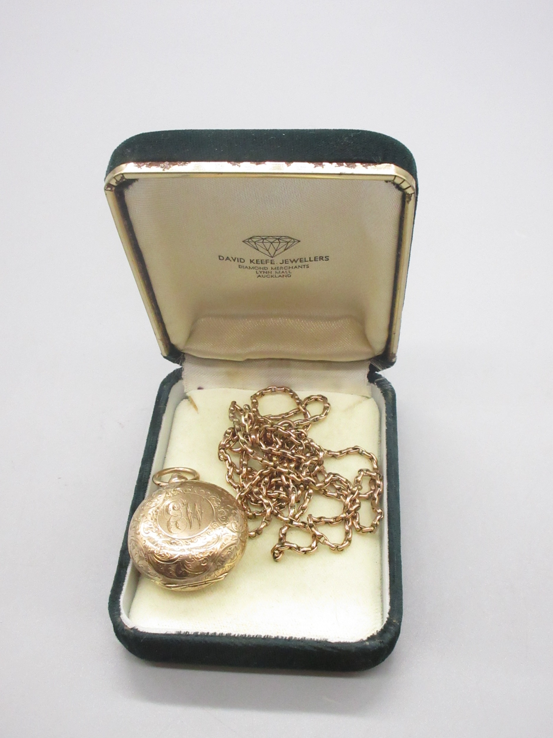 9ct stamped Sovereign holder, 9ct stamped to clasp, chain L101cm (26g)
